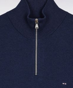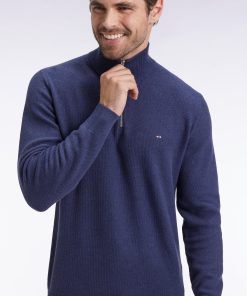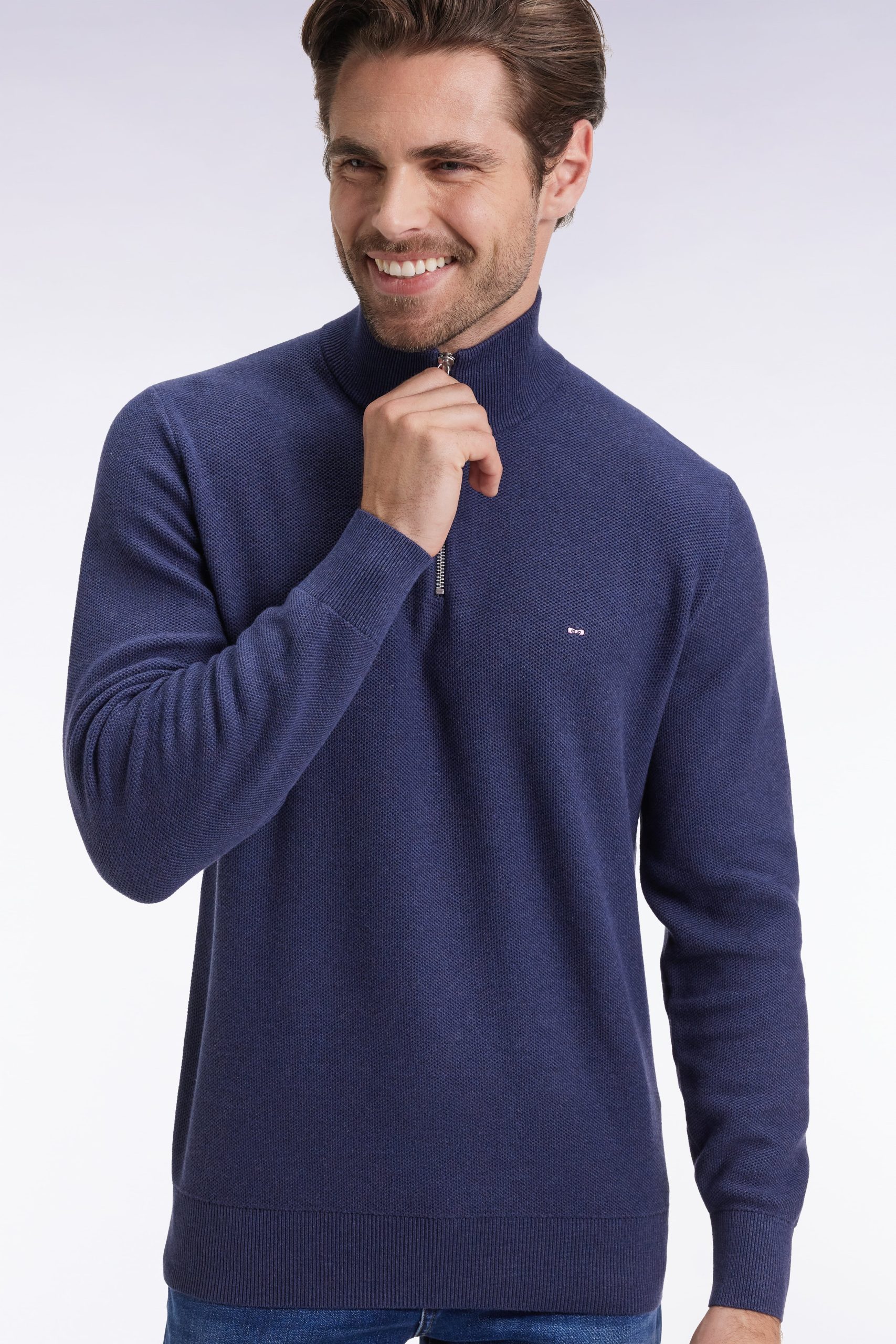 Eden Park Homme Men’s Pull Col Camionneur En Coton Nid D’abeille Marine