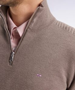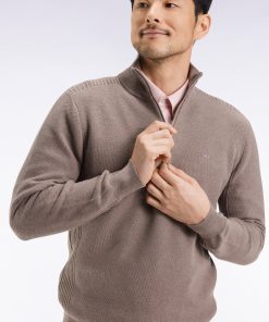 Tricoté dans un coton nid d’abeille pour une texture subtile et légère, ce pull camionneur à col zippé se distingue par son tricotage en côtes sur les côtés, les épaules et le dessous de manches. Son col montant zippé permet de moduler l’allure selon l’envie. Décliné dans une palette de coloris intemporels, il s’impose comme un essentiel du vestiaire masculin, à porter saison après saison