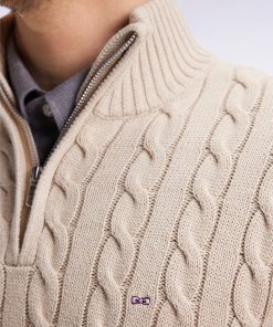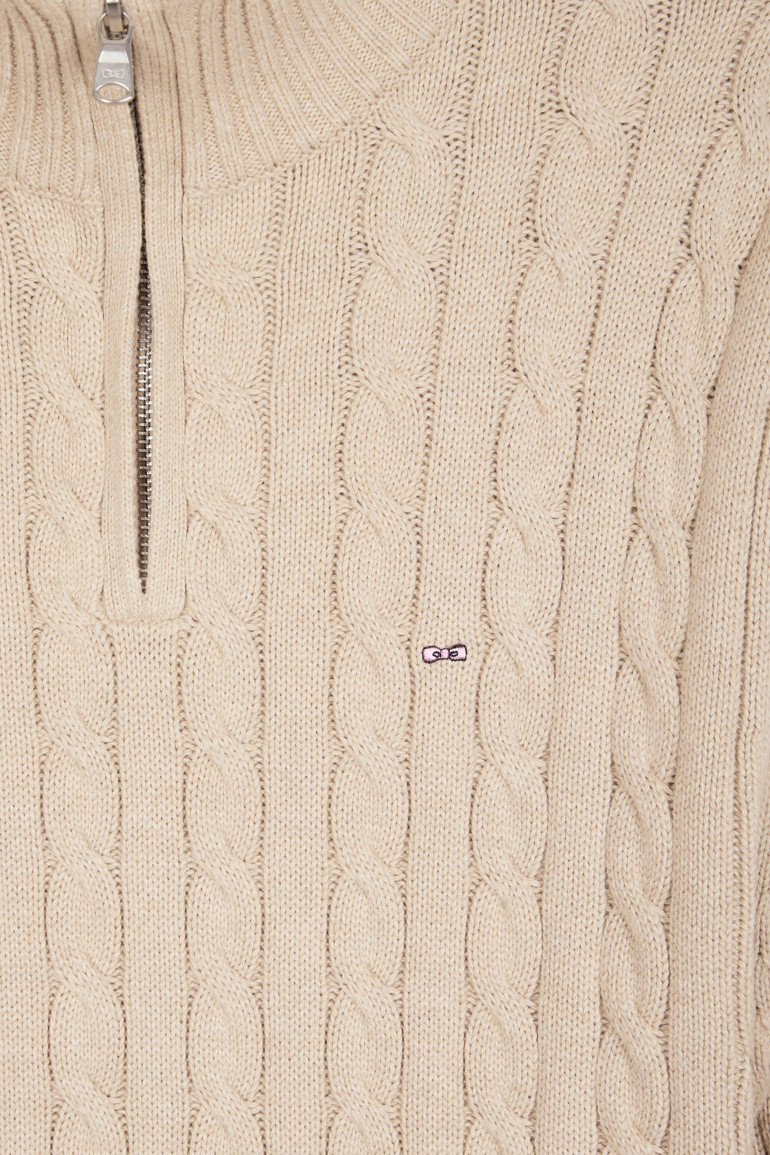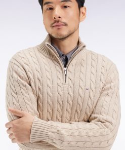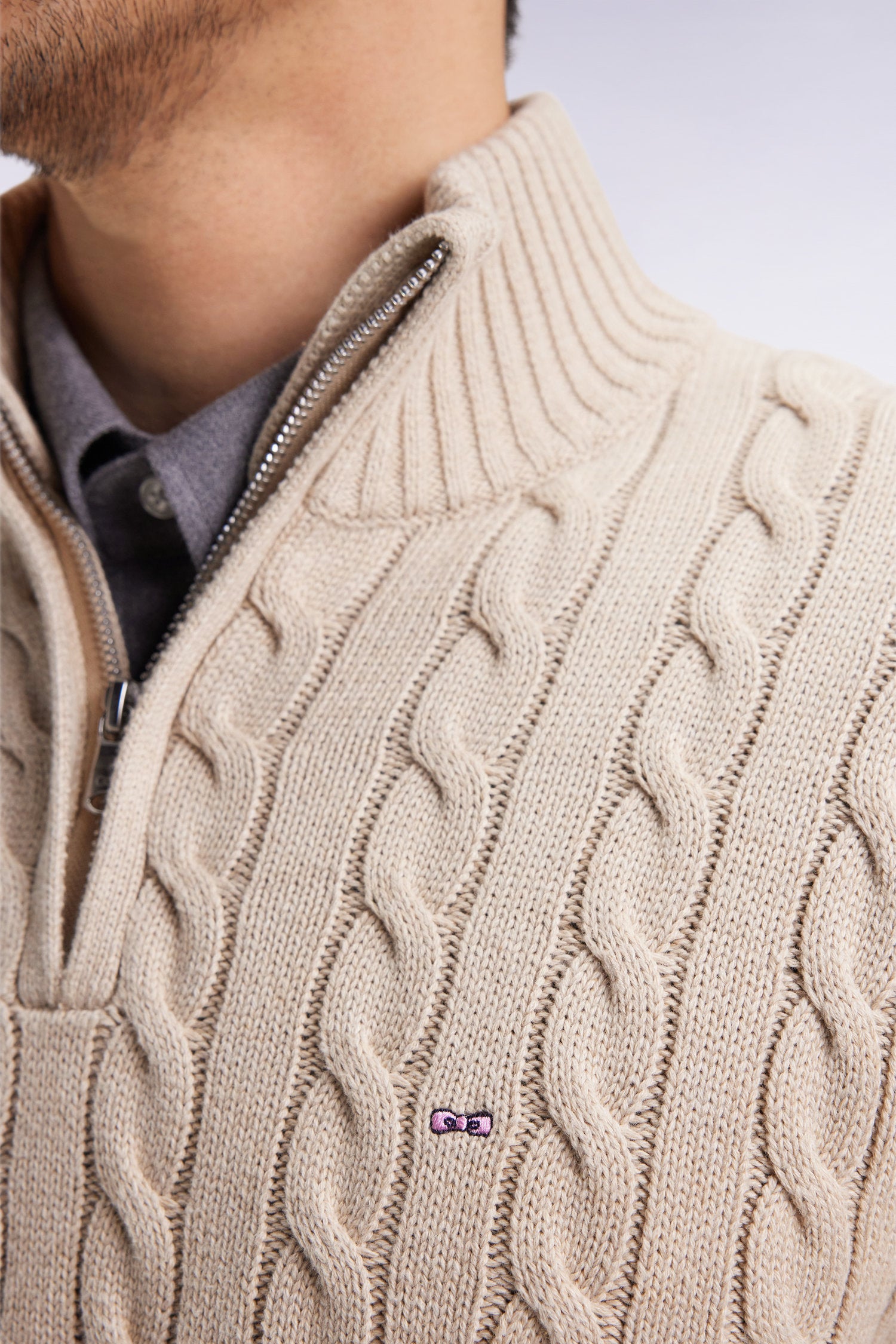 Avec son col montant zippé et son jeu de mailles torsadées, ce pull en coton pur adopte une allure preppy des plus tendance. Ses finitions soignées et le travail de tricotage donnent du relief à cette pièce pensée pour conjuguer confort et élégance tout au long de la journée. Proposé en 4 coloris intemporels beige, marine, gris ou marron, ce pull à torsades s’impose comme un incontournable du vestiaire masculin, à porter seul ou superposé à une chemise