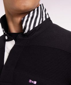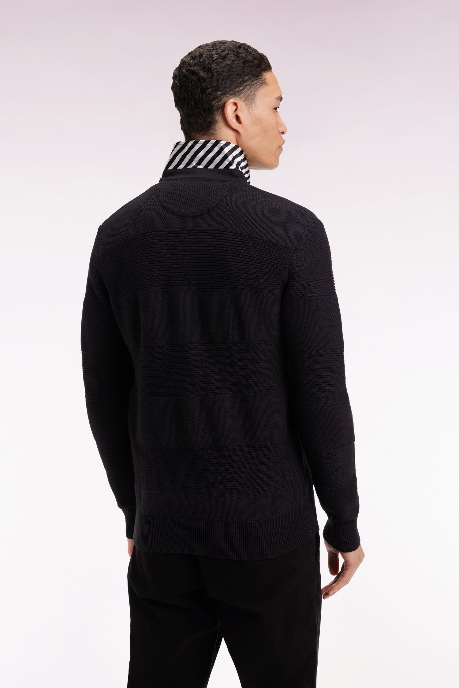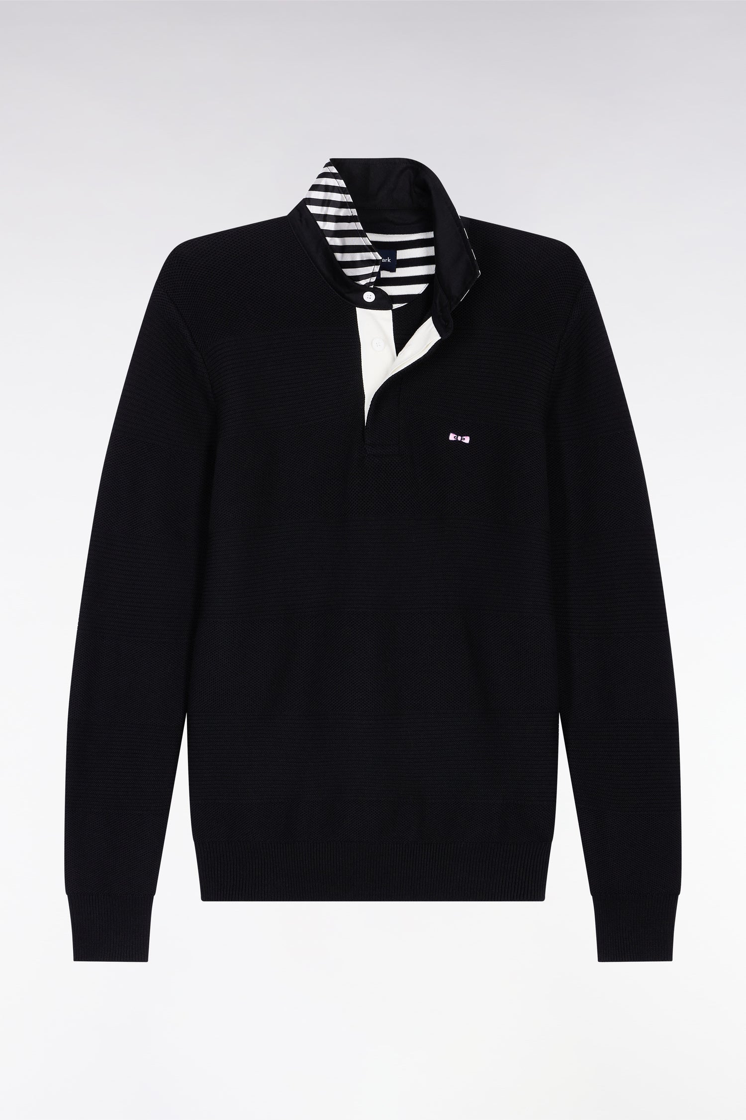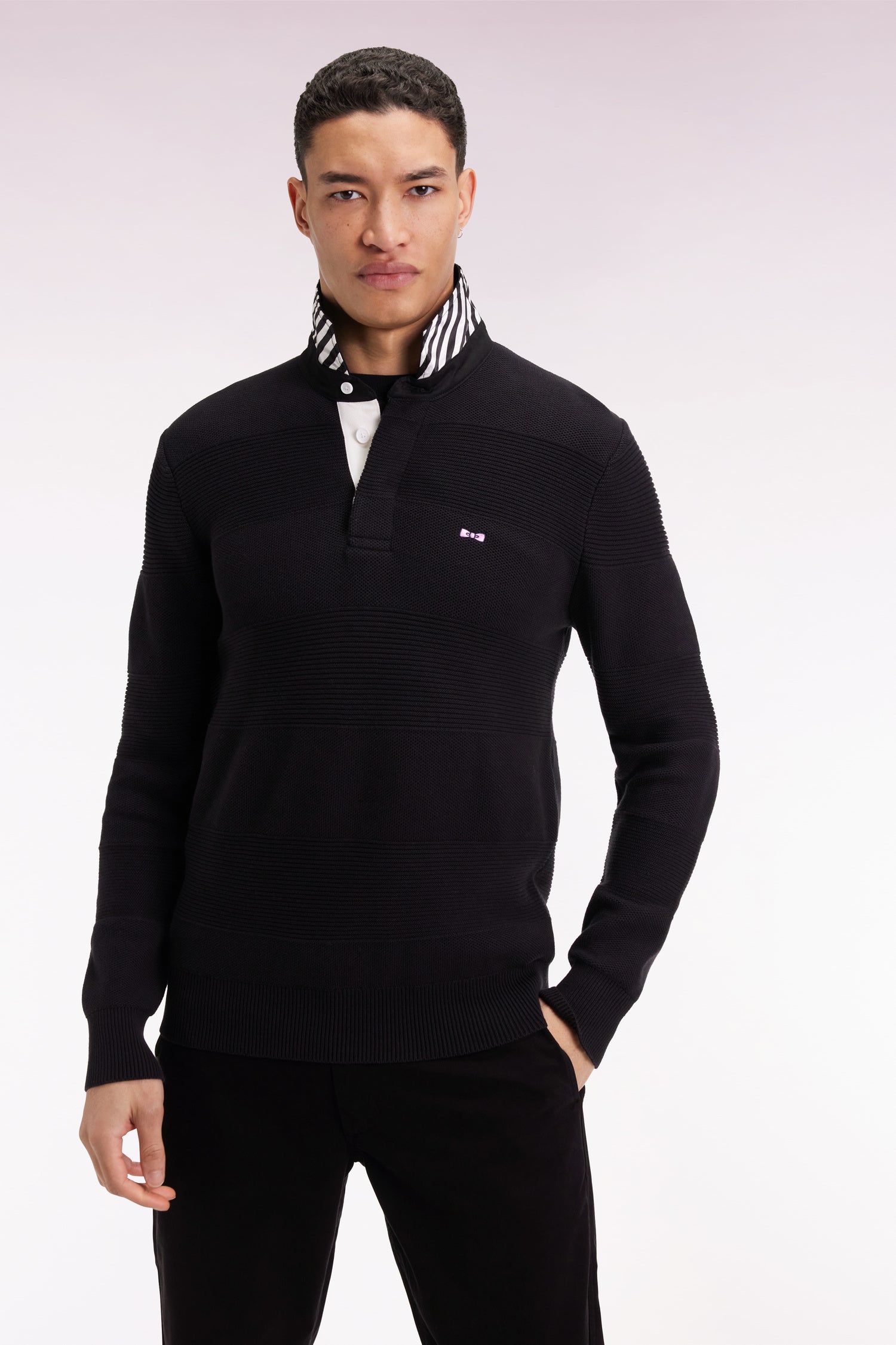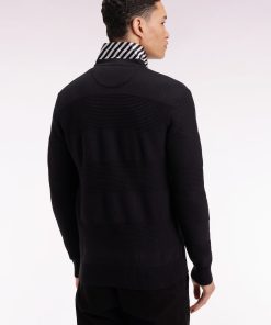Eden Park Homme Men’s Pull Col Maillot En Coton Noir À Effet De Rayure