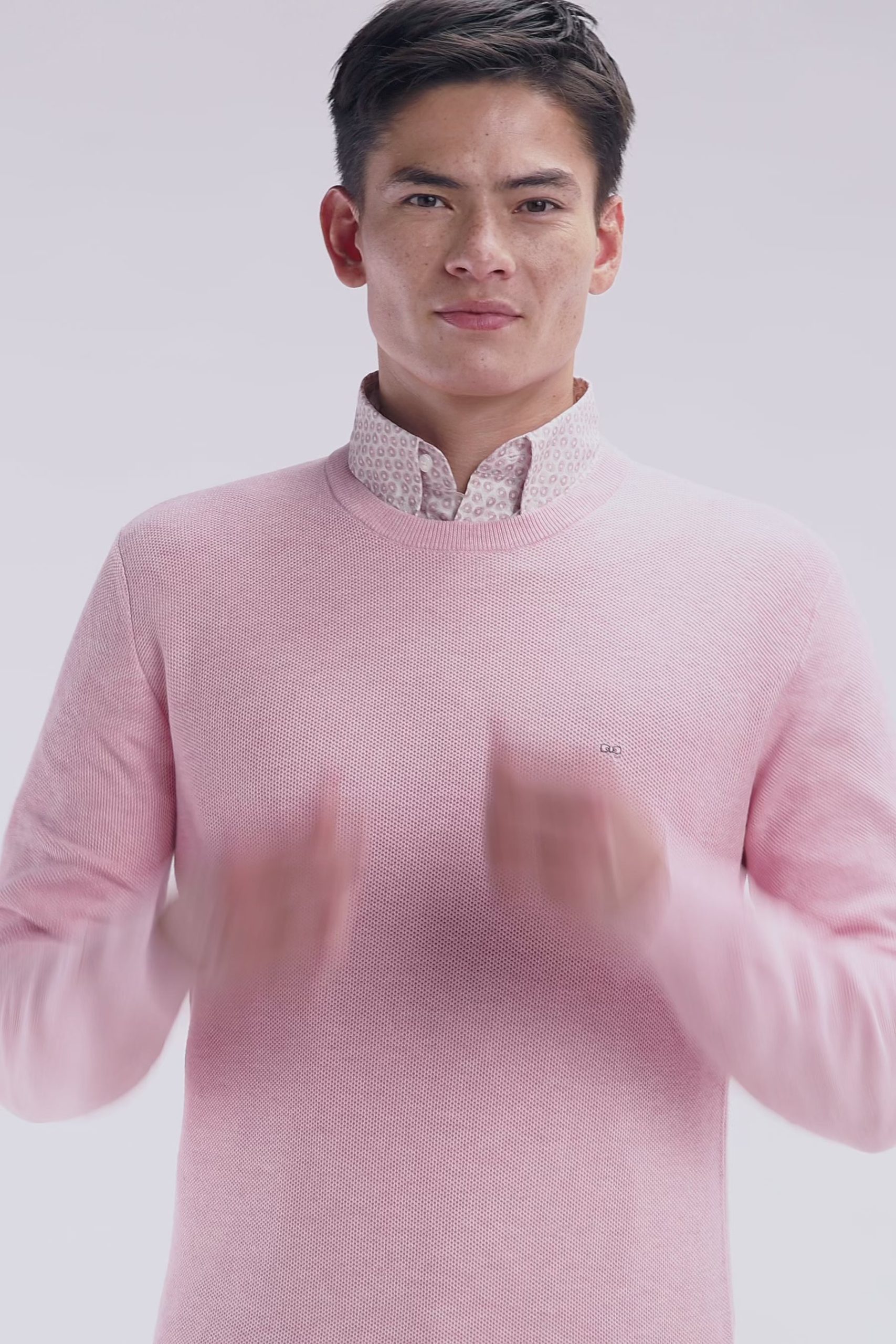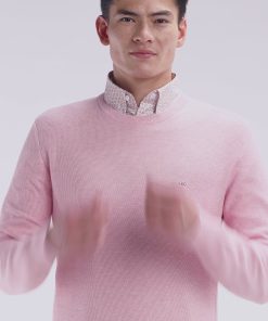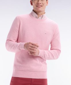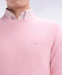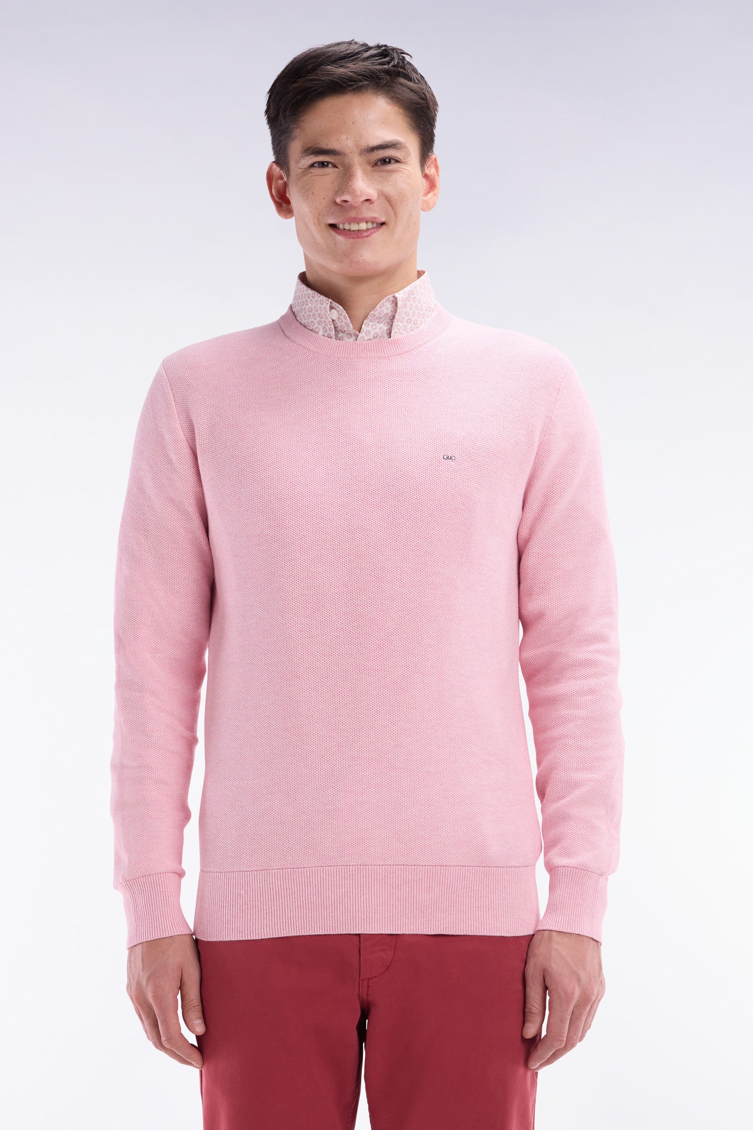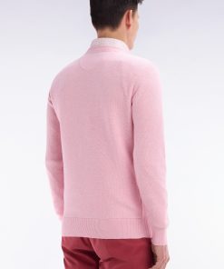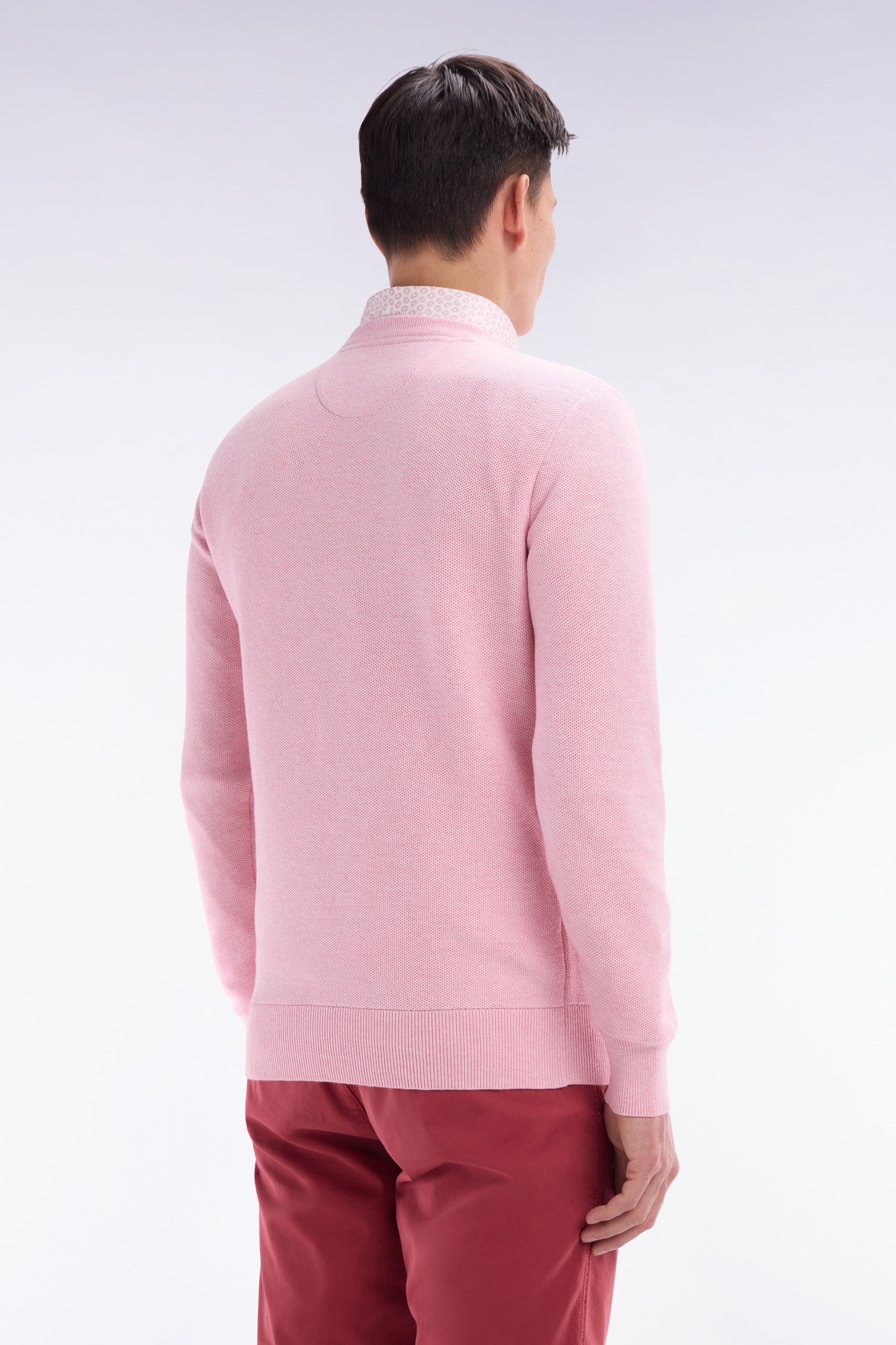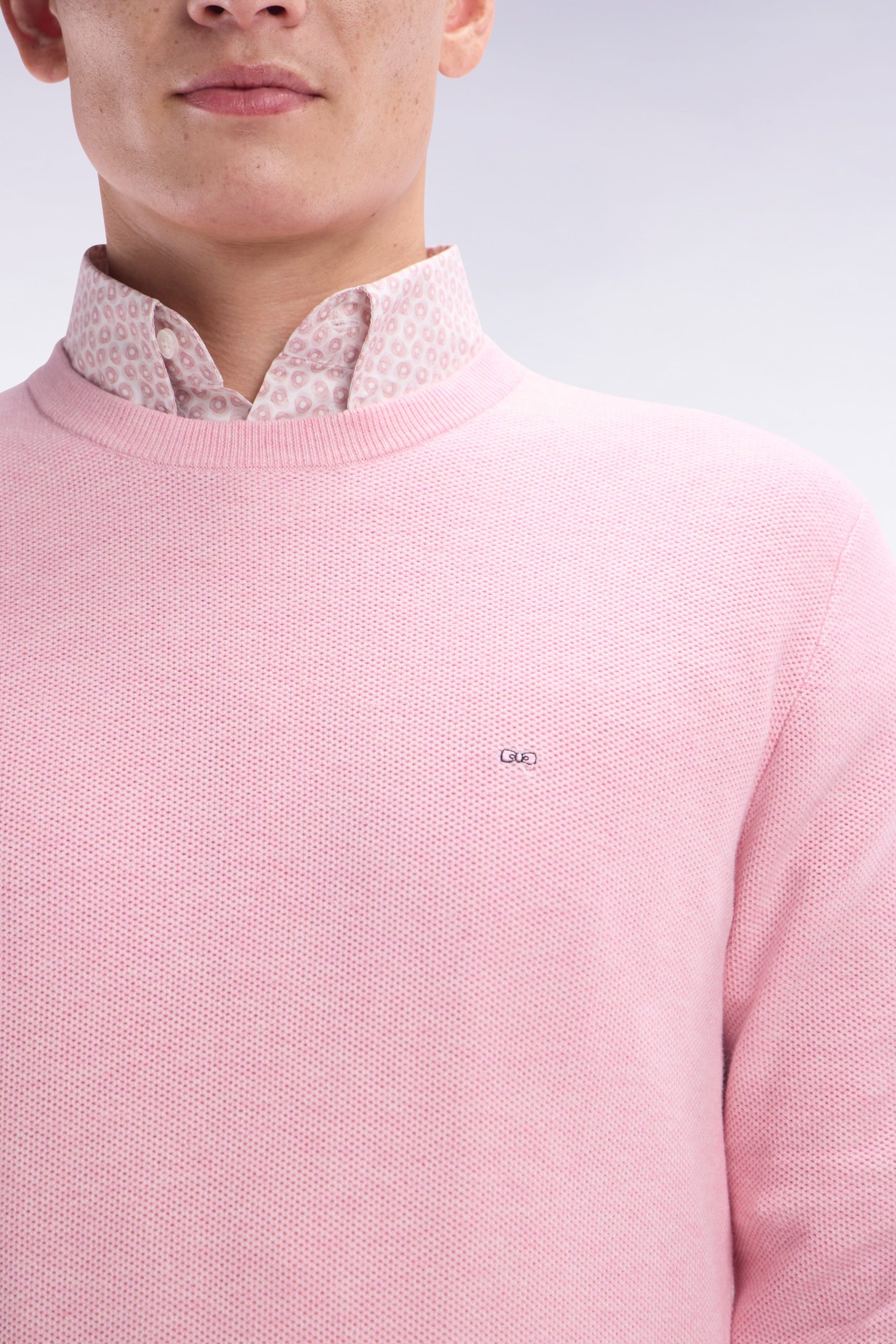 Ce pull à col rond en coton tricoté en maille nid d’abeille allie sobriété et élégance. Avec ses finitions raffinées et son nœud papillon rose élégamment brodé sur la poitrine, il est un incontournable du vestiaire masculin. Ce modèle faisant partie de nos essentiels masculins se décline aussi en version col camionneur ou intégralement zippé.