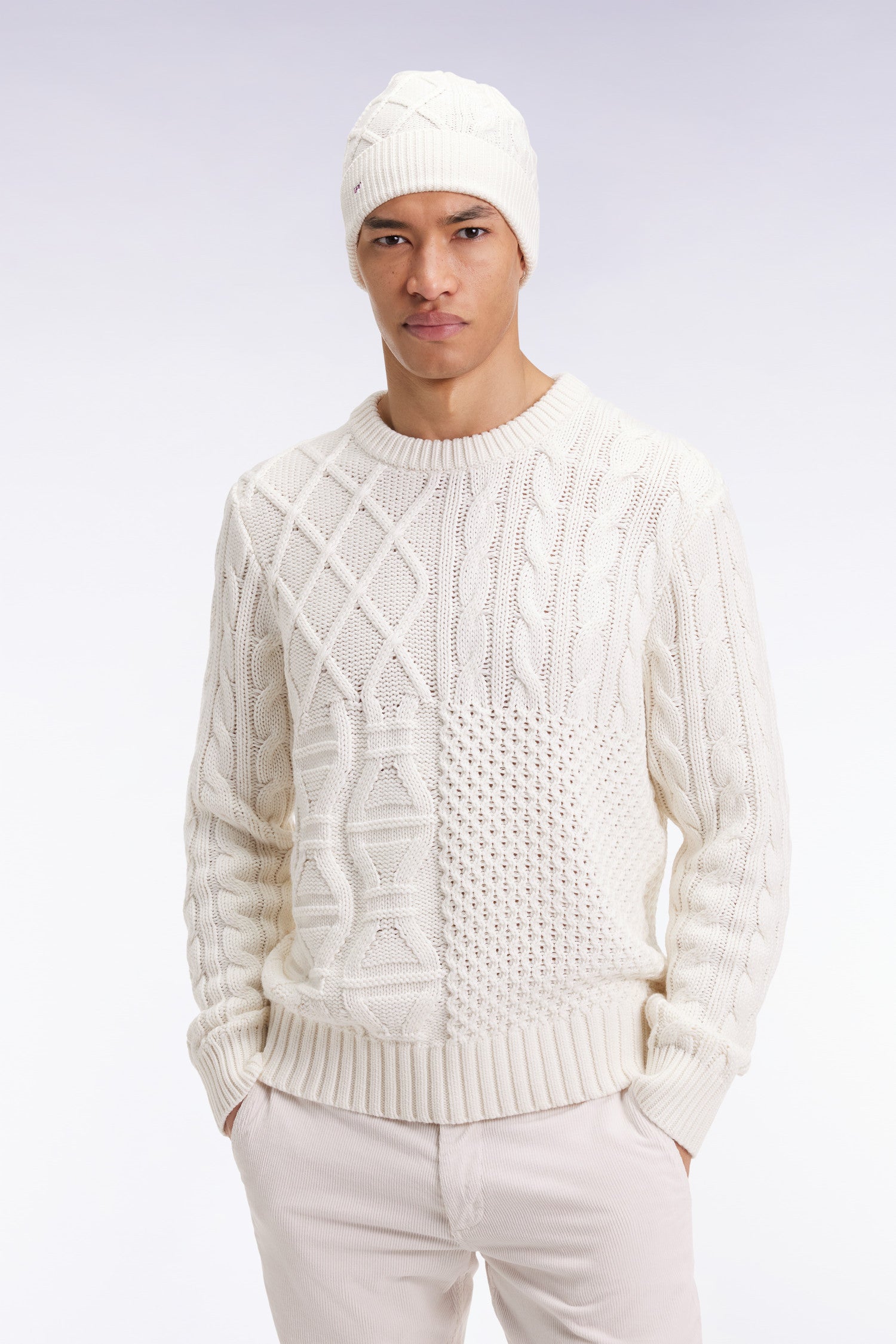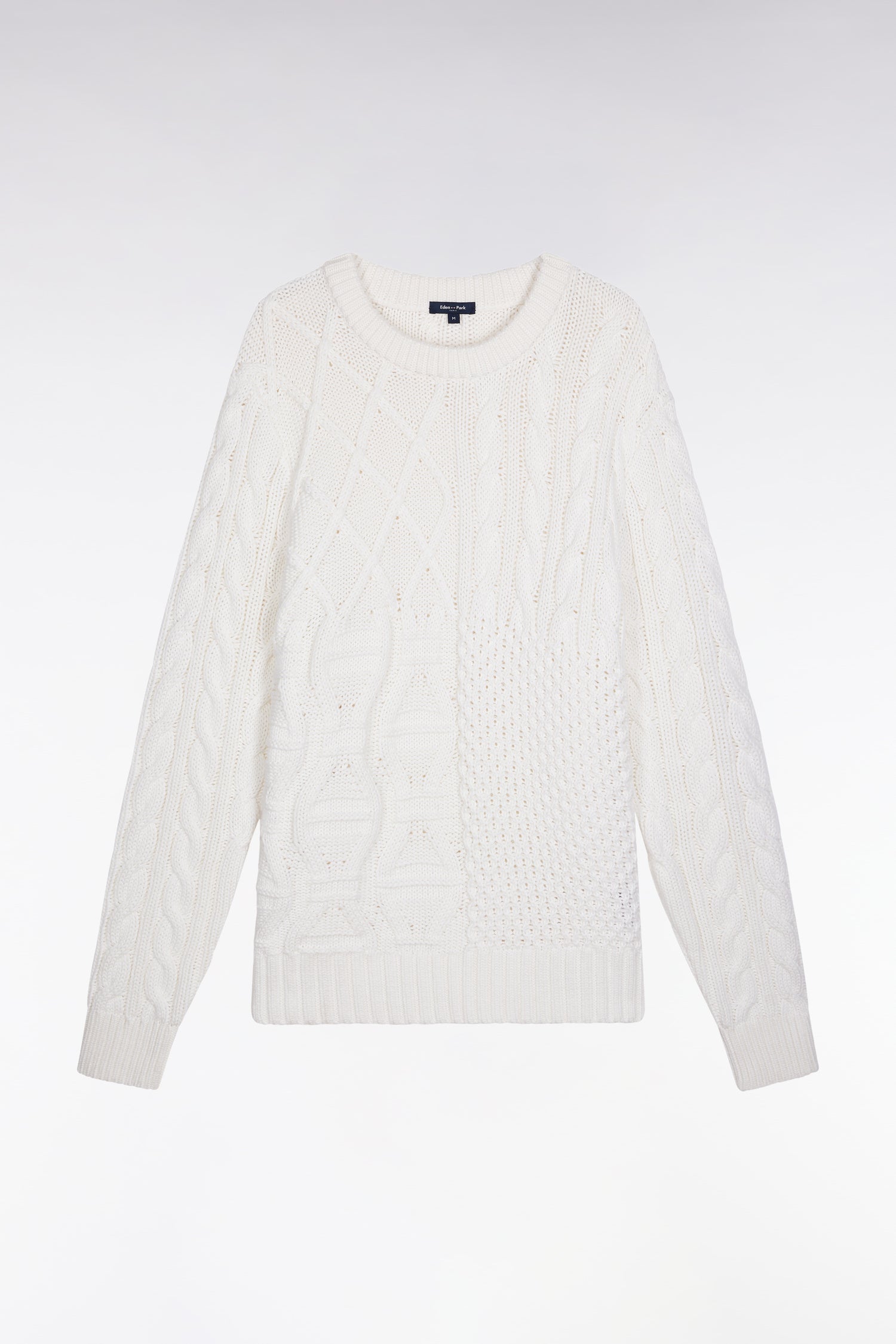 Inspiré des maillots de rugby en coupé-cousu, ce pull se distingue par ses différents tricotages placés en cadrans pour dynamiser la silhouette. Signature subtile du savoir-faire et de l’esprit Eden Park, ce pull en laine et coton apporte un effet gros pull à la silhouette tout en préservant sa légèreté