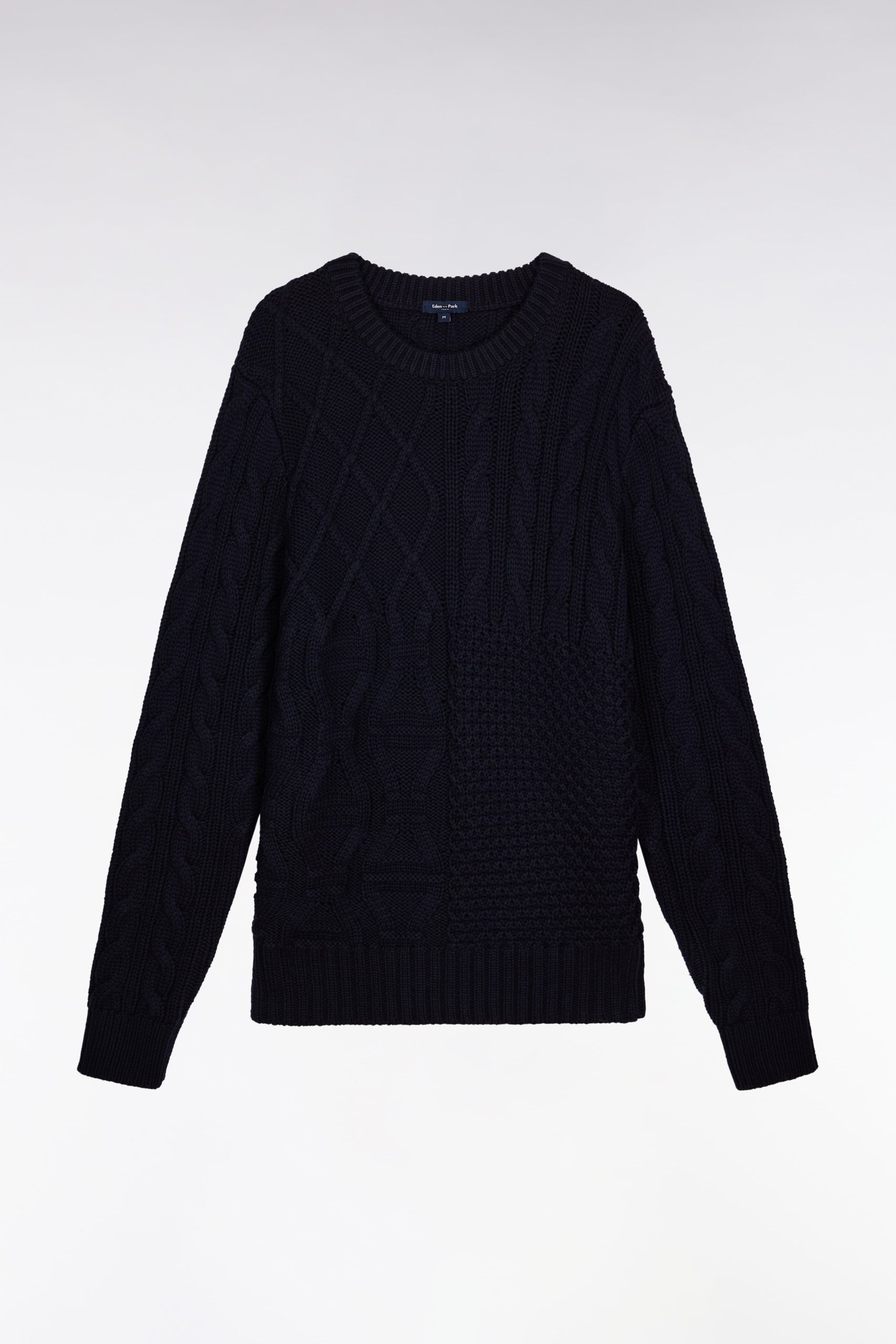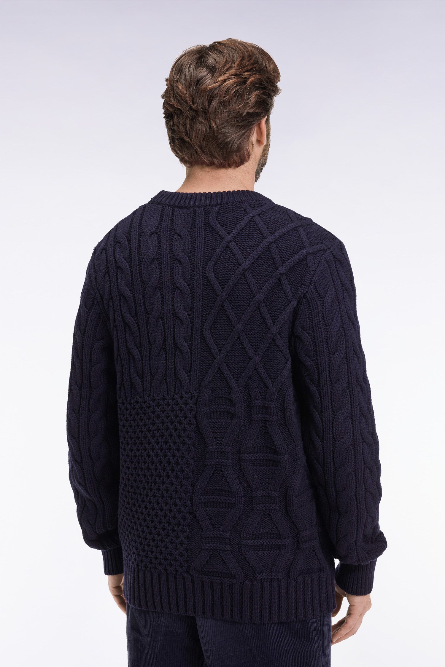 Inspiré des maillots de rugby en coupé-cousu, ce pull se distingue par ses différents tricotages placés en cadrans pour dynamiser la silhouette. Signature subtile du savoir-faire et de l’esprit Eden Park, ce pull en laine et coton apporte un effet gros pull à la silhouette tout en préservant sa légèreté