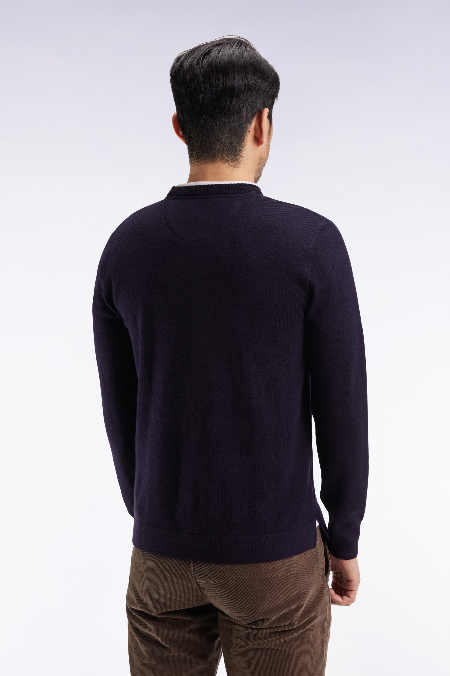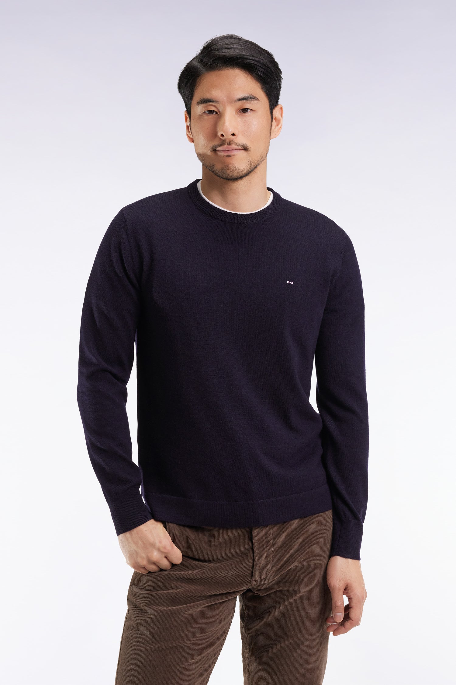 Après le col camionneur et le col roulé, place à un autre pilier du vestiaire automne-hiver : le pull mérinos à col rond. Confectionné en pure laine mérinos, ce pull col rond allie douceur, chaleur et respirabilité naturelle. Sa coupe droite confortable, son tombé impeccable et sa broderie nœud papillon sur la poitrine signent cet essentiel du vestiaire Eden Park à l’élégance sobre et intemporelle