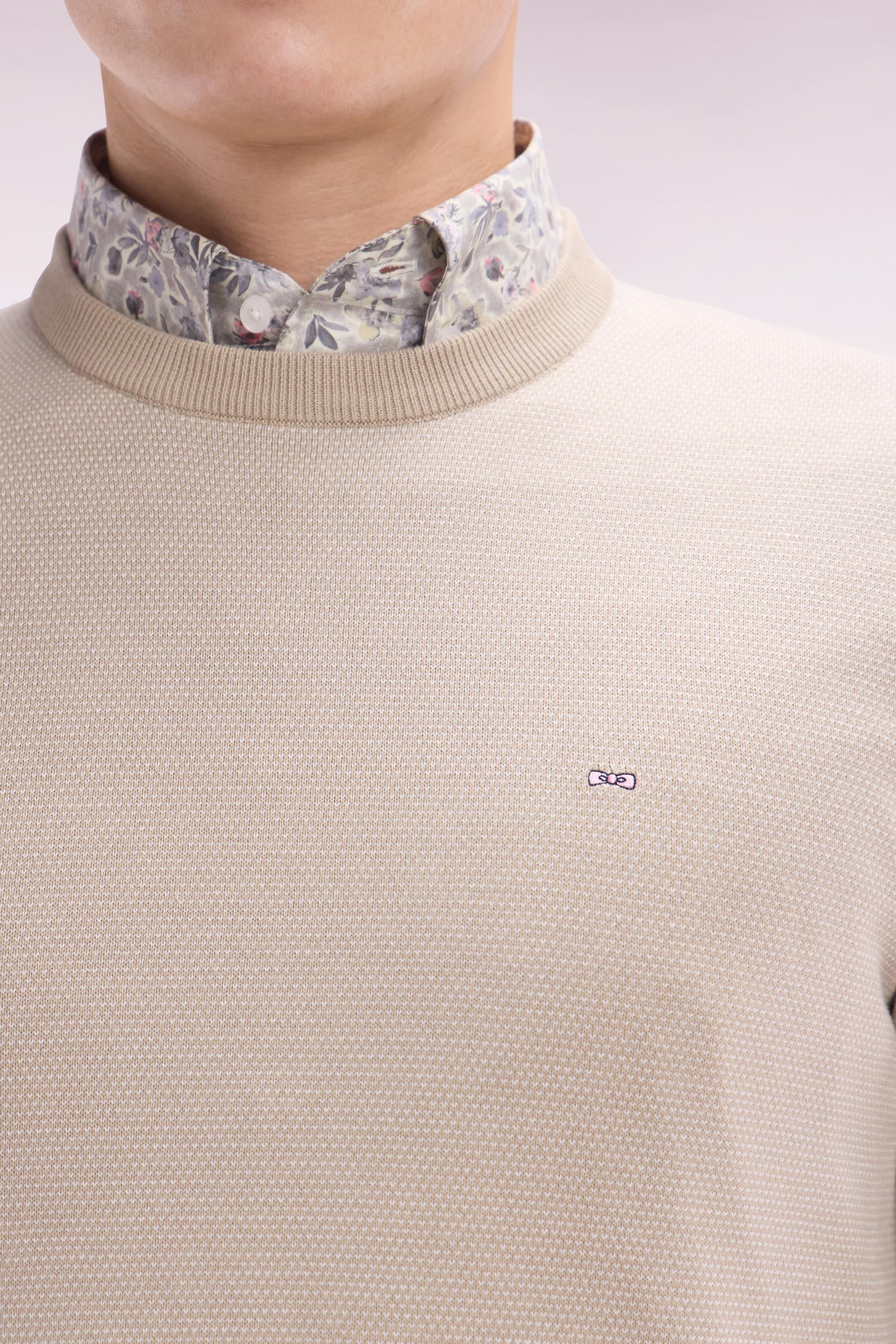 Ajoutez une touche d’élégance et de texture à votre vestiaire avec ce pull col rond en maille de coton au tissage Oxford. Les bords-côtes aux manches et au bas de la pièce garantissent un ajustement impeccable, tandis que son point fantaisie subtil rehausse sa silhouette sobre. La broderie du nœud papillon, signature emblématique de la Maison, témoigne du savoir-faire artisanal de nos ateliers. Décliné en plusieurs coloris, ce modèle de pull polyvalent est idéal pour les journées printanières ou les soirées d’été, offrant une élégance décontractée et un confort incomparable.