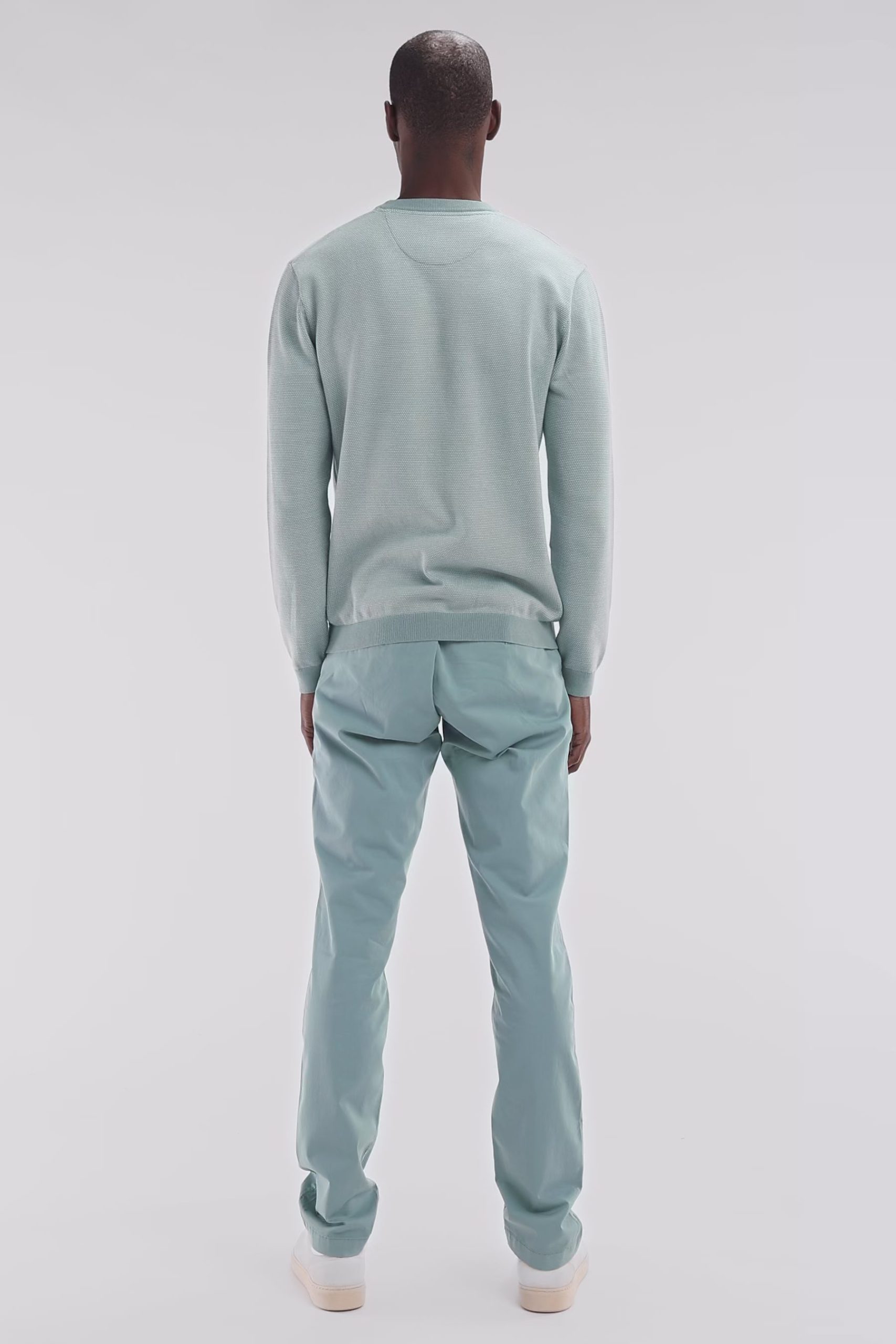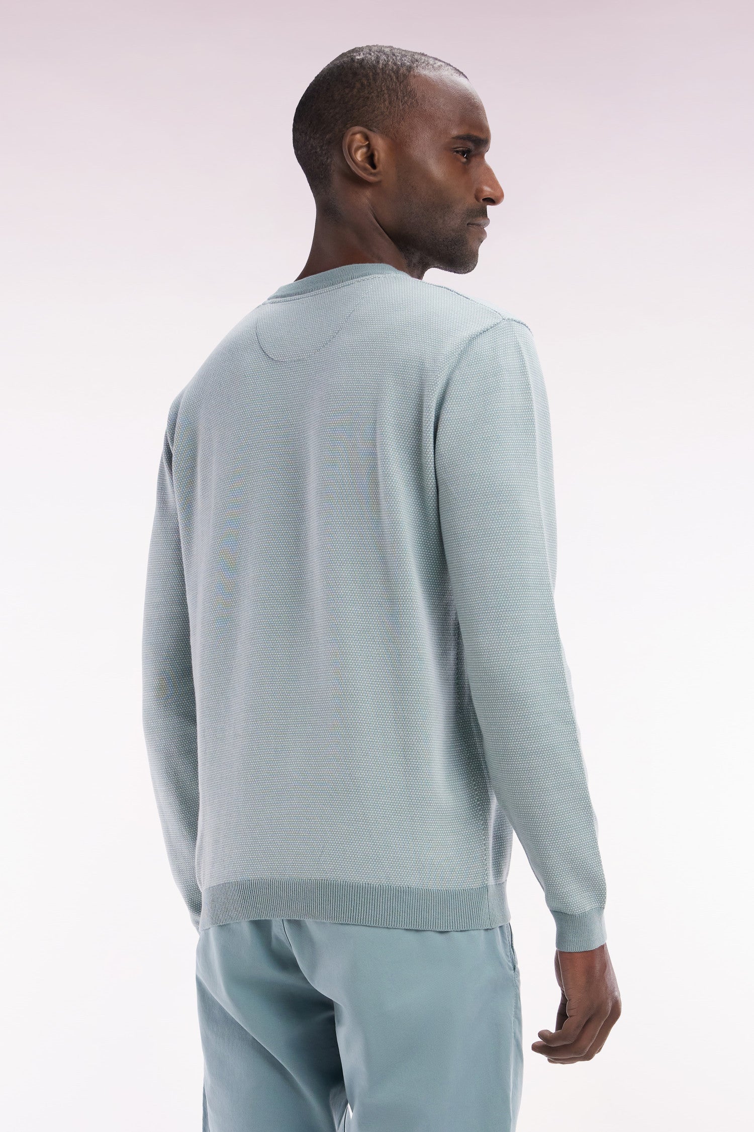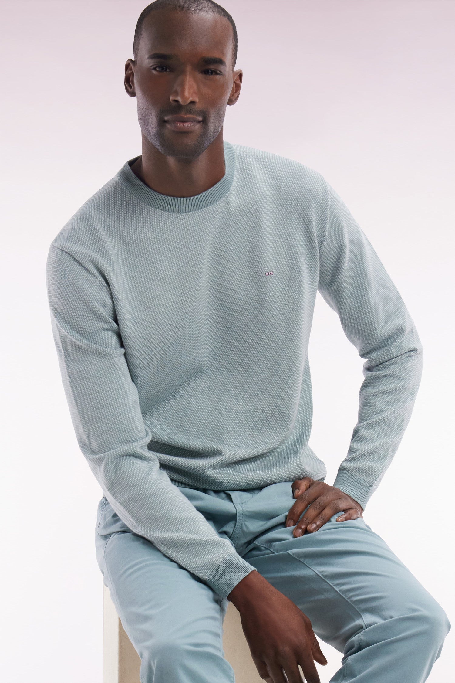 Ajoutez une touche d’élégance et de texture à votre vestiaire avec ce pull col rond en maille de coton au tissage Oxford. Les bords-côtes aux manches et au bas de la pièce garantissent un ajustement impeccable, tandis que son point fantaisie subtil rehausse sa silhouette sobre. La broderie du nœud papillon, signature emblématique de la Maison, témoigne du savoir-faire artisanal de nos ateliers. Décliné en plusieurs coloris, ce modèle de pull polyvalent est idéal pour les journées printanières ou les soirées d’été, offrant une élégance décontractée et un confort incomparable.