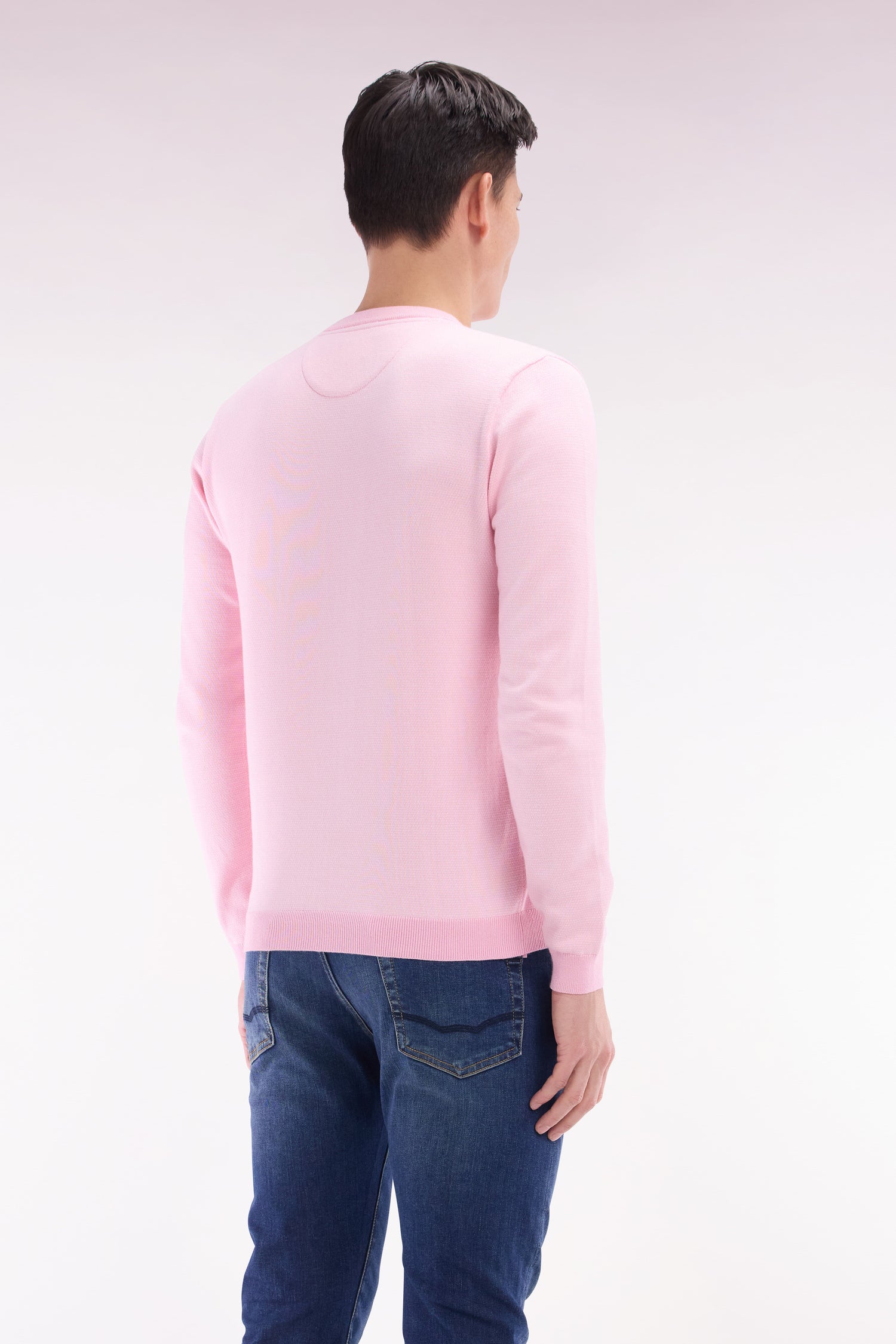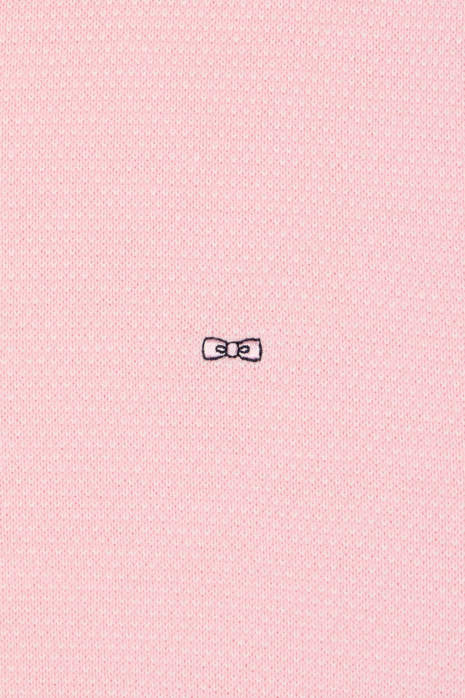 Ajoutez une touche d’élégance et de texture à votre vestiaire avec ce pull col rond en maille de coton au tissage Oxford. Les bords-côtes aux manches et au bas de la pièce garantissent un ajustement impeccable, tandis que son point fantaisie subtil rehausse sa silhouette sobre. La broderie du nœud papillon, signature emblématique de la Maison, témoigne du savoir-faire artisanal de nos ateliers. Décliné en plusieurs coloris, ce modèle de pull polyvalent est idéal pour les journées printanières ou les soirées d’été, offrant une élégance décontractée et un confort incomparable.