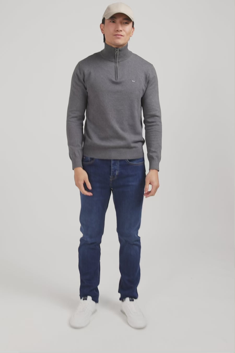 Réalisé en tricot de coton doux et chaud, ce pull à col camionneur zippé joue la carte de la simplicité. Adoptez ce must-have décontracté du vestiaire d’hiver pour réchauffer un chino en coton et des derbies en cuir marron.