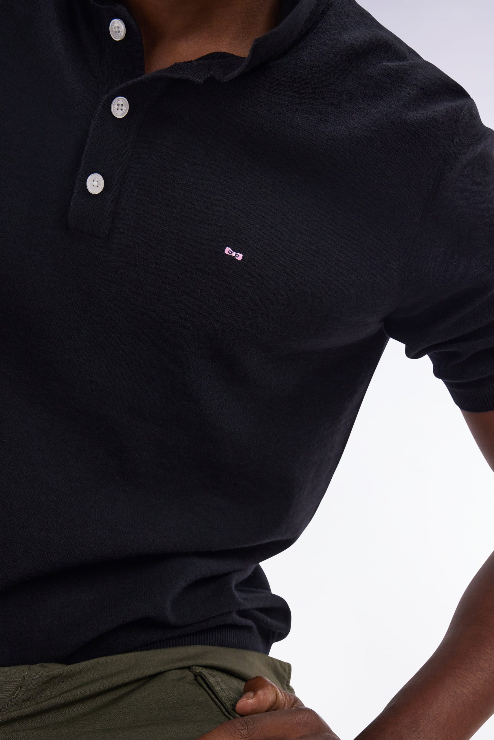 Ce pull homme à col polo vous propose de succomber à une élégance intemporelle, grâce à ses détails subtils comme les boutons ovales siglés et les bord-côtes ton sur ton. Disponible en noir ou marine, il s’impose comme un essentiel polyvalent du vestiaire masculin. Confortable et raffiné, il se porte aussi bien sous un blazer pour une allure formelle que sur un jean pour un style casual sophistiqué. Un indispensable pour les amateurs d’élégance discrète et de pièces durables.