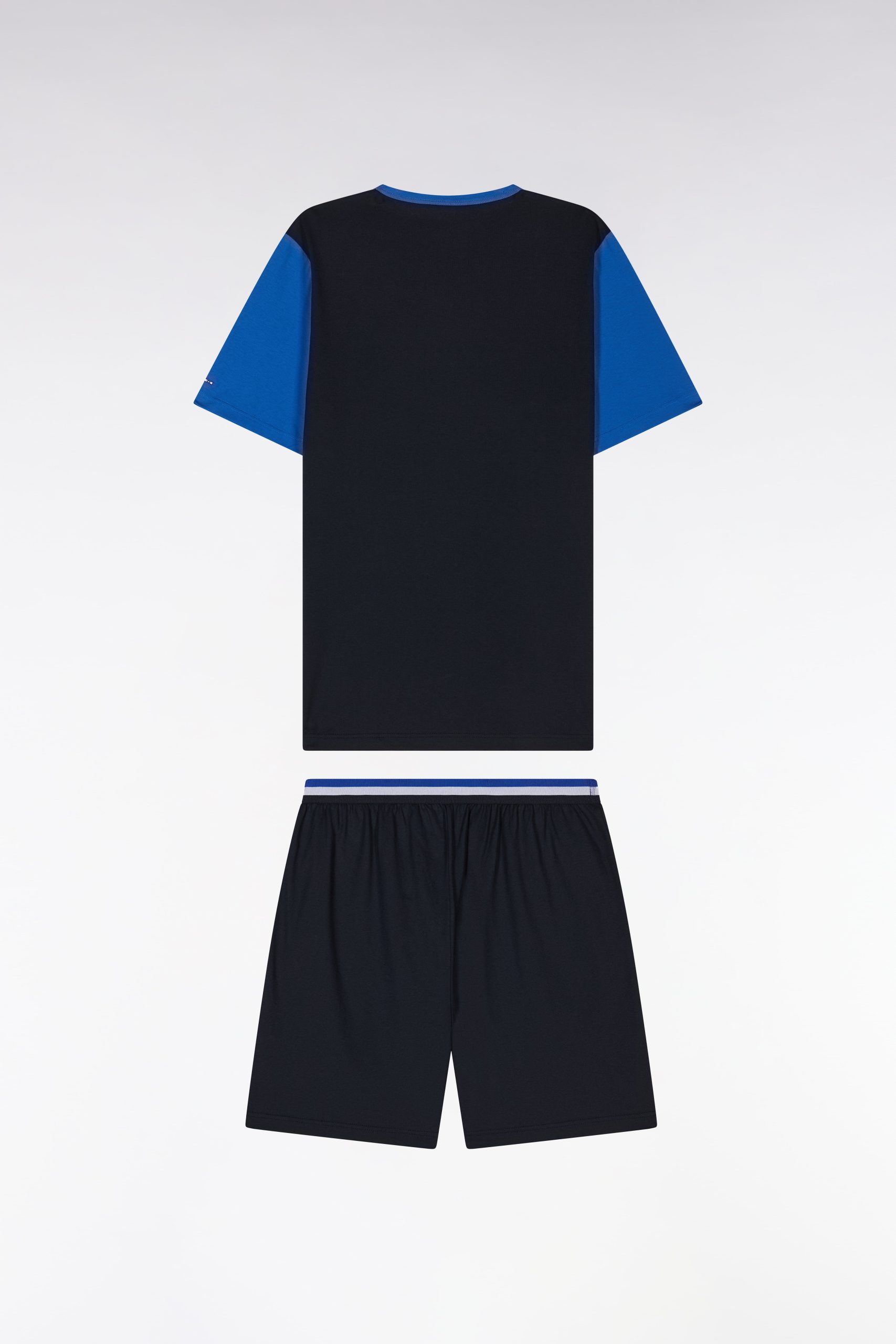 Ce pyjama homme associe un T-shirt en coton à manches courtes aux couleurs de la Maison et un short marine uni à taille élastiquée décorée de nos bandes rayées d’inspiration athlétiques. Parfait pour allier confort et élégance même au cœur de la nuit.