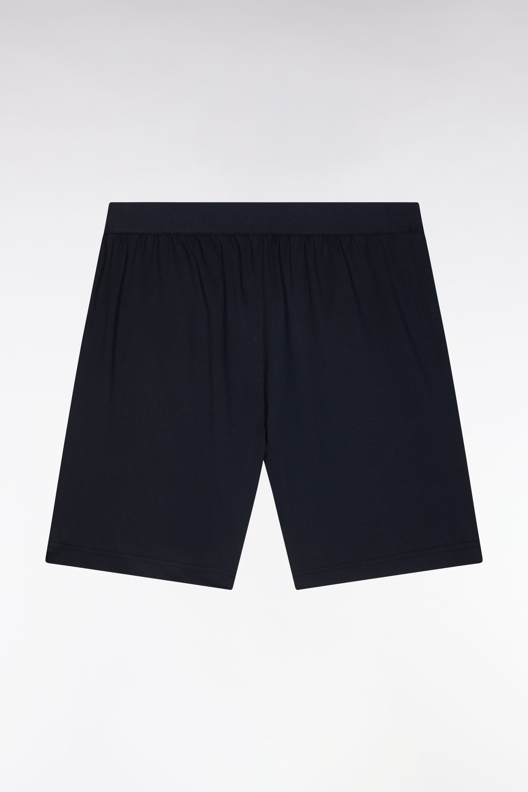 Notre pyjama duo classique est revisité avec un T-shirt uni en coton doux rose, ciel ou blanc et un short marine à taille élastique. Une association chic et intemporelle, parfaite pour votre confort dans vos moments de détente.