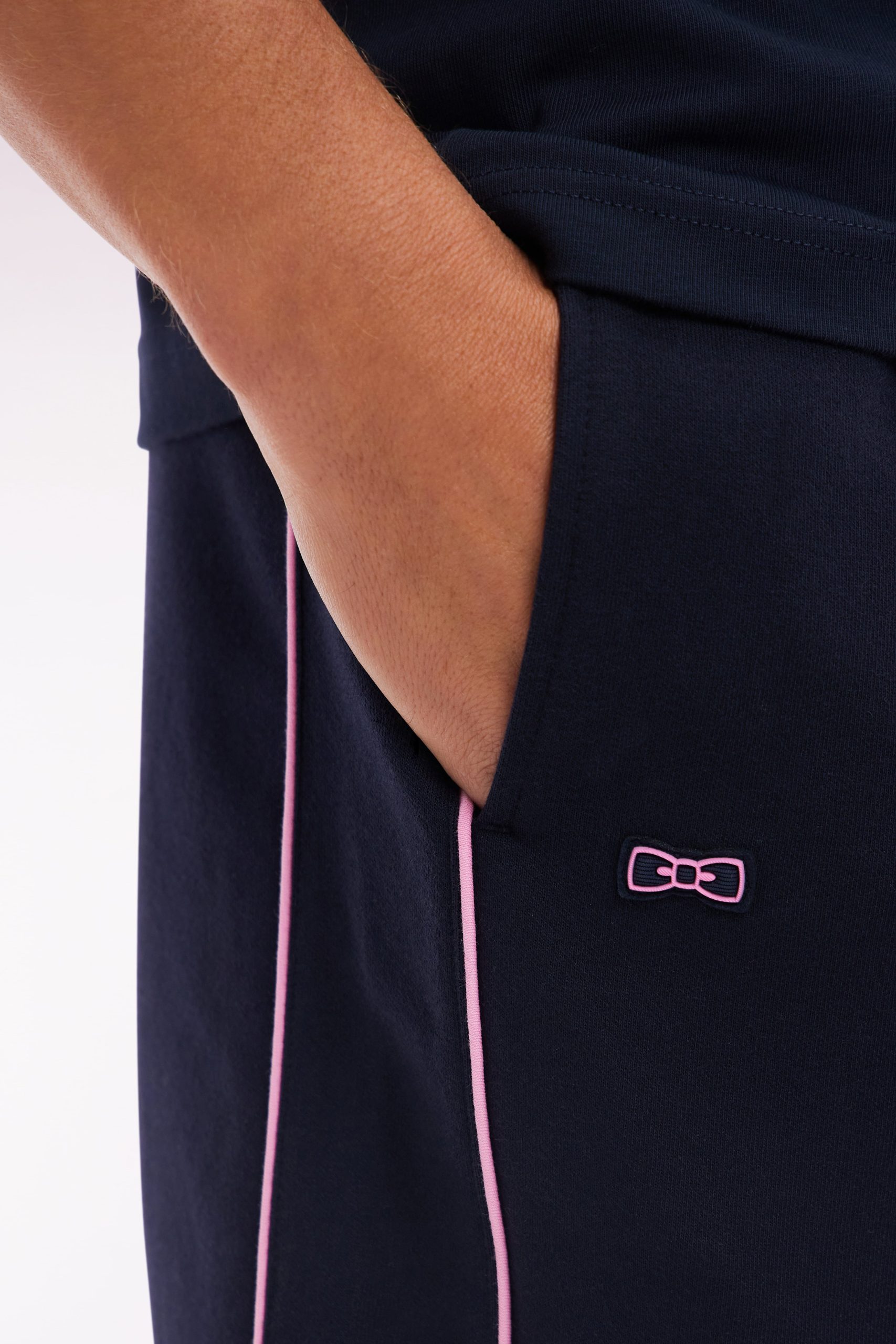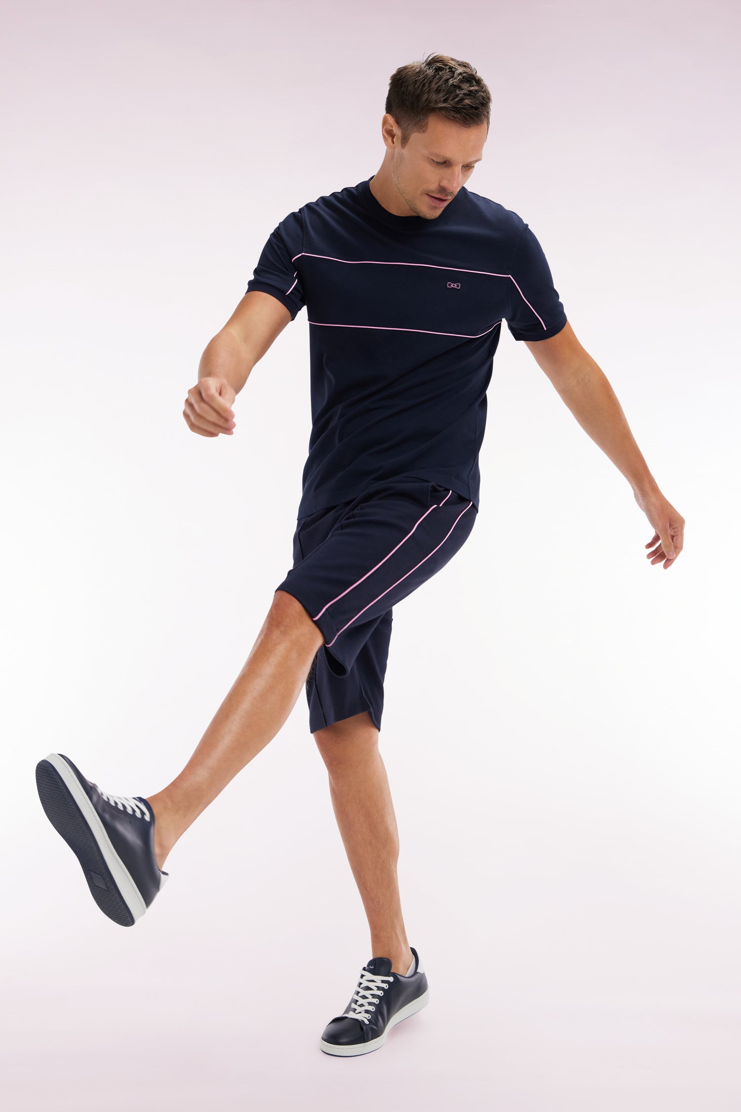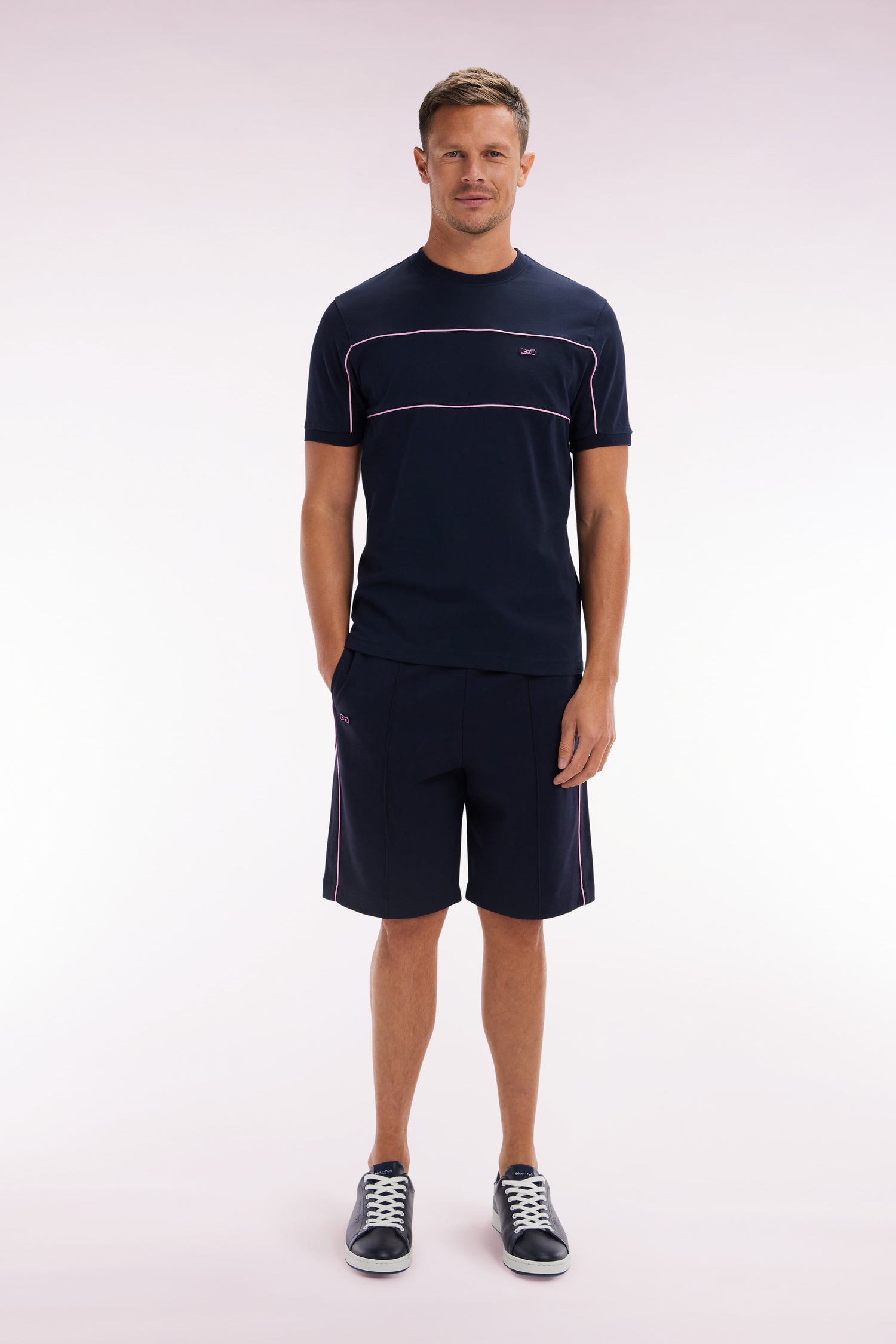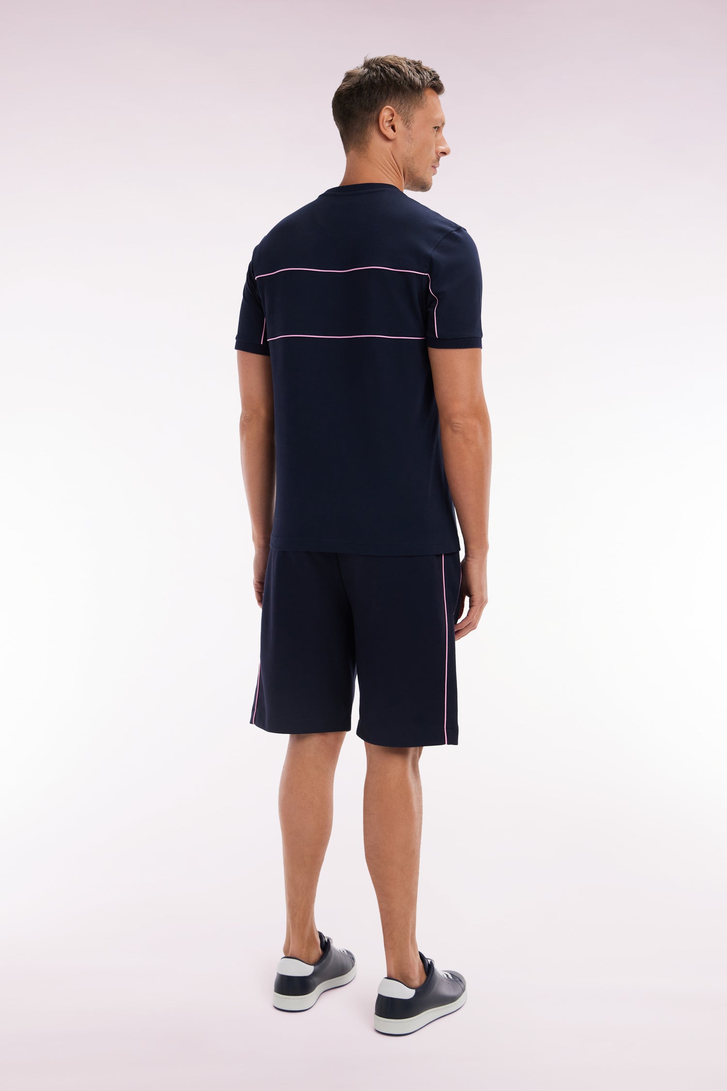 Ce short à taille coulissée, avec son jeu de colorblock et ses passepoils contrastés, offre un style sportif et élégant. Doté d’un badge à la poche et de liens de serrage, il s’associe parfaitement avec le sweatshirt zippé à capuche montante assorti.