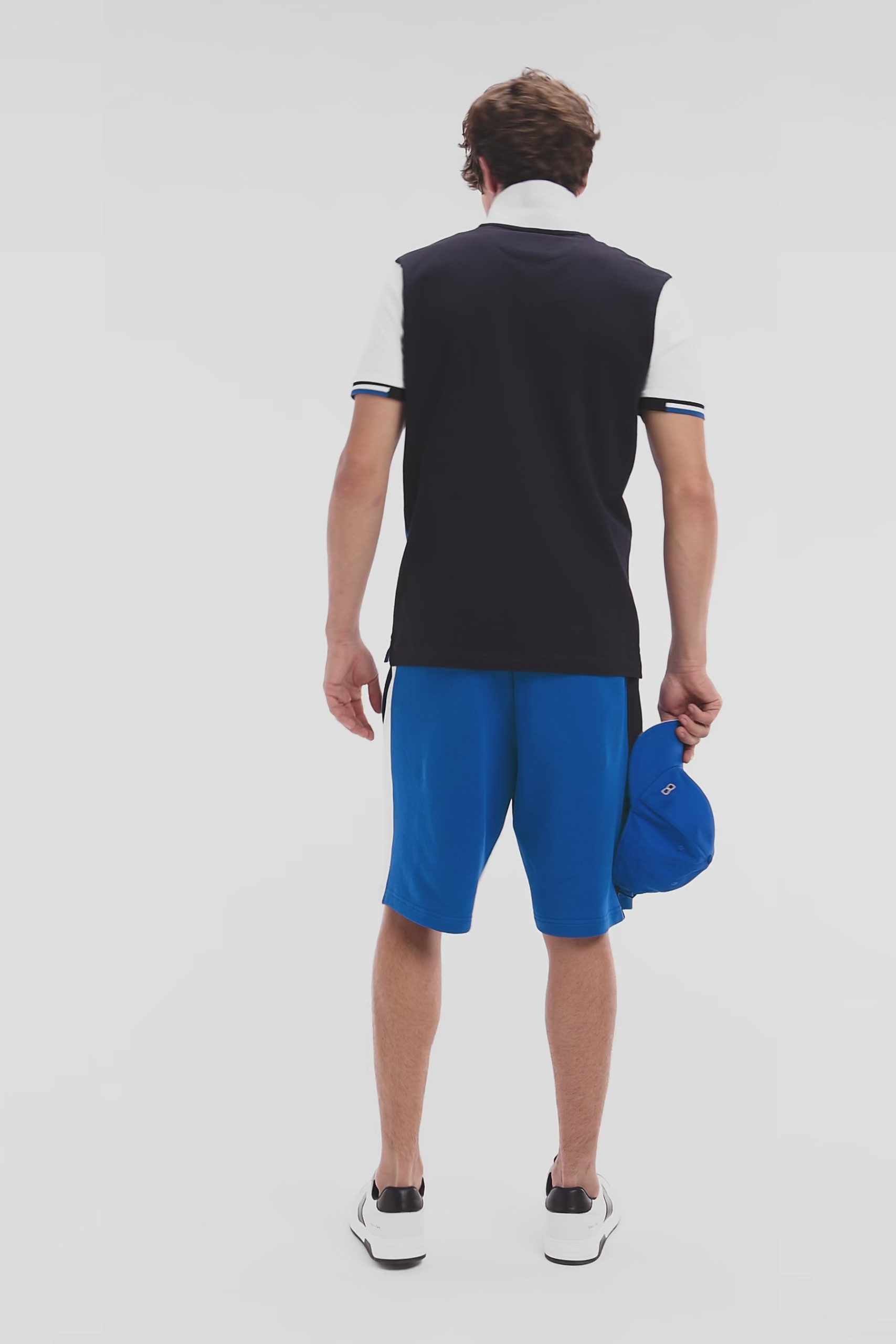 Ce short pour homme en molleton coton, avec sa taille élastiquée et ses cordons tricolores à embouts métalliques, allie le confort et le style. Les détails contrastés le long de la jambe et la poche arrière passepoilée avec le logo et l’emblème de notre Maison renforcent son allure sport-chic. Idéal à porter avec un t-shirt, un polo ou le sweatshirt à capuche assorti, disponible dans les mêmes coloris.