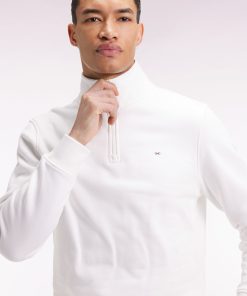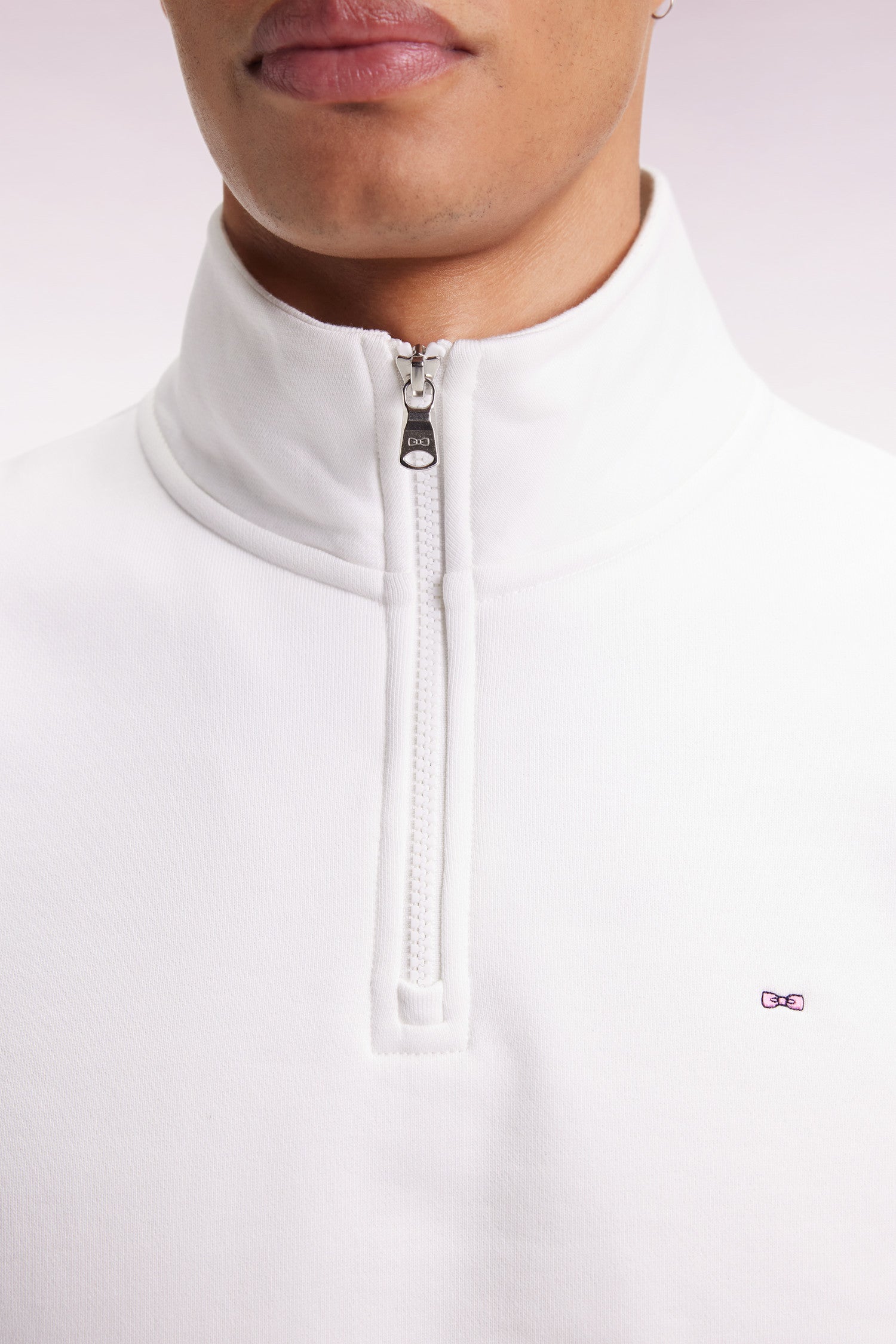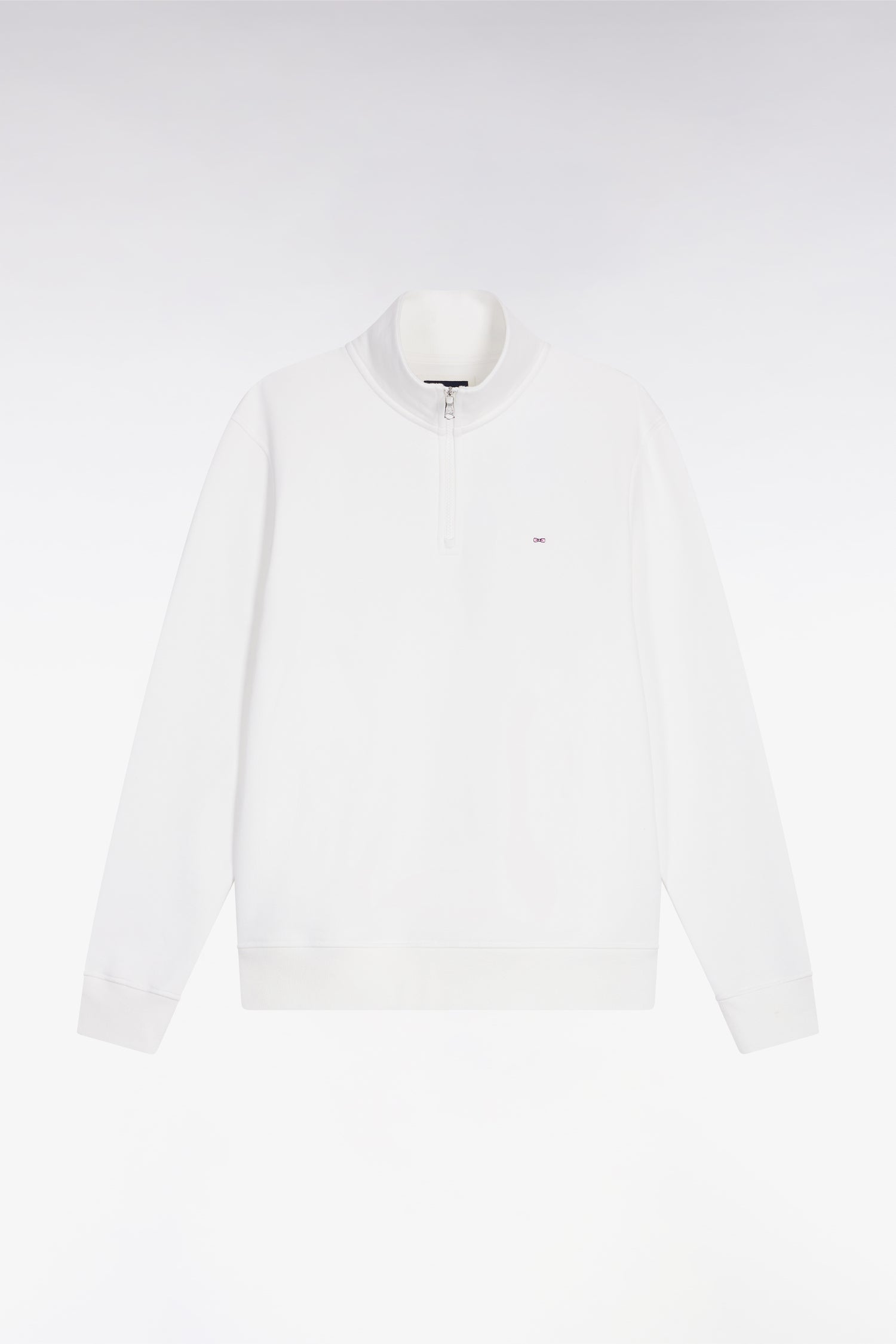 Ce sweatshirt à col montant zippé réalisé en molleton gratté s’impose comme un essentiel du vestiaire décontracté. Son intérieur de col, ses poignets et son bas de corps en bords-côtes assurent un maintien confortable. Décliné dans une large palette de coloris, ce sweatshirt pour homme se porte aussi bien avec un jogging coordonné qu’un jean