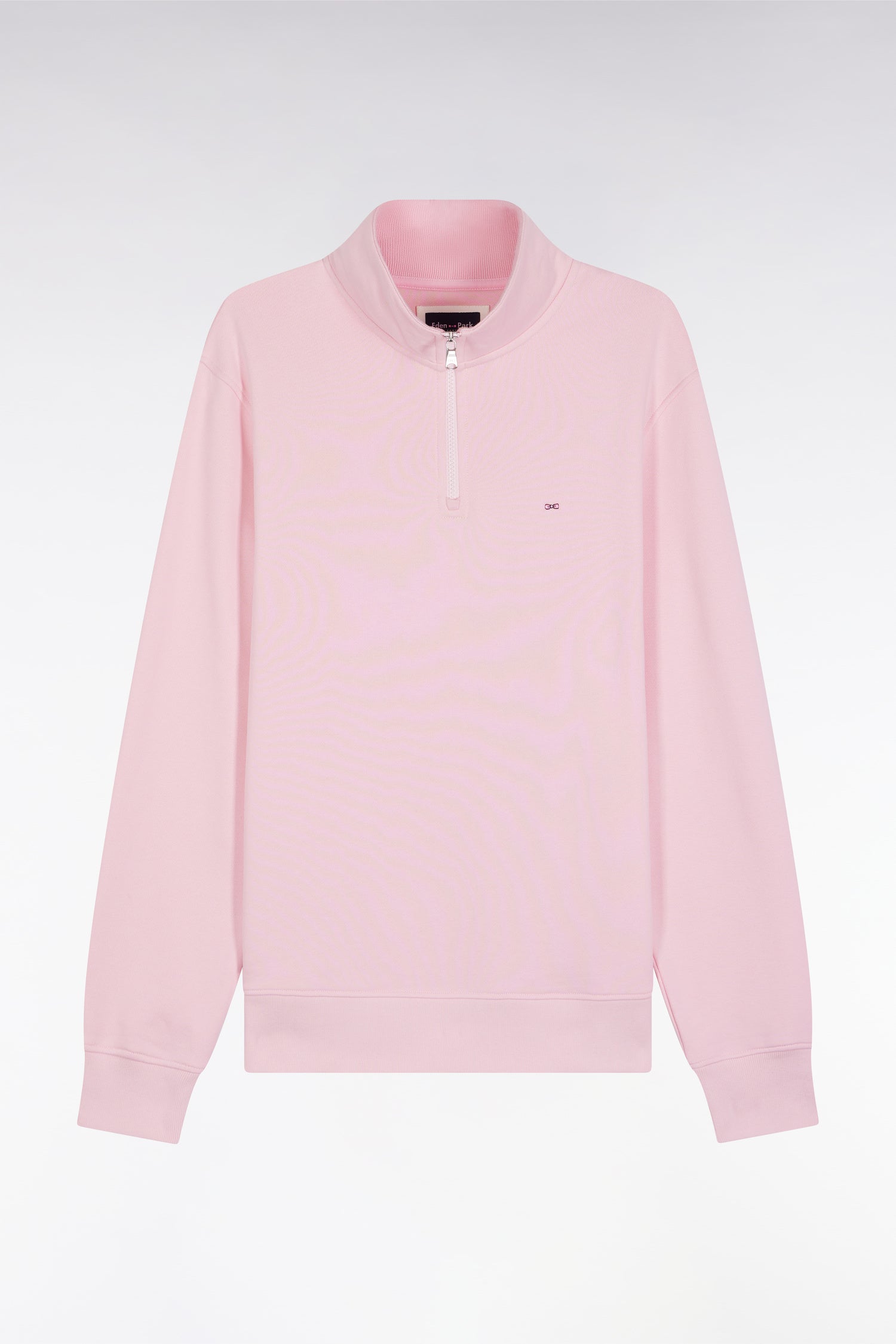 Ce sweatshirt à col montant zippé réalisé en molleton gratté s’impose comme un essentiel du vestiaire décontracté. Son intérieur de col, ses poignets et son bas de corps en bords-côtes assurent un maintien confortable. Décliné dans une large palette de coloris, ce sweatshirt pour homme se porte aussi bien avec un jogging coordonné qu’un jean