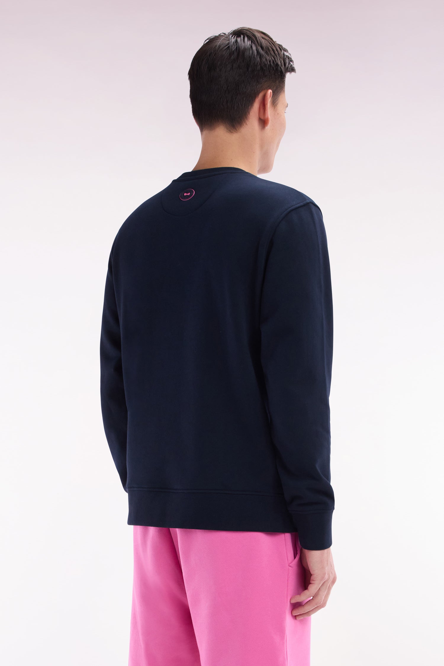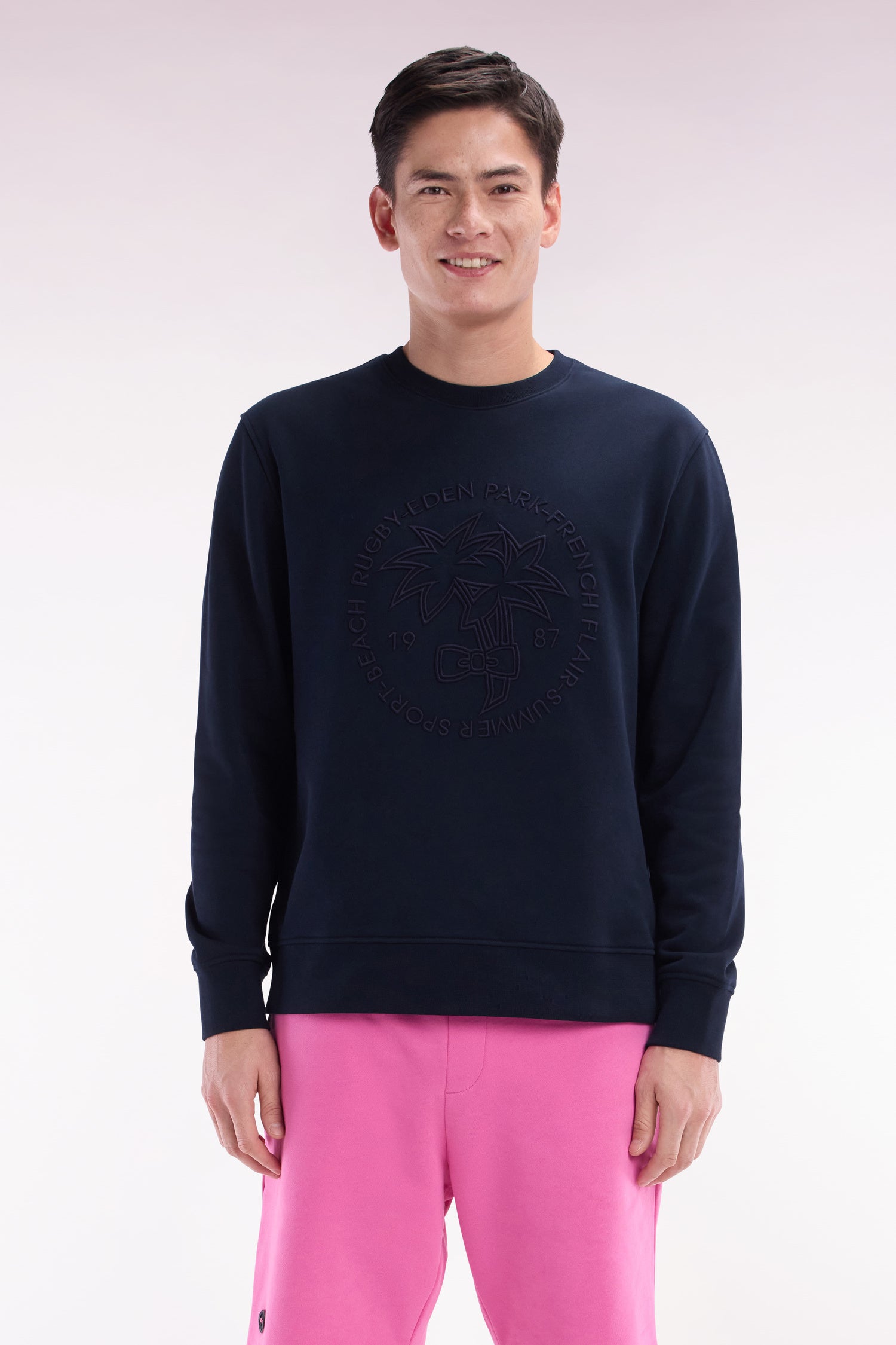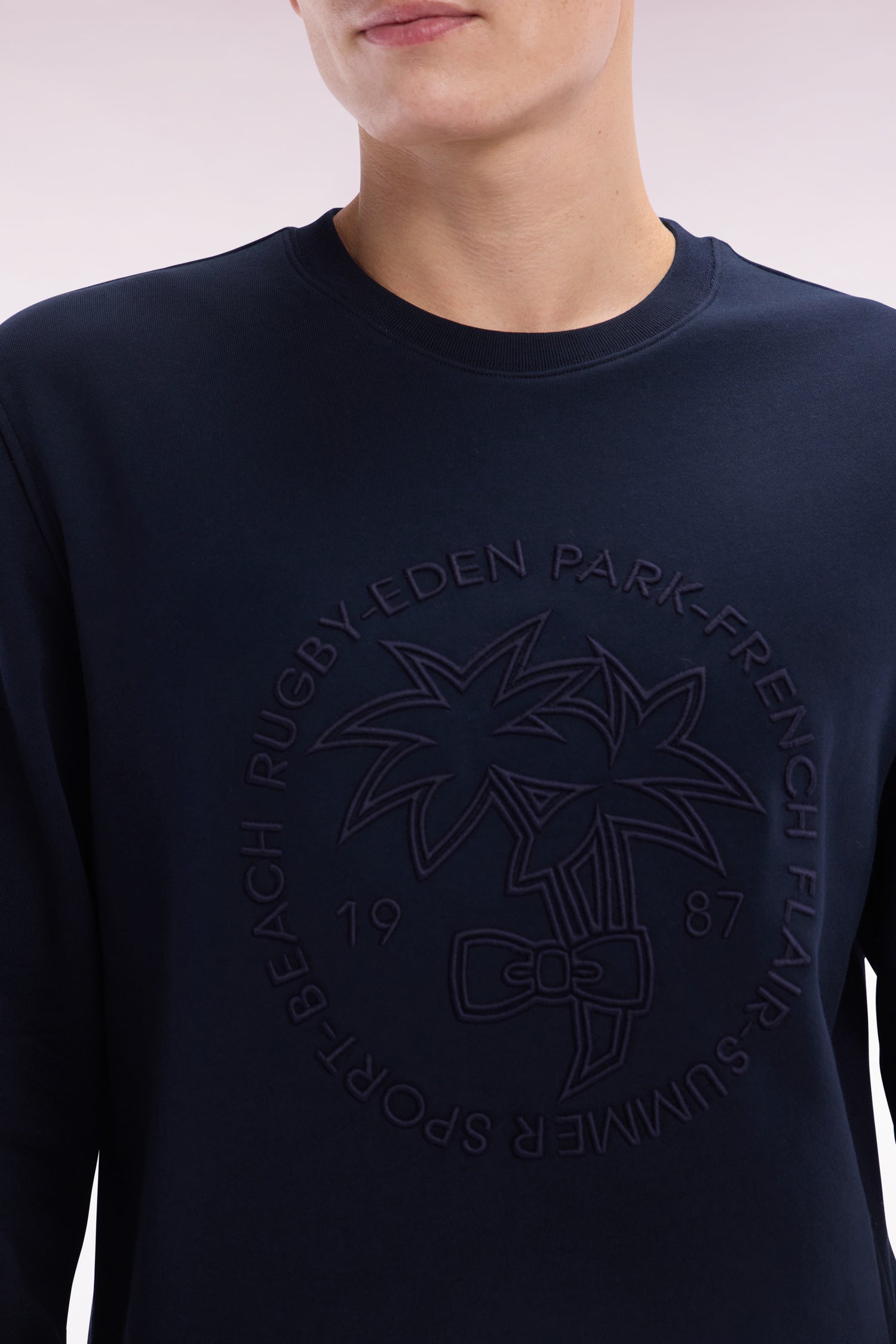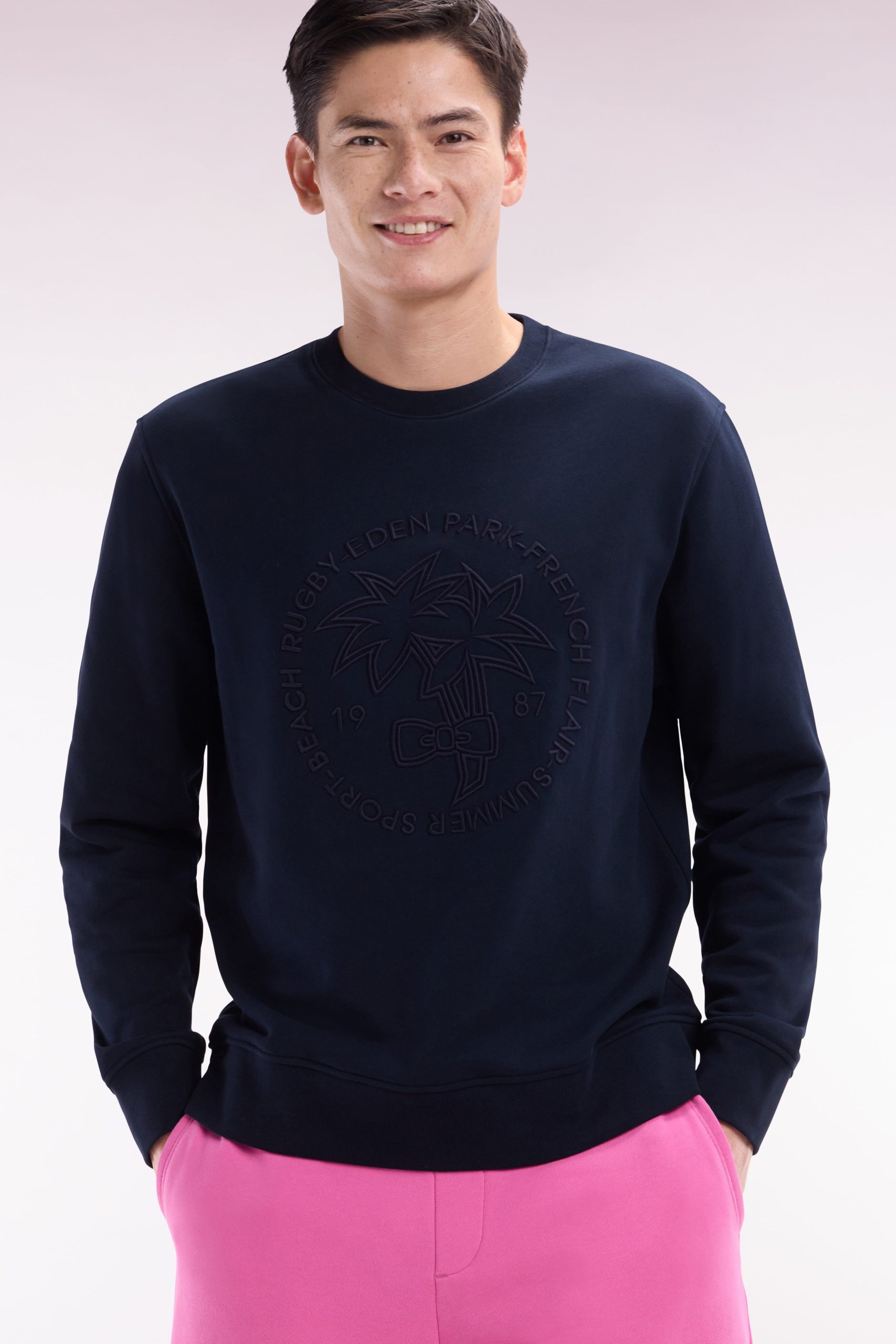 Alliant simplicité et originalité, ce sweatshirt uni marine réinvente le style sport-chic avec une broderie palmier ton sur ton, ajoutant une touche subtile et unique à votre tenue. Fabriqué dans une matière douce et résistante, il est doté de bords-côtes qui assurent une coupe impeccable et un confort incomparable. Le badge en gomme sur la manche et le ruban de propreté rose à l’intérieur viennent souligner les finitions premium, véritables signatures de la Maison. Avec sa coupe légèrement ample, ce sweatshirt est parfait pour une allure décontractée mais soignée, idéale pour les journées relax ou les sorties casual.
