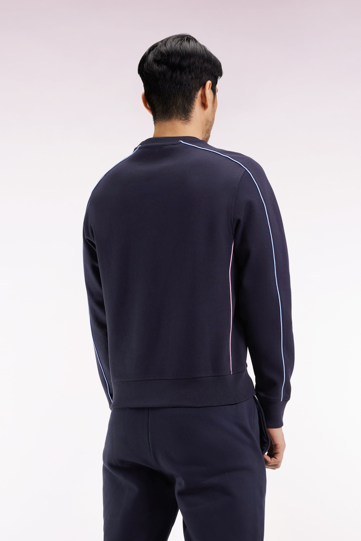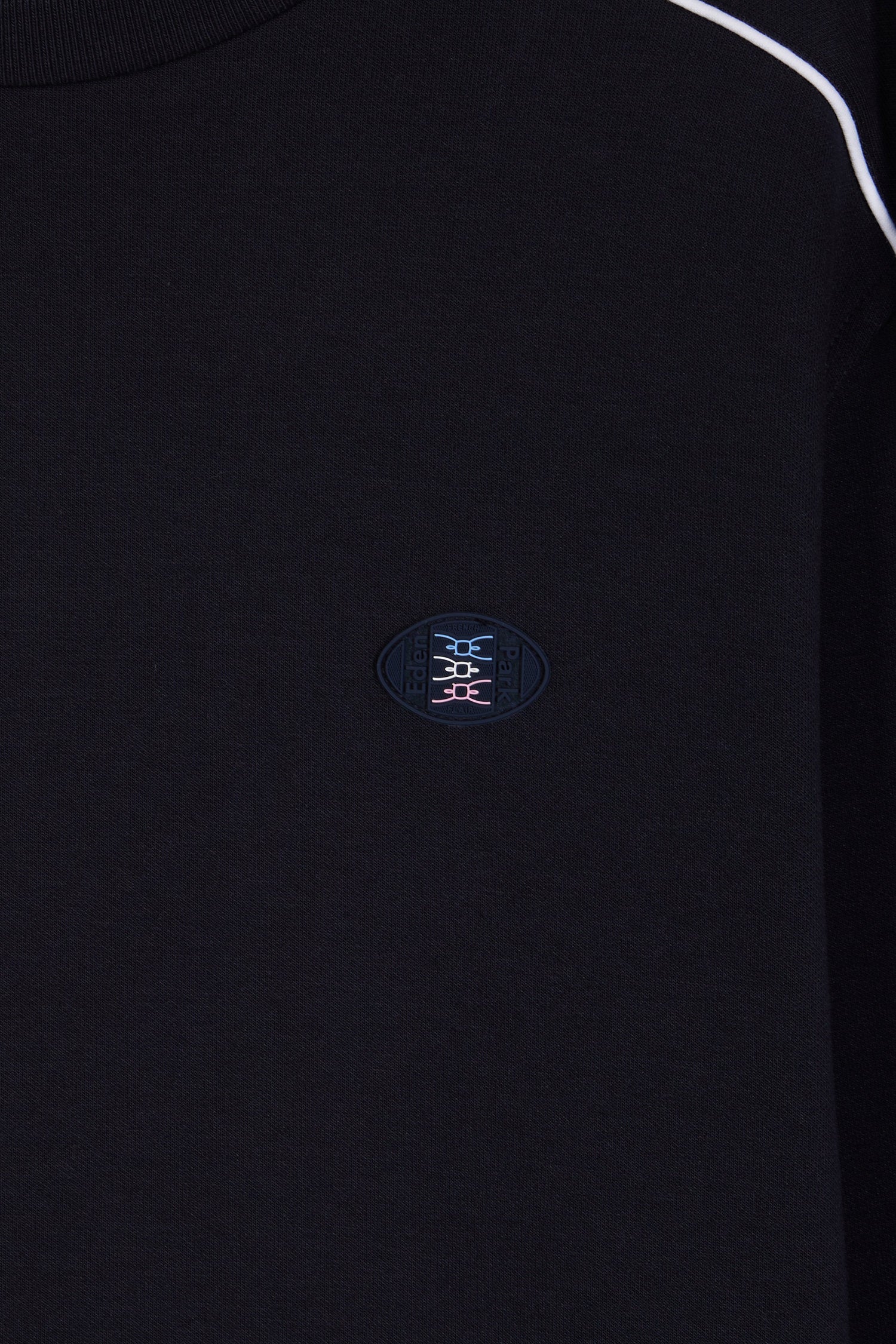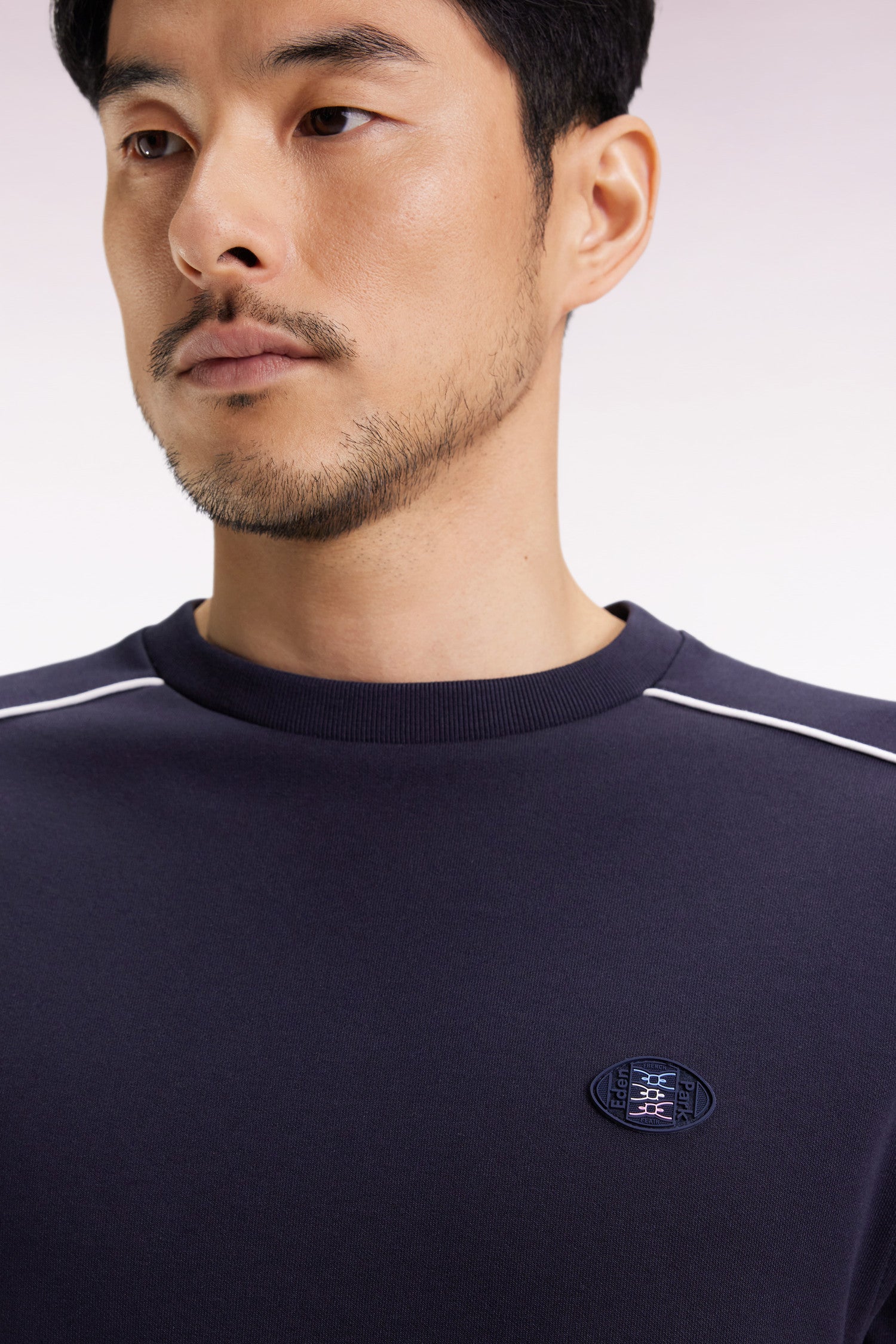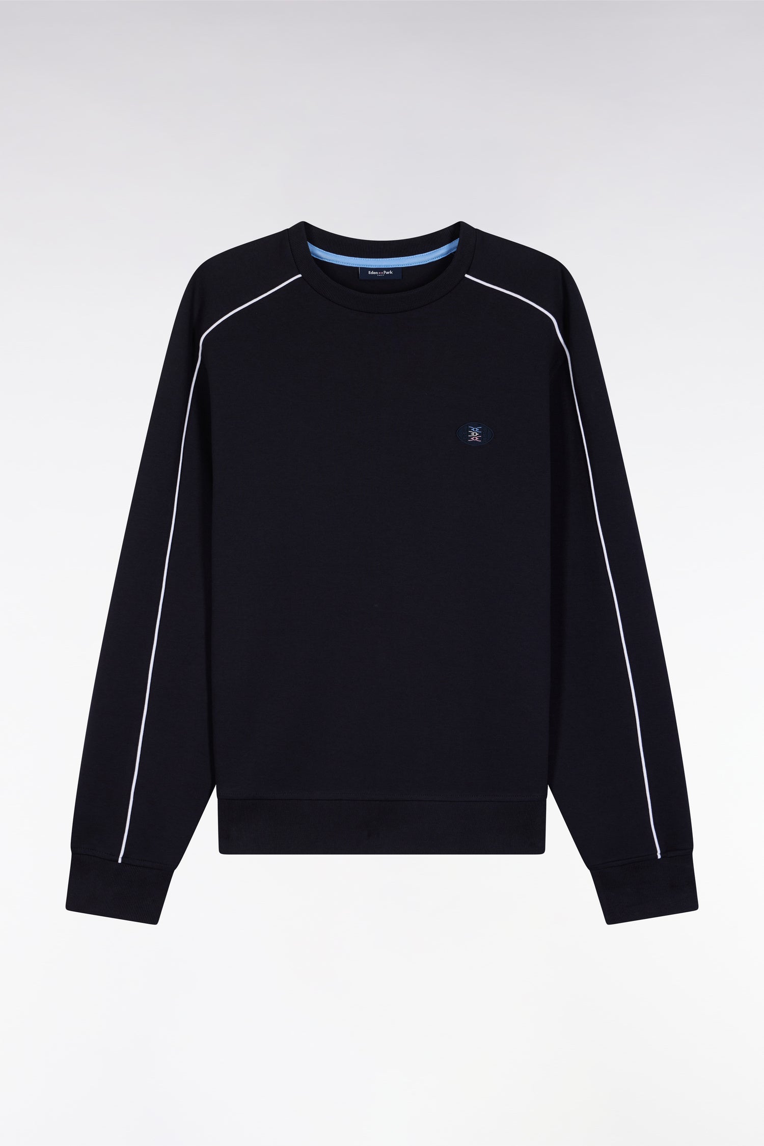 Ce sweatshirt à col rond confectionné dans un mélange de molleton coton gratté conjugue confort et caractère. Décliné en noir ou en marine, il se distingue par une broderie dos aux contour en relief et des passepoils contrastés qui mettent en valeur la silhouette. L’encolure et les poignets en bords-côtes renforcent l’allure structurée de ce modèle sport chic, emblématique du vestiaire Eden Park