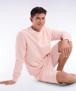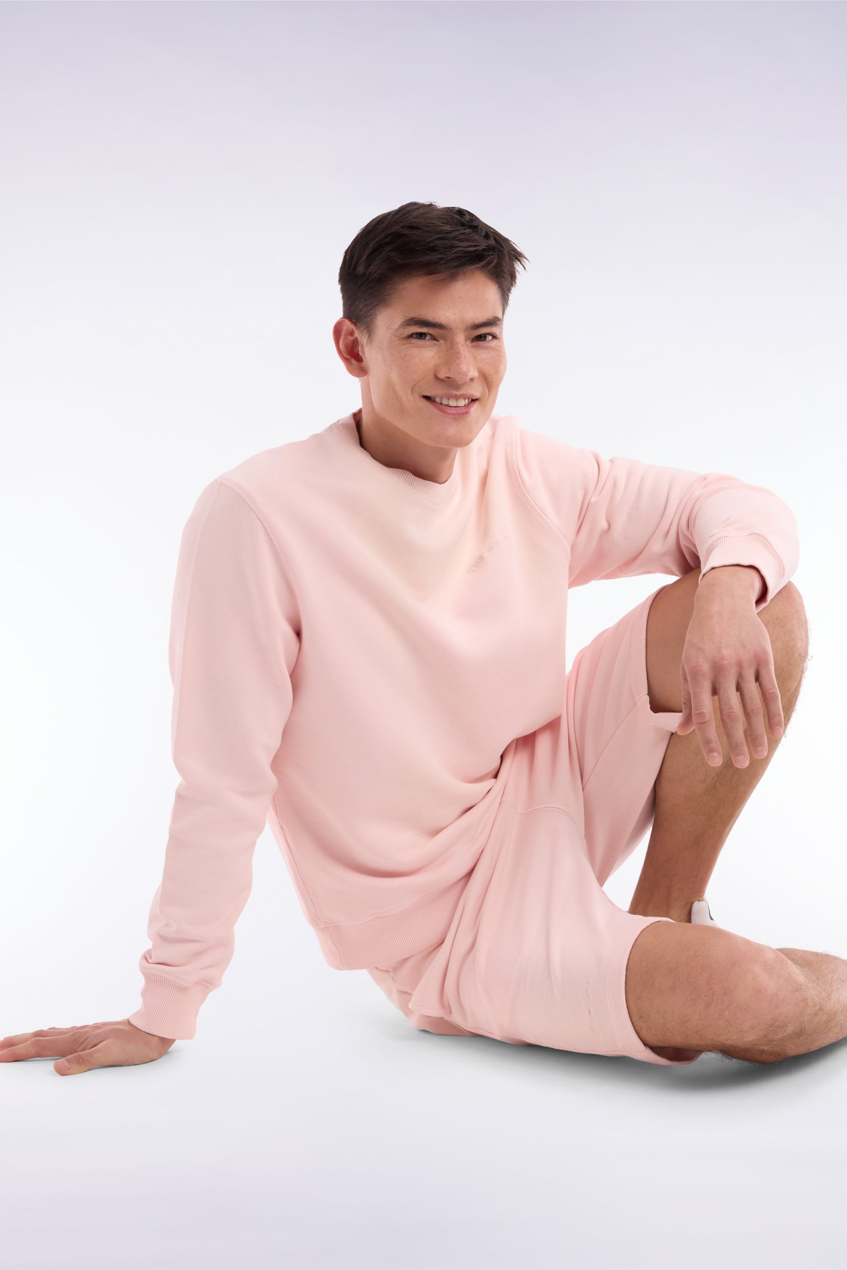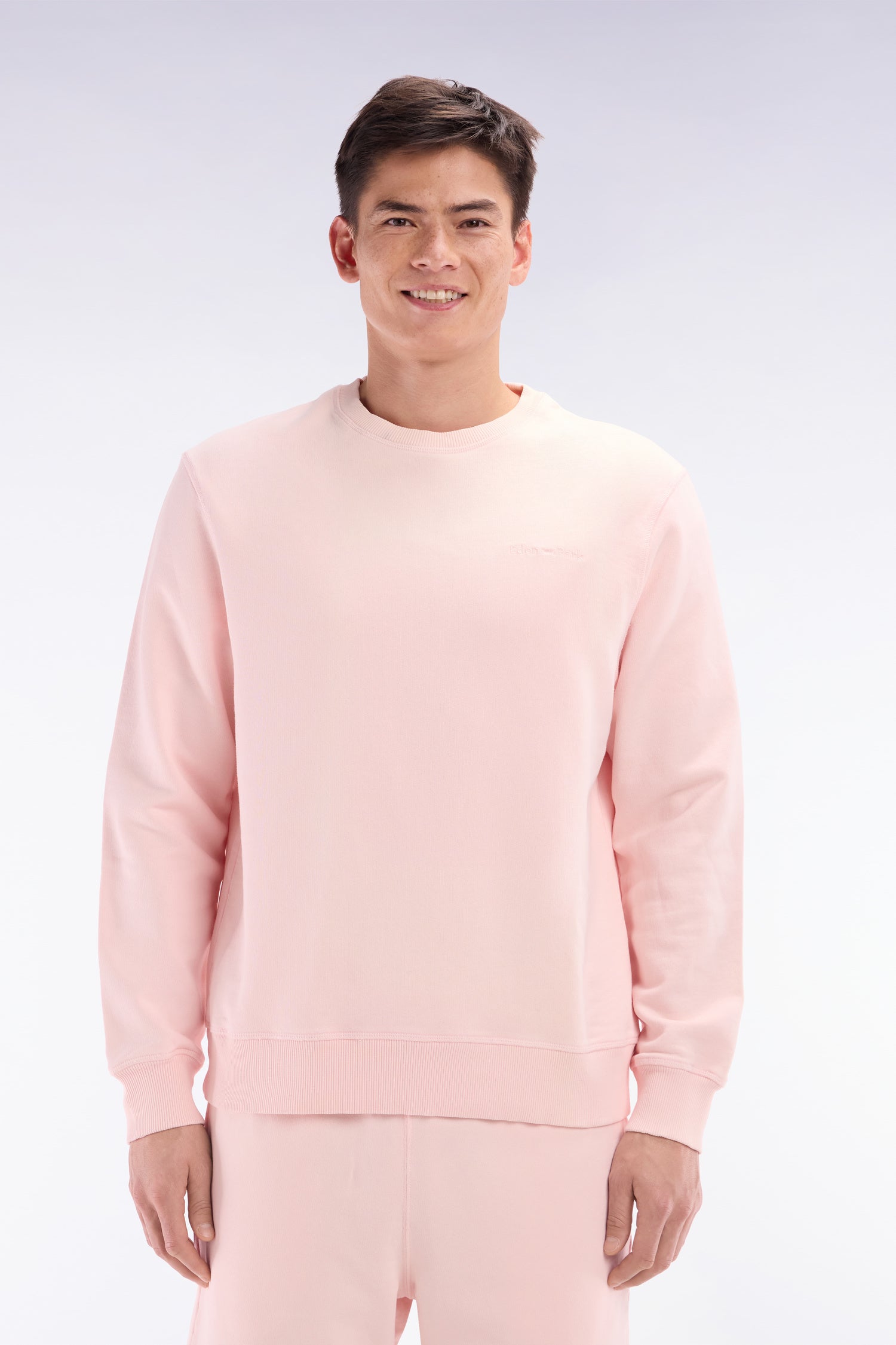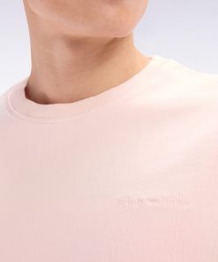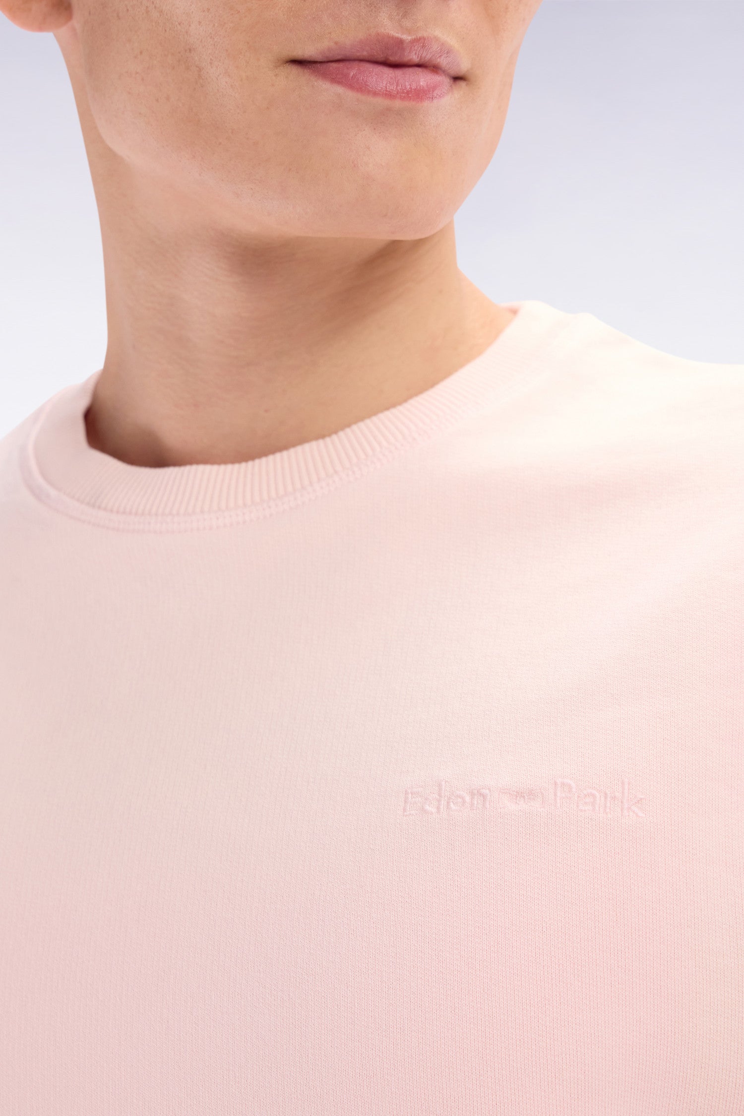 Eden Park Homme Men’s Sweatshirt Surteint À Col Rond En Molleton Coton Rose Pâle Coupe Décon