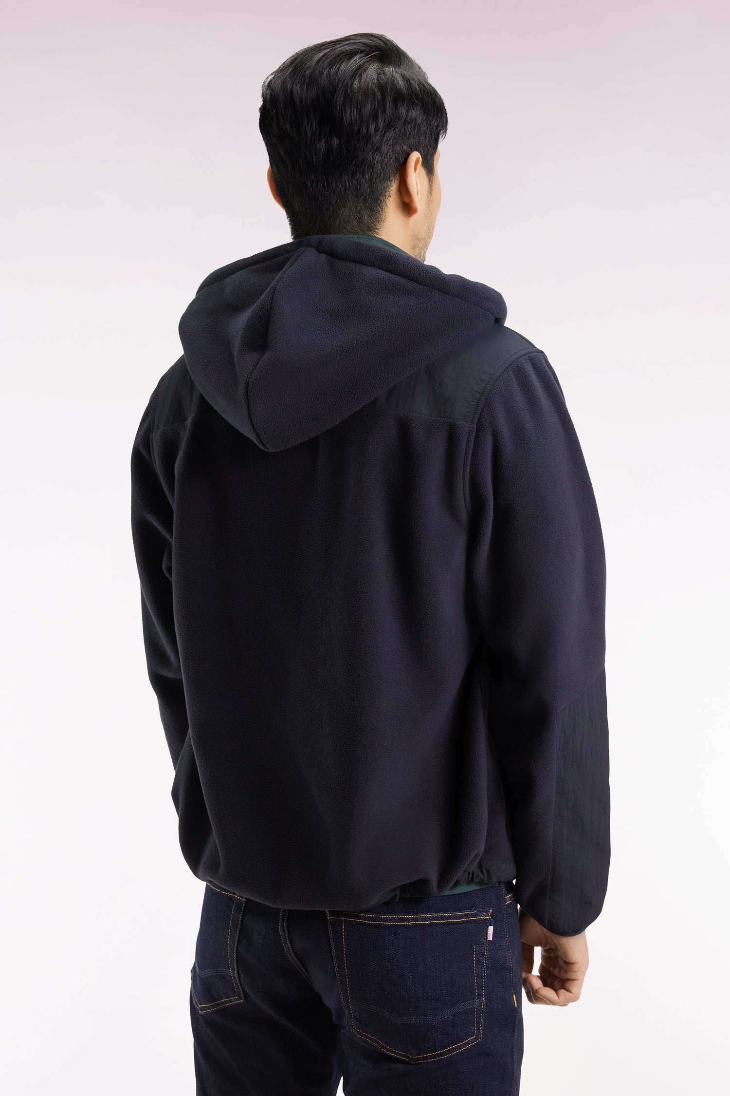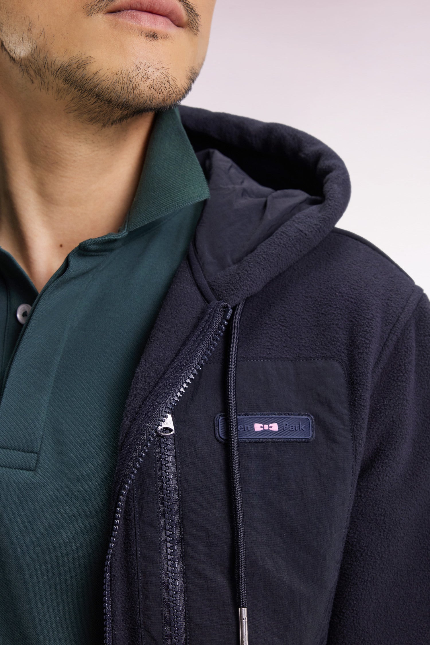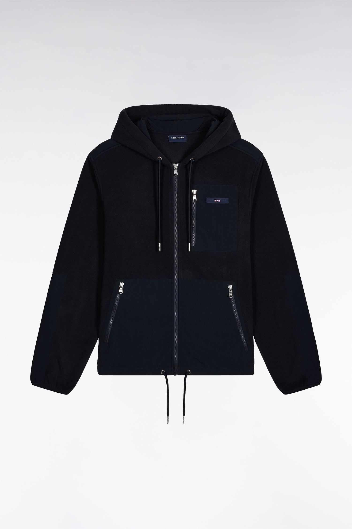 Alliance de style technique et d’allure contemporaine, cette veste zippée s’impose comme une pièce forte de la saison. Ses empiècements contrastés en nylon soulignent une silhouette graphique, renforcée par des zips métalliques brillants et une capuche enveloppante. Un modèle audacieux, à la croisée du blouson et du sweatshirt streetwear