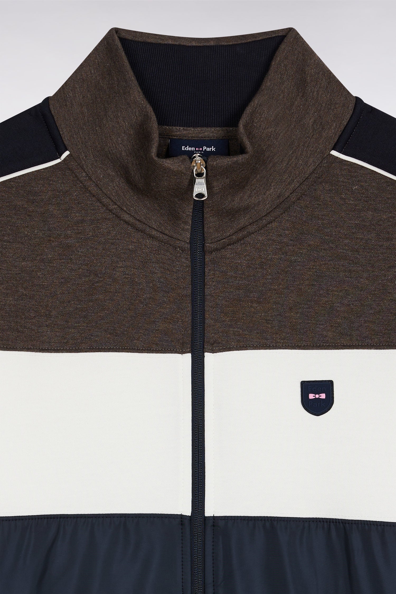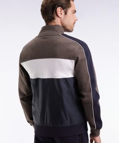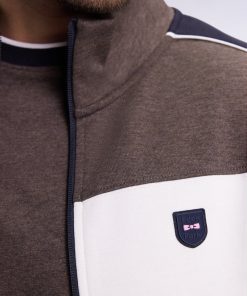 Eden Park Homme Men’s Sweatshirt Zippé Bimatière En Nylon Matelassé Marron