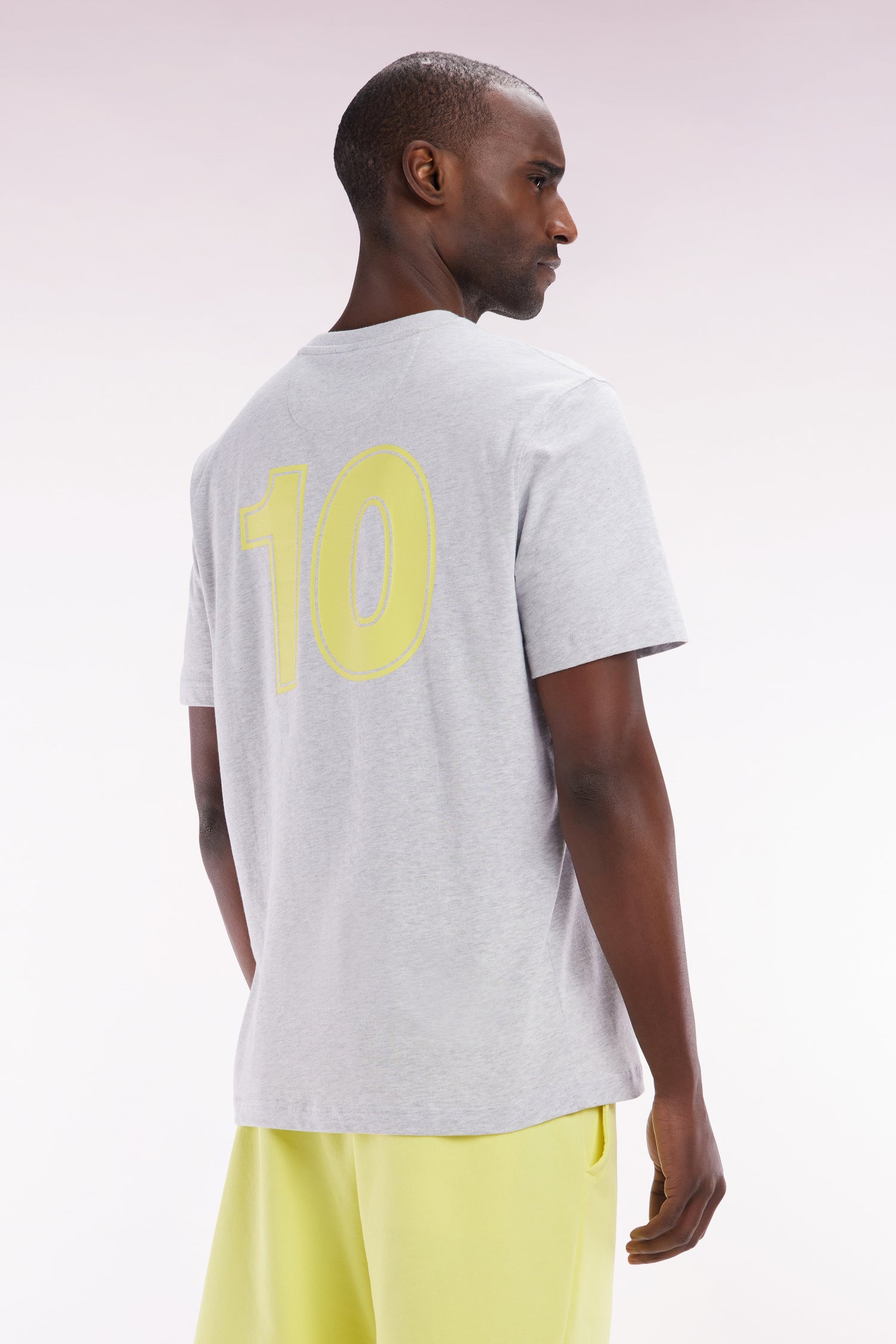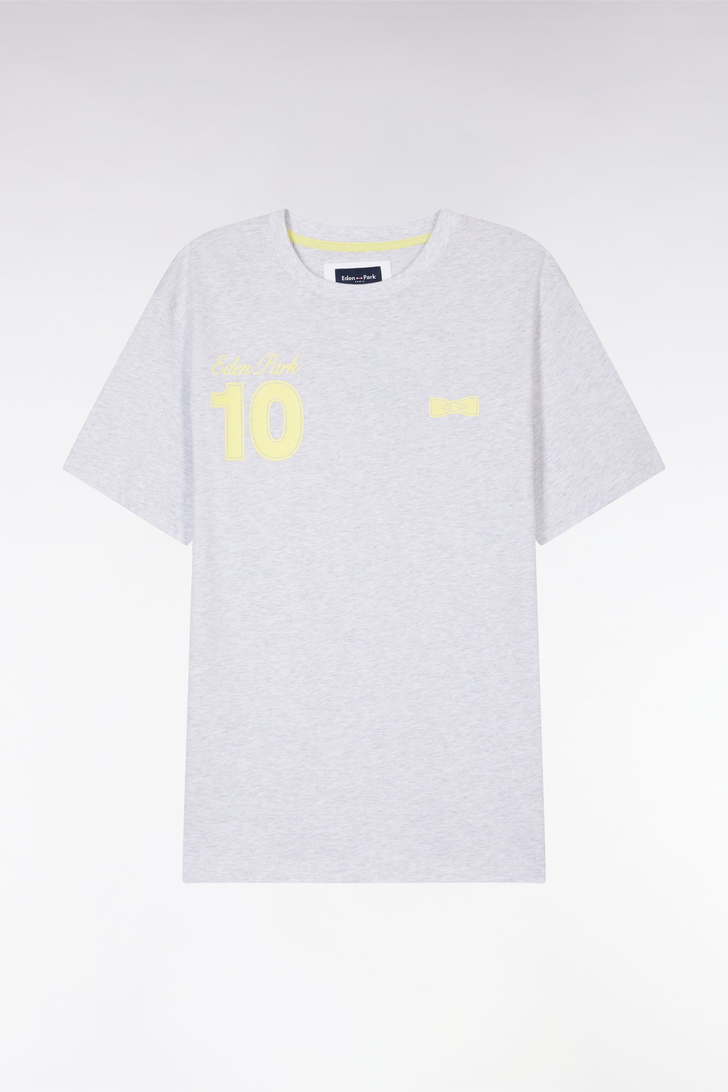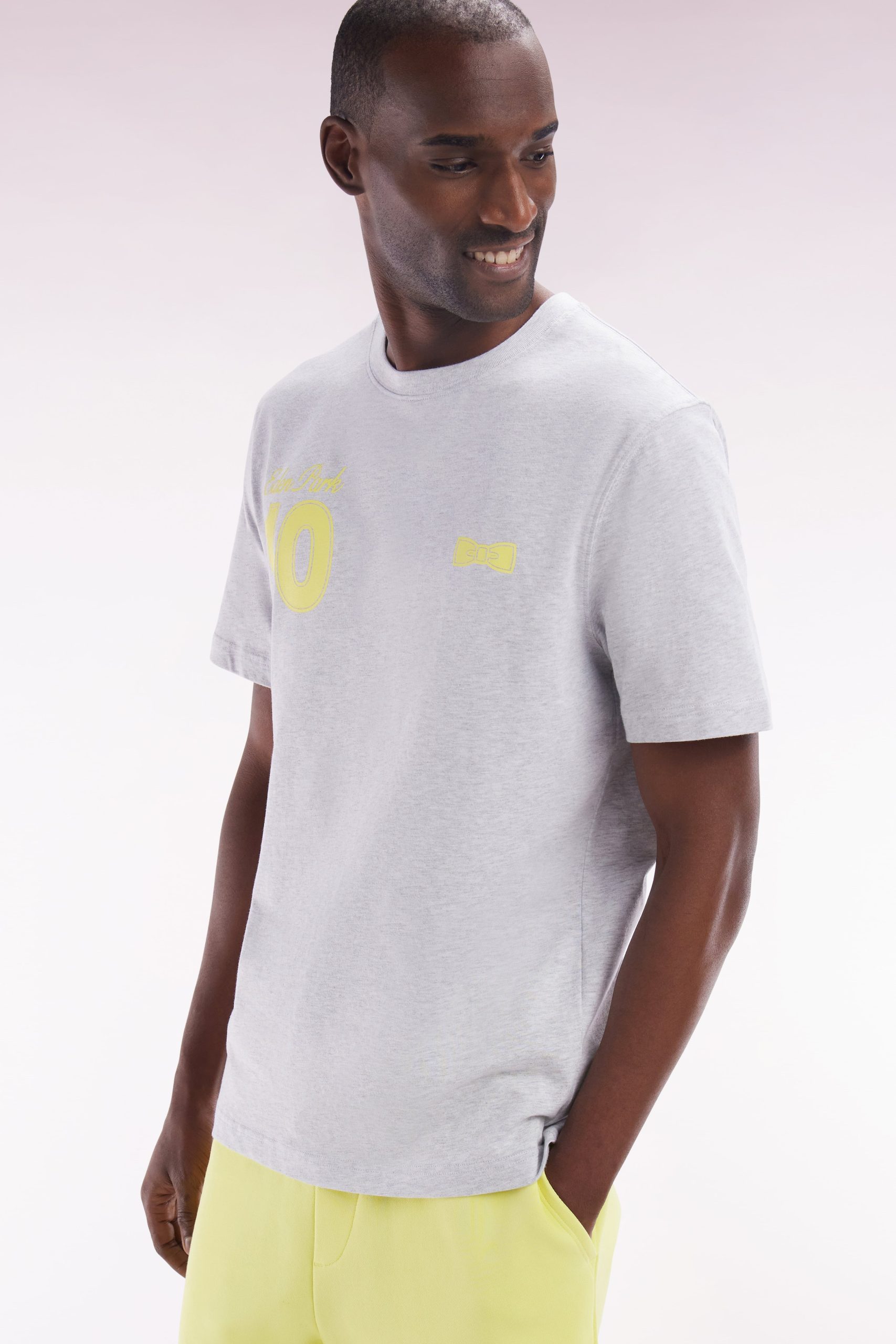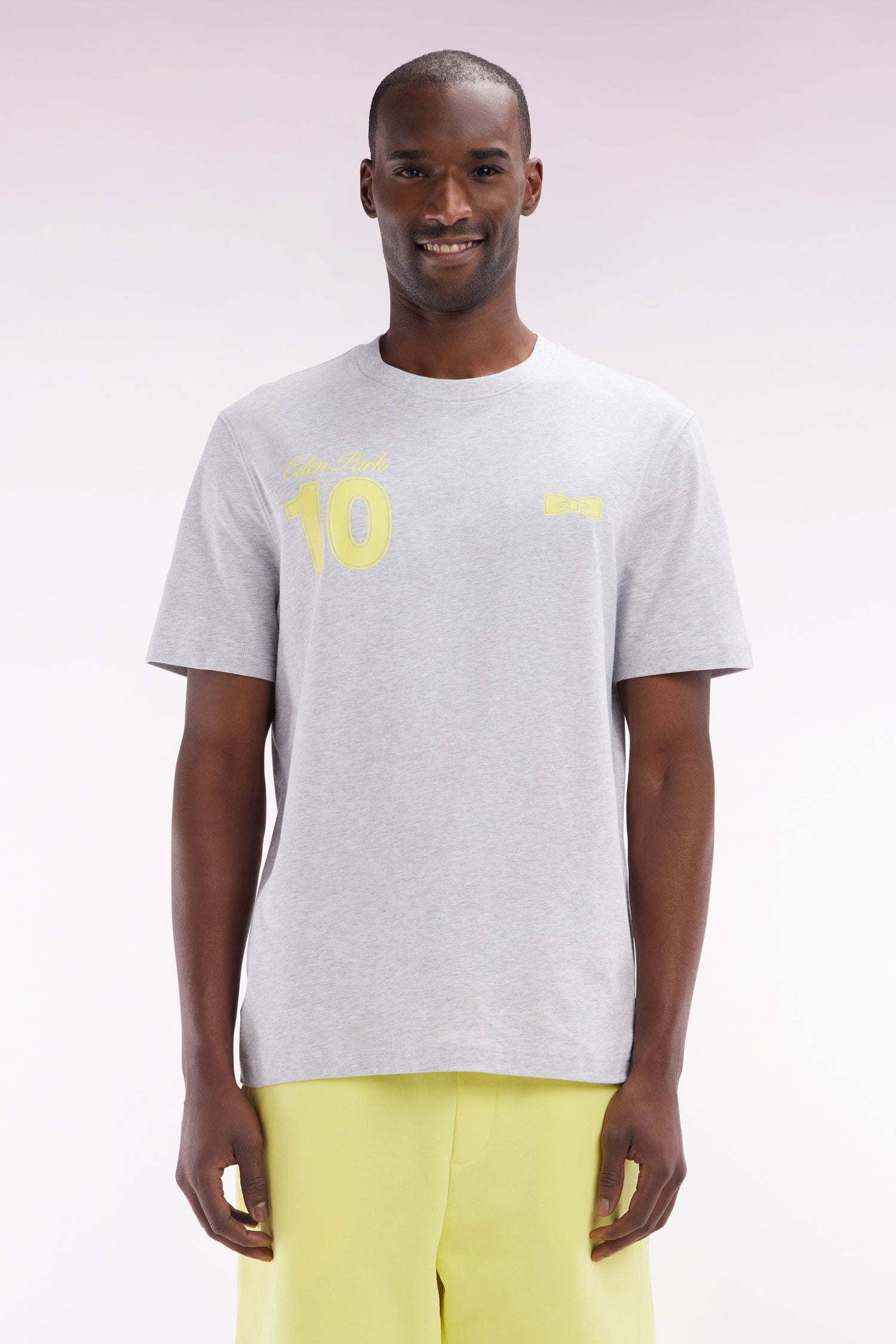 Hommage au célèbre maillot numéro 10 porté par Franck Mesnel, fondateur de la Maison Eden Park, ce T-shirt en coton doux se distingue par son imprimé 10 sur l’avant et dans le dos et l’emblématique nœud papillon Eden Park sur la poitrine. Décliné en plusieurs coloris, c’est un modèle iconique et collector pour les jeunes passionnés de mode comme de rugby.