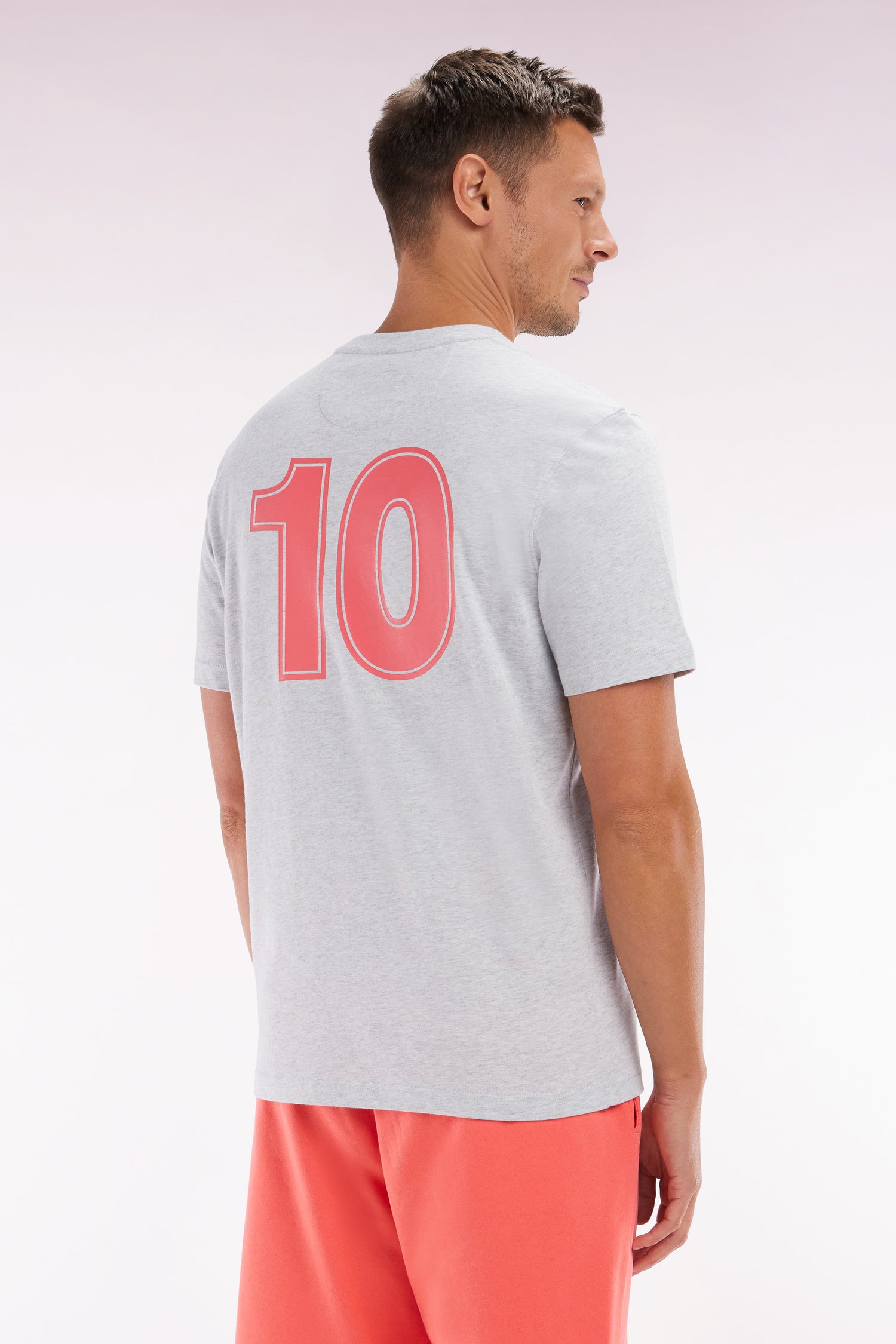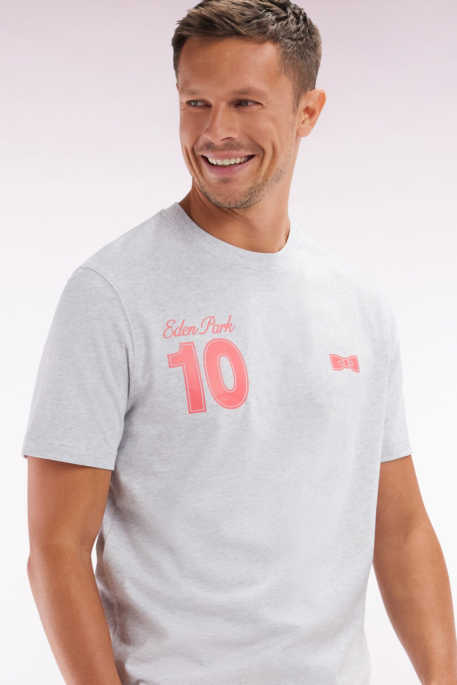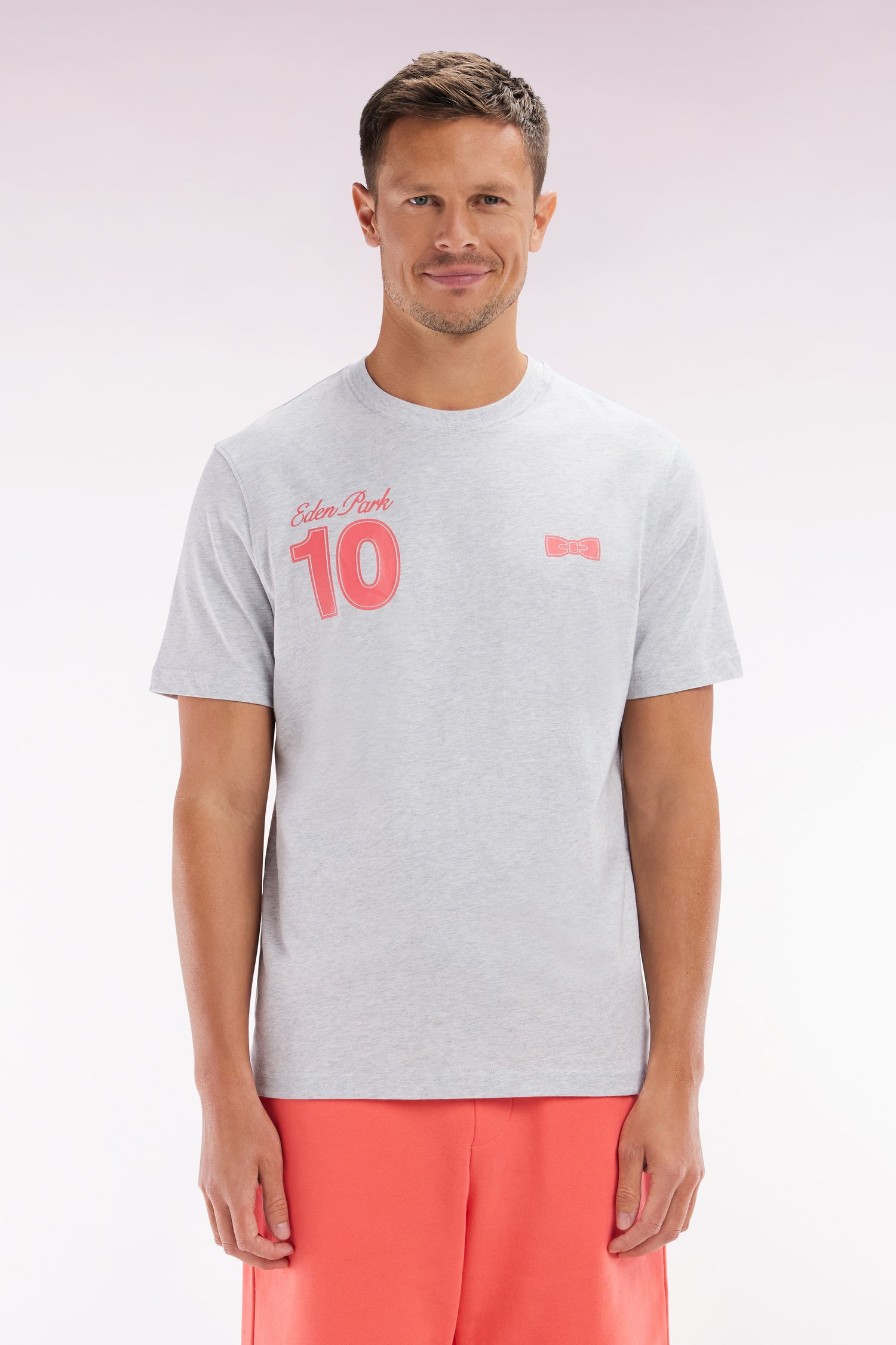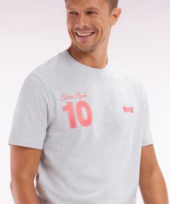Hommage au célèbre maillot numéro 10 porté par Franck Mesnel, fondateur de la Maison Eden Park, ce T-shirt en coton doux se distingue par son imprimé 10 sur l’avant et dans le dos et l’emblématique nœud papillon Eden Park sur la poitrine. Décliné en plusieurs coloris, c’est un modèle iconique et collector pour les jeunes passionnés de mode comme de rugby.