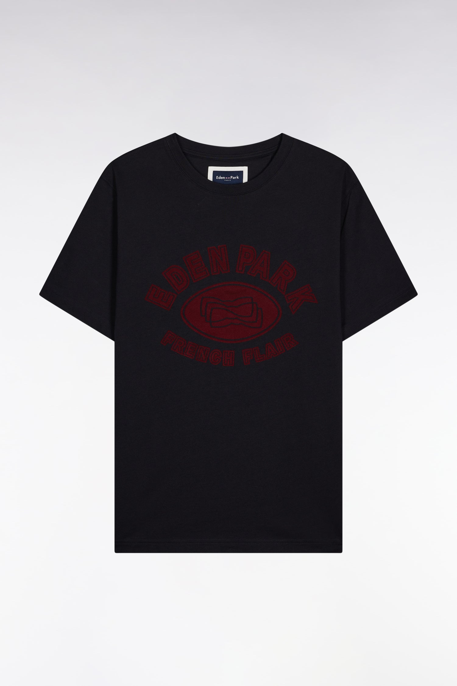 Avec son inscription effet velours placée sur le devant et son badge signature au dos, ce T-shirt à manches courtes incarne pleinement l’esprit French Flair de notre maison française. Confectionné avec soin dans un coton doux, il allie confort et allure graphique dans sa version noire ou blanche, facile à associer aux propositions de la saison. Un modèle emblématique du vestiaire Eden Park offert dans une coupe légèrement ample pour plus de confort