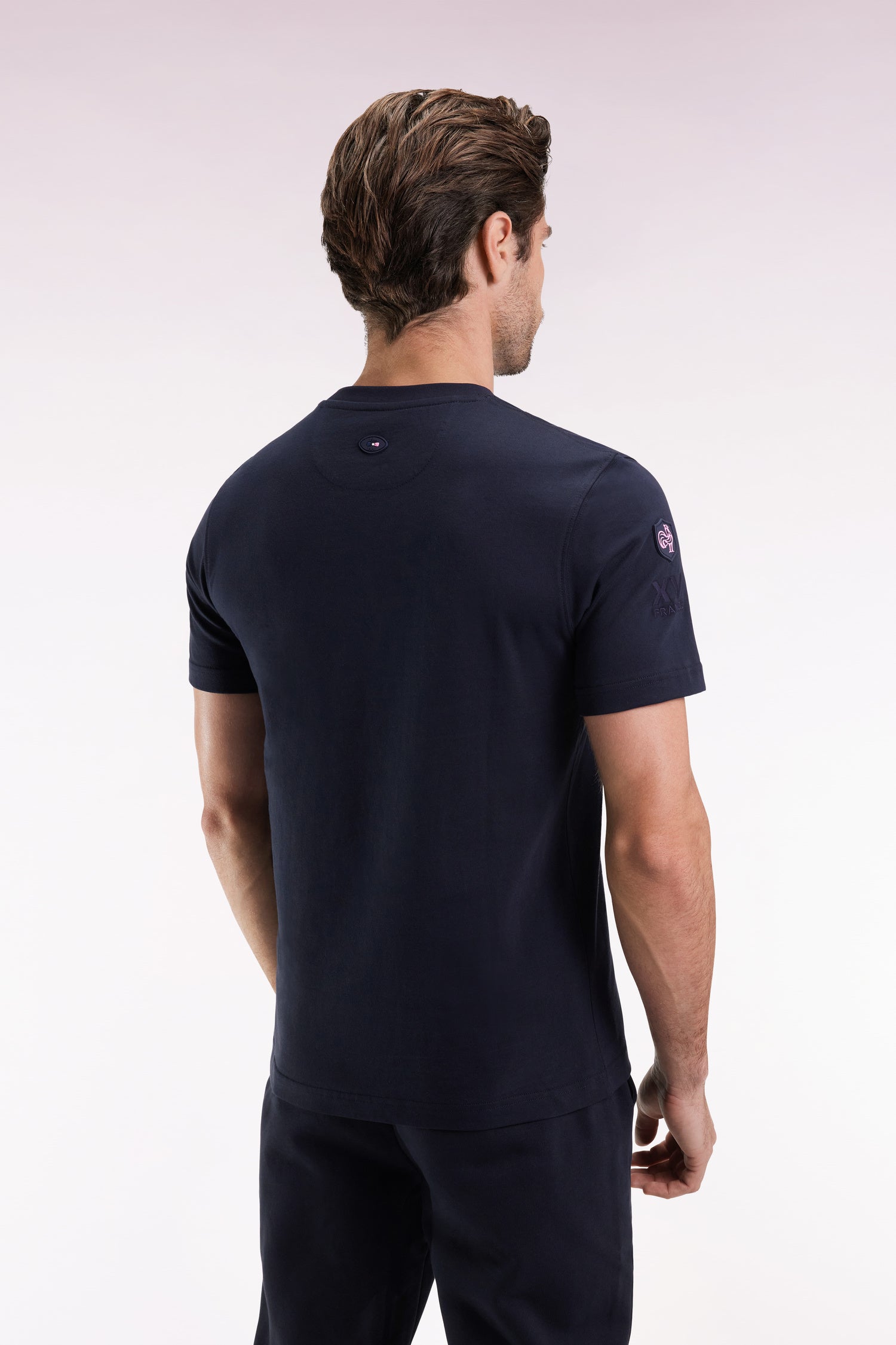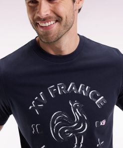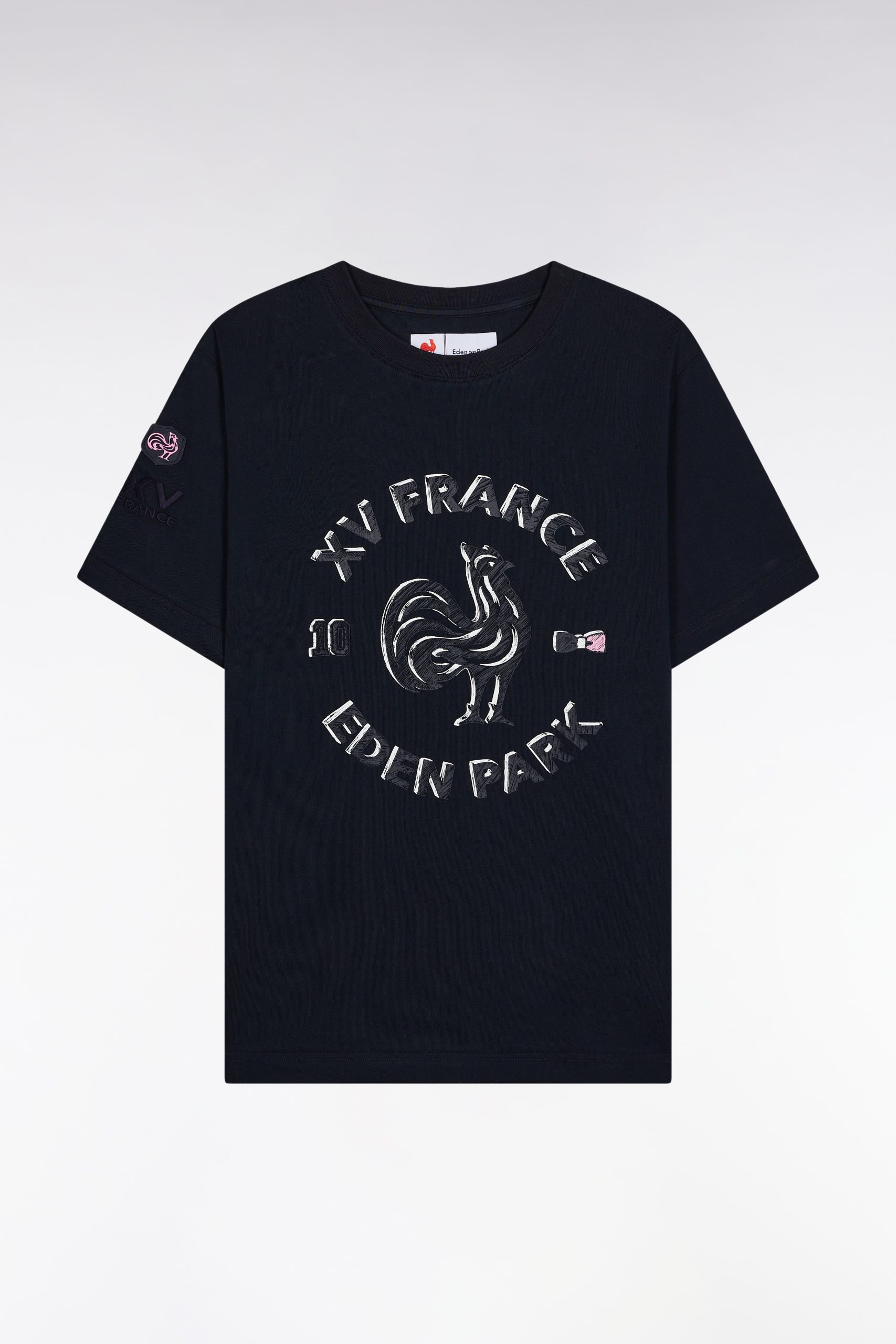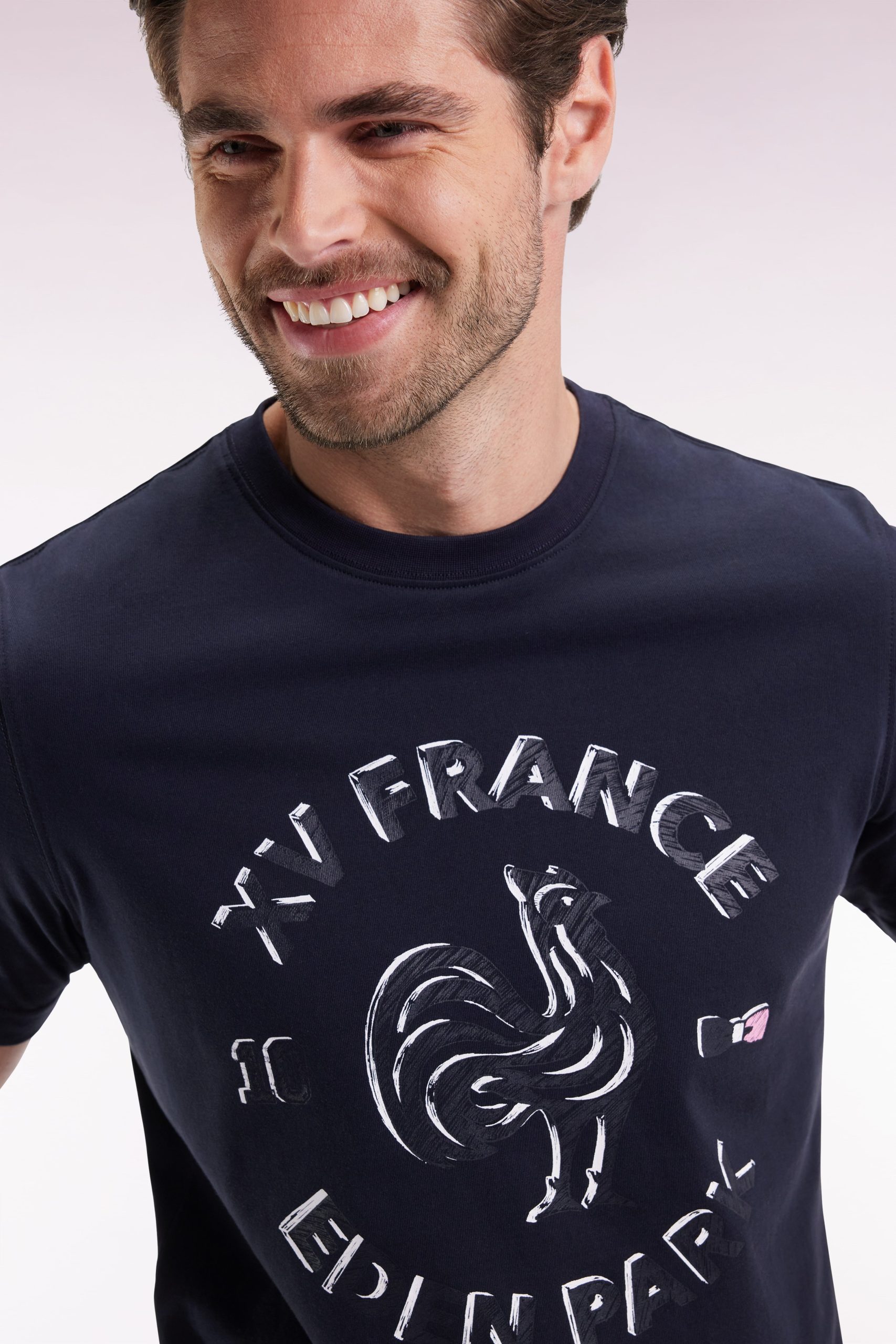 Ce T-shirt à manches courtes se distingue par son illustration signature du coq du XV de France stylisée et associé au nom de l’équipe masculine comme à celui de notre maison française. Tout y est : l’élégance tricolore, la passion du jeu et le clin d’œil aux racines rugby de notre maison. Sa coupe droite et son étoffe souple assurent un tombé impeccable tandis que ses finitions soignées soulignent le savoir-faire des ateliers Eden Park. Une pièce à forte personnalité pour vos moments de détente ou vos prochains match depuis le confort des tribunes !