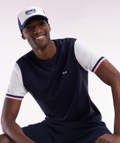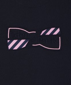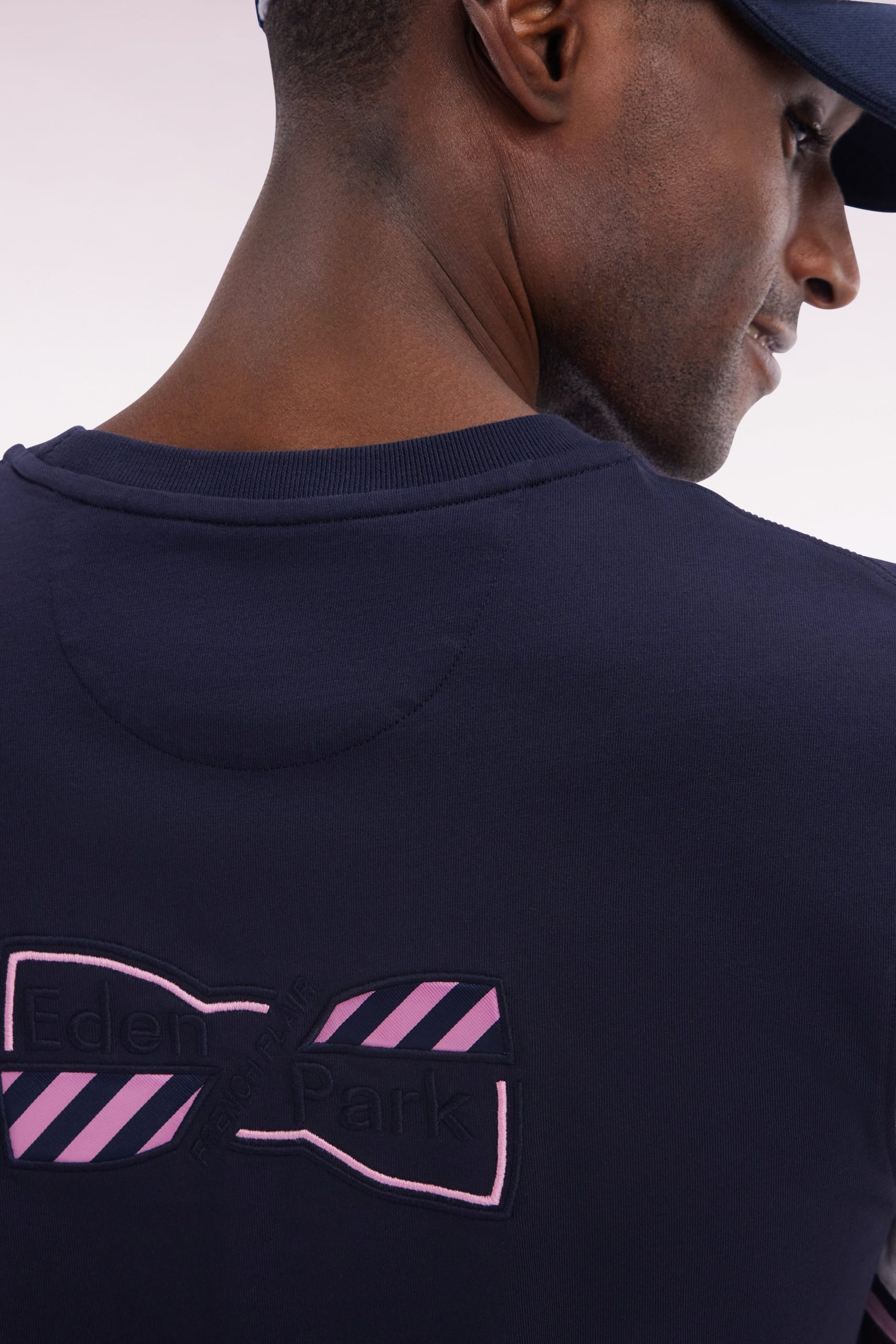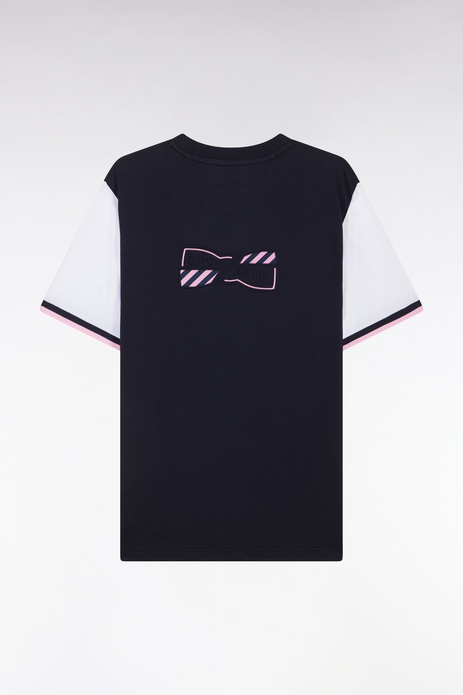 Eden Park Homme Men’s T-shirt Bicolore En Coton Blanc Broderie Nœud Papillon Coupe Droite