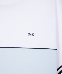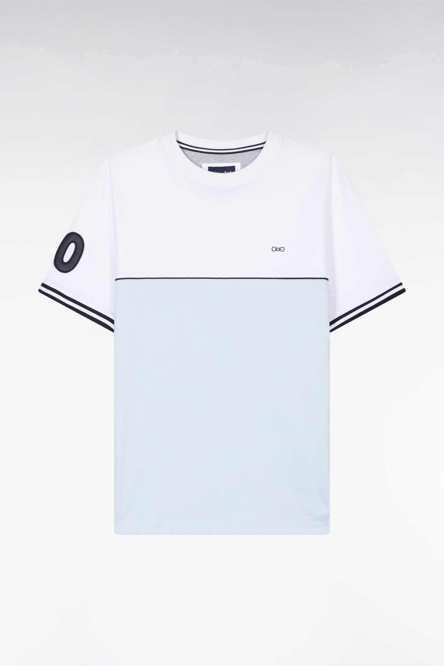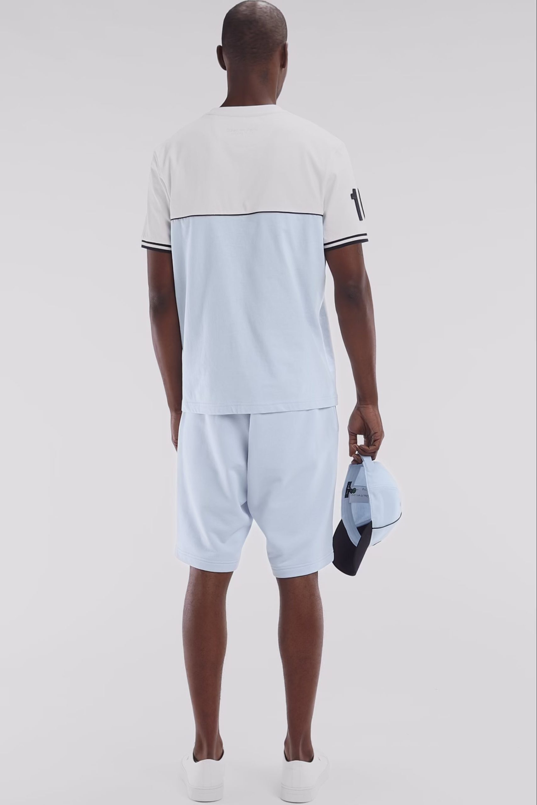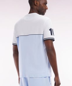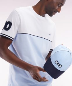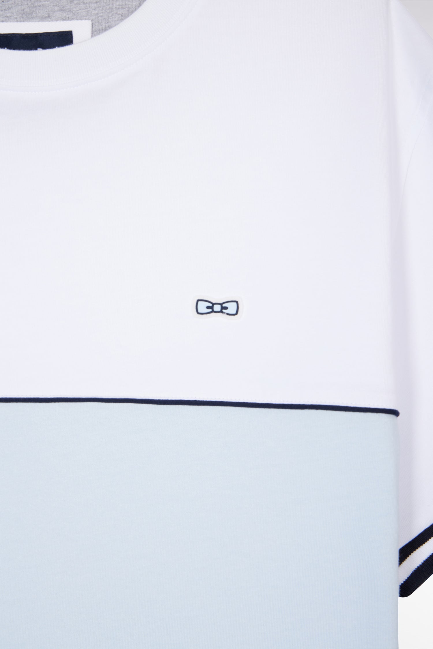 Ce T-shirt bicolore en jersey de coton se décline en 4 coloris, offrant une élégance sportive et graphique. Ses détails soignés : bords-côtes rayés, passepoil, broderie nœud papillon sur la poitrine et écusson numéro 10 sur la manche, en font une pièce phare du vestiaire masculin.