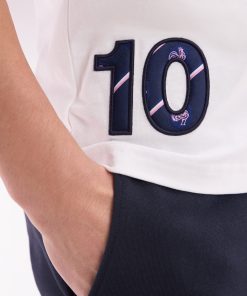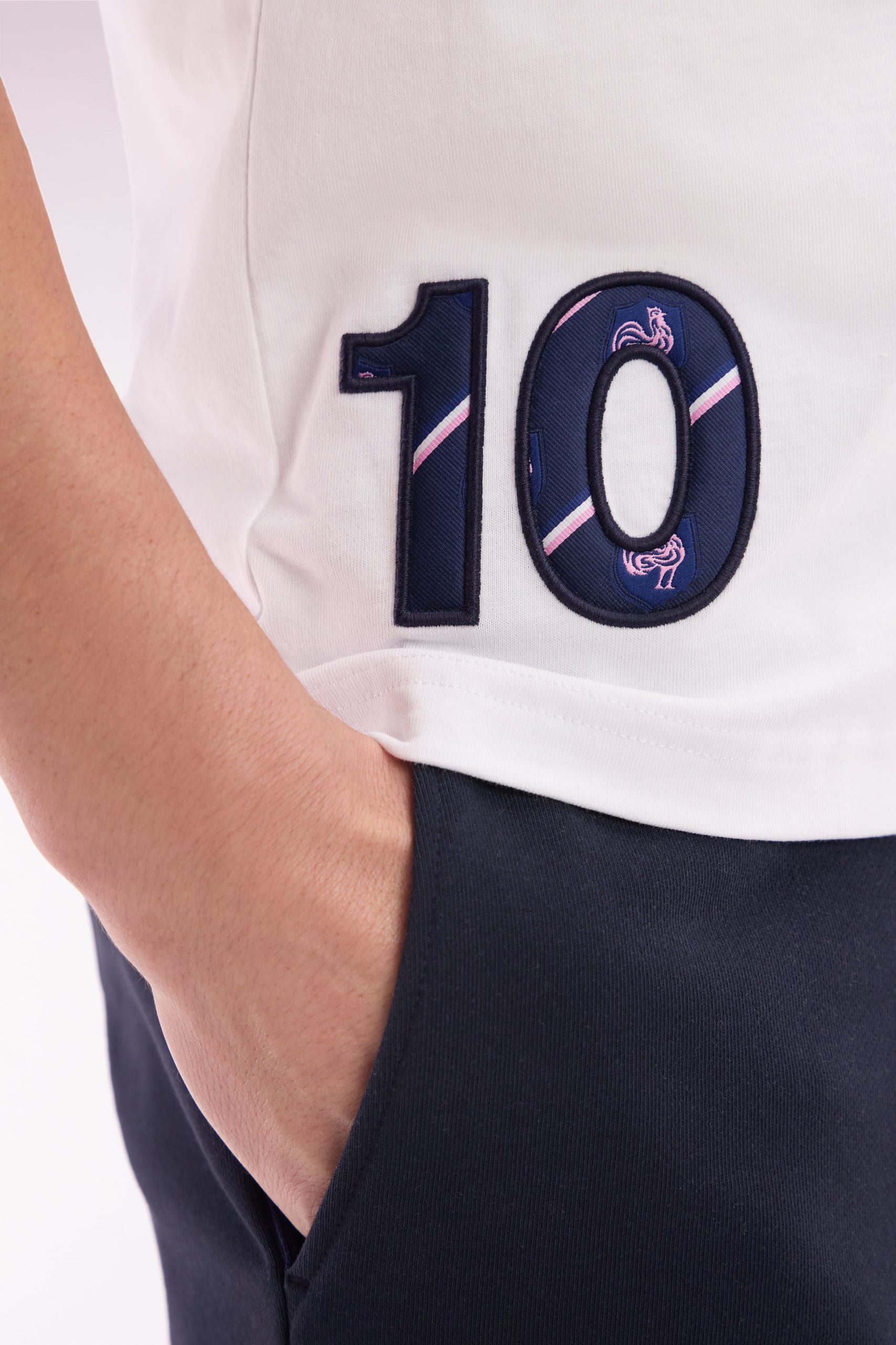 Portez fièrement les couleurs du rugby avec ce T-shirt iconique signé Eden Park et XV de France. Proposé en marine et rose ou en jersey de coton blanc et marine, il allie style graphique et héritage sportif. Son design bicolore audacieux est sublimé par des détails signatures, comme le numéro 10 floqué avec le coq tricolore ; le blason XV de France brodé au dos et ses bords-côtes tricolores en bordures de manches. Confectionné en jersey de coton premium, ce modèle collector est aussi confortable qu’élégant.