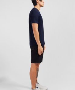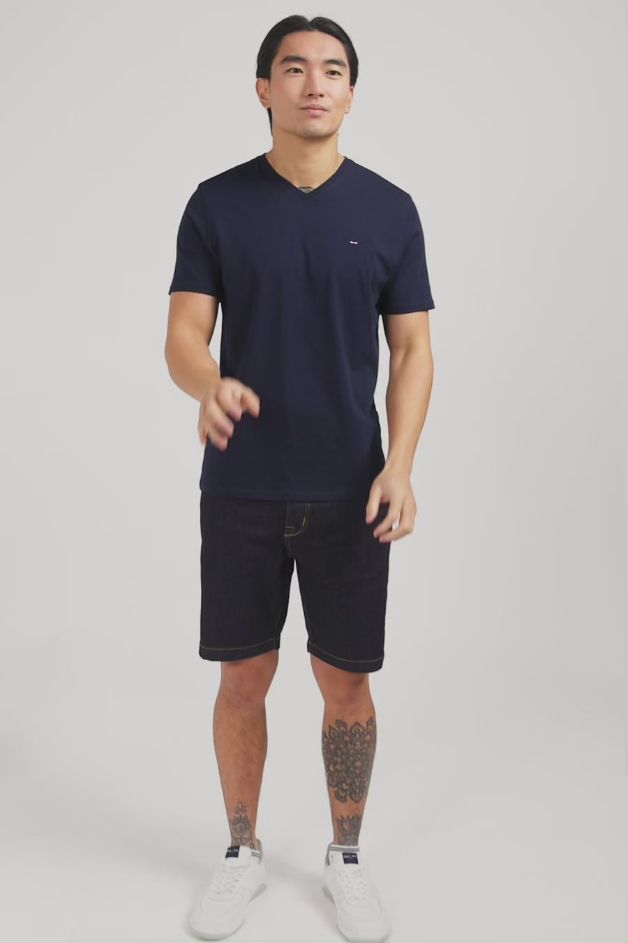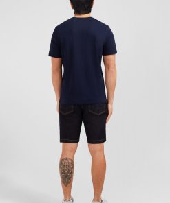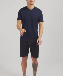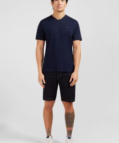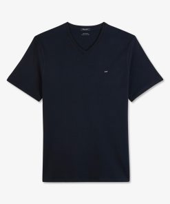 Eden Park Homme Men’s T-shirt Bleu Marine Col V À Manches Courtes