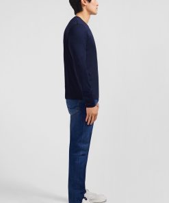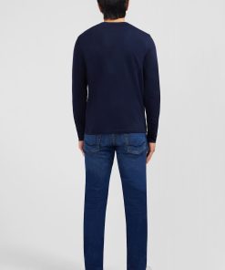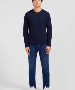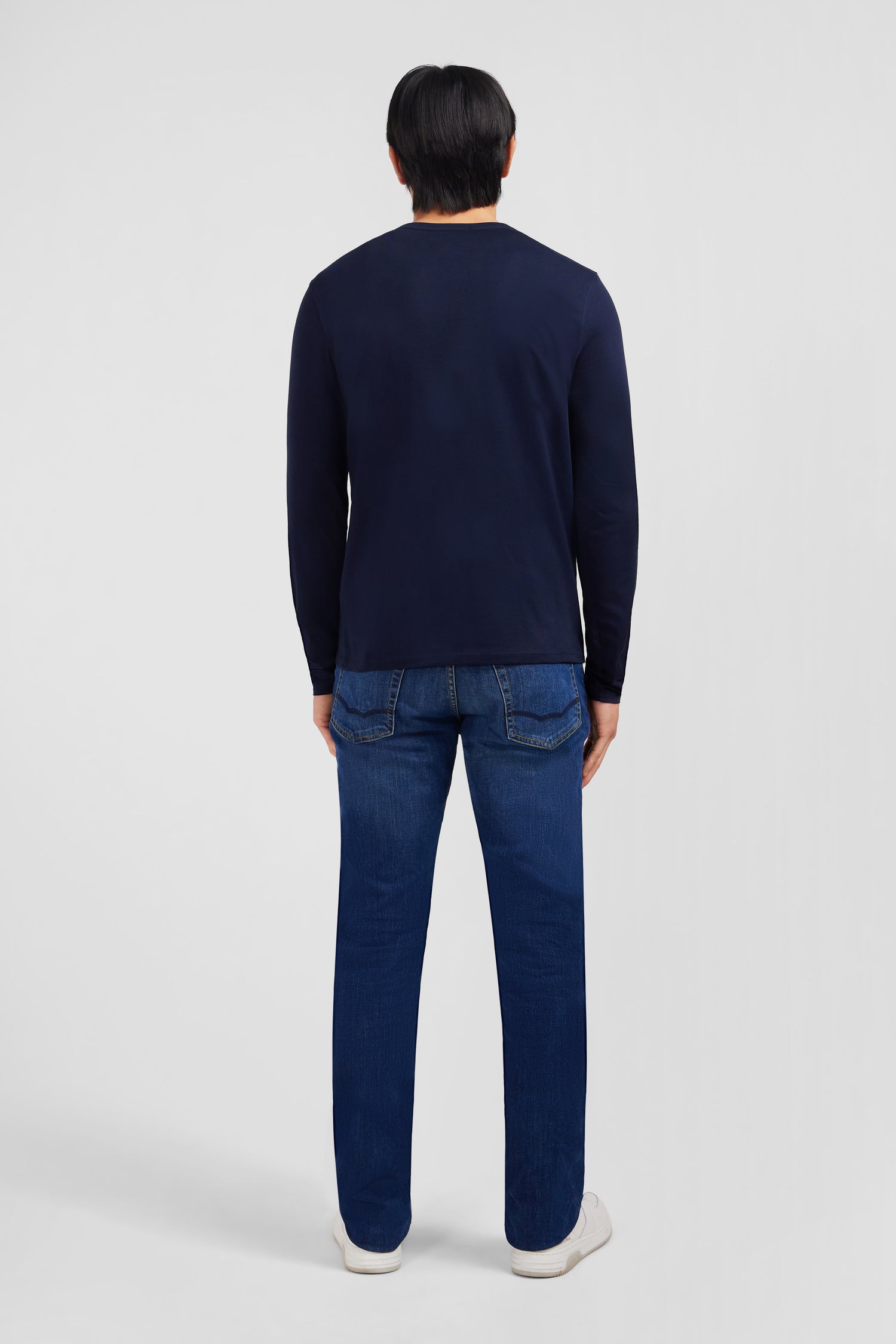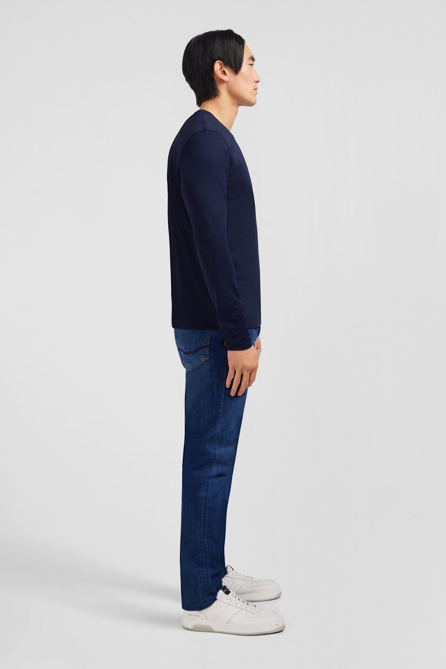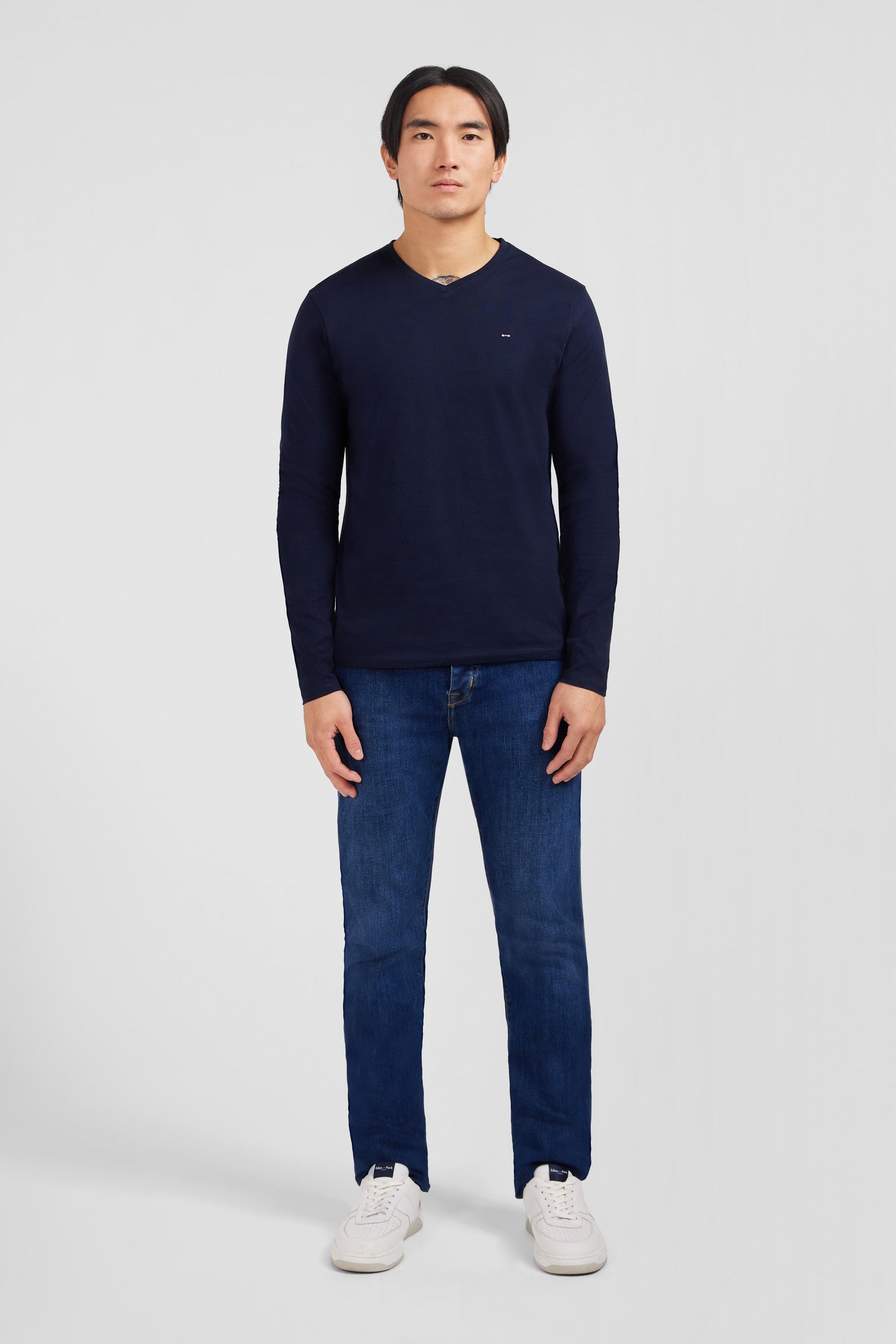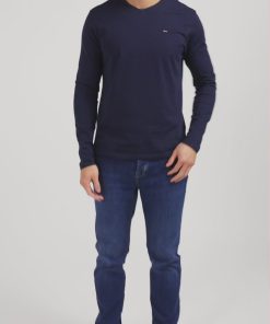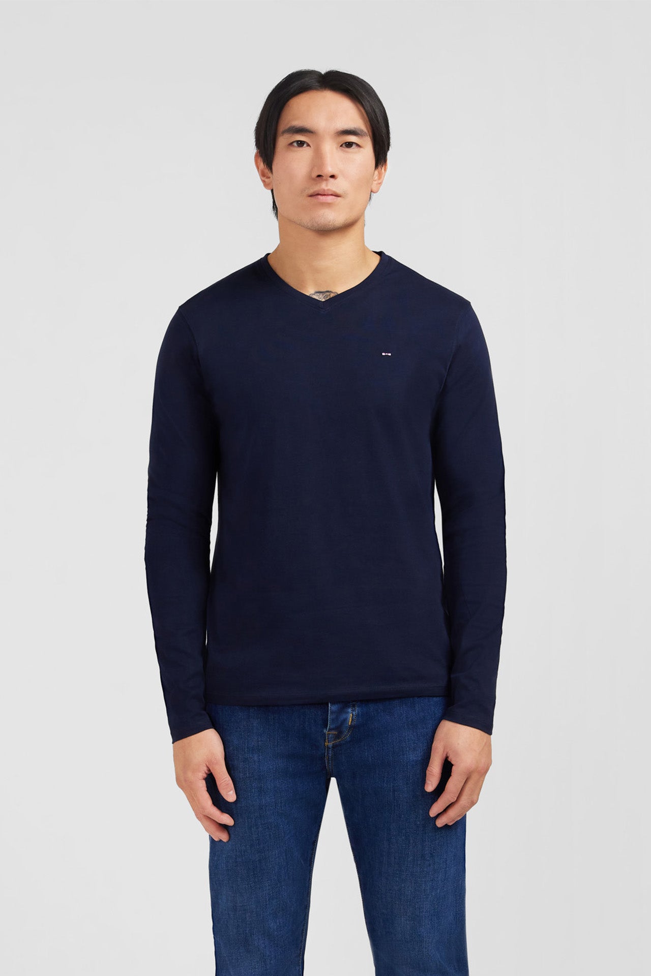Eden Park Homme Men’s T-shirt Bleu Marine Col V À Manches Longues