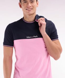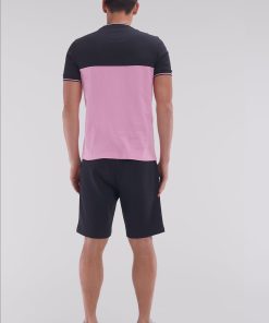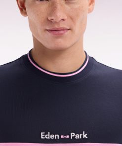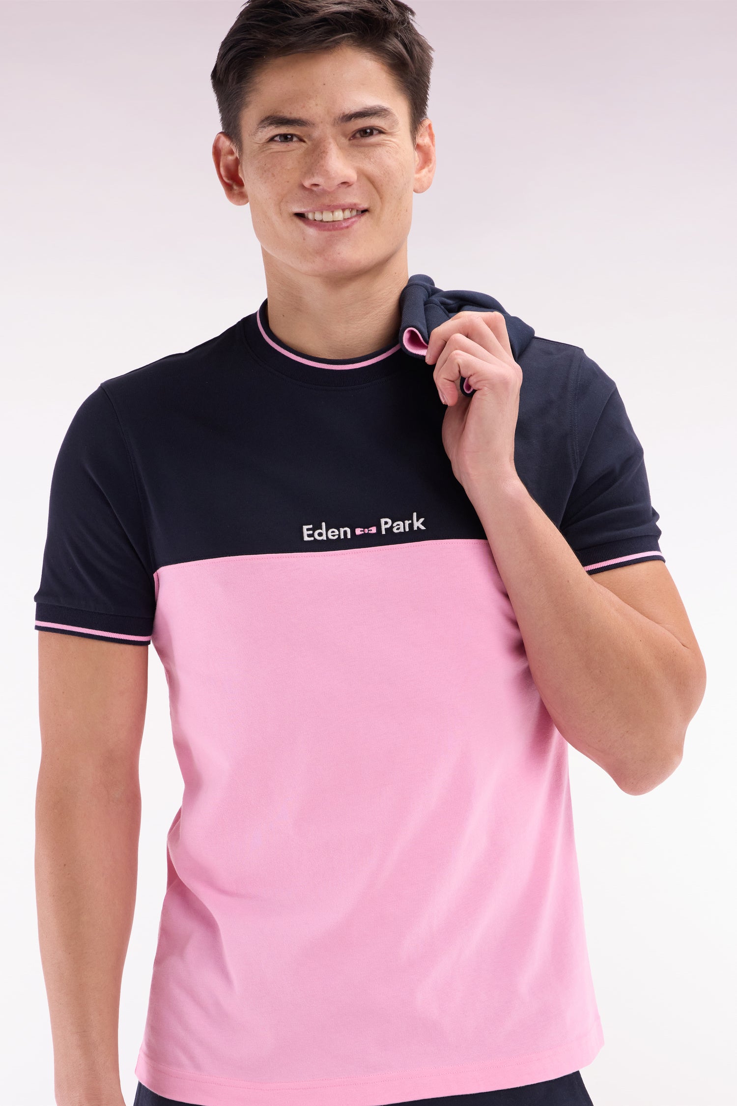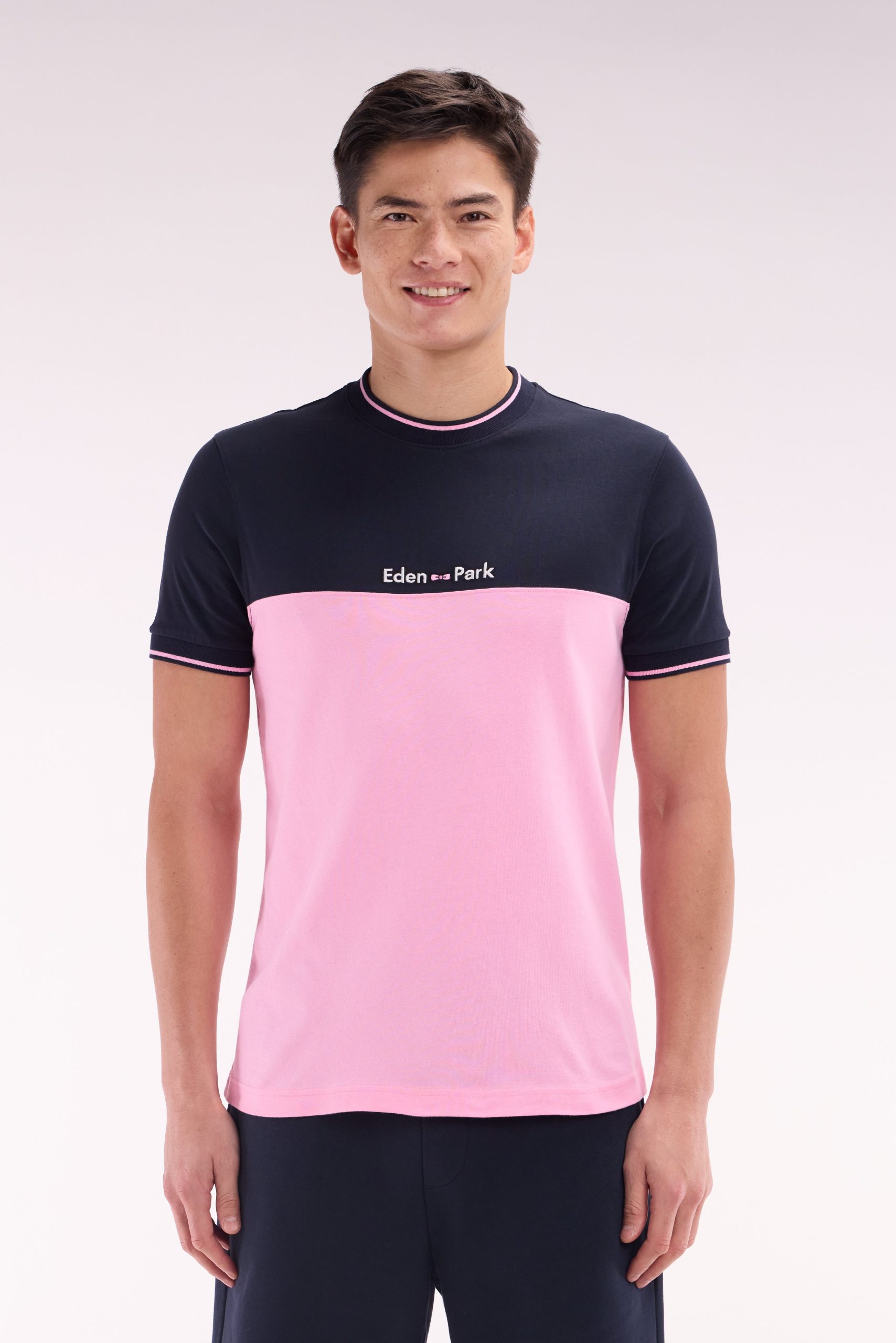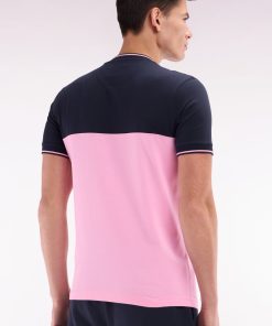 Ce T-shirt bicolore présente une broderie poitrine au nom de notre Maison, un détail qui s’ajoute à ses couleurs choisies dans nos codes emblématiques. Aux bordures de manches et à l’encolure, ce T-shirt en coton présente des bords-côtes subtilement rayés pour une touche sport-chic.