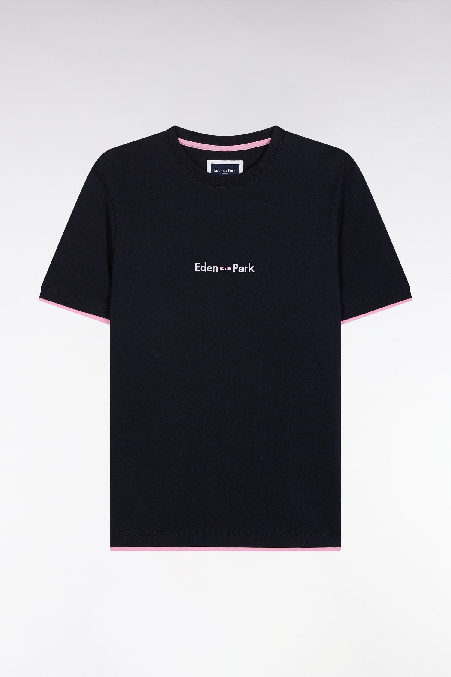 Les finitions doubles aux ourlets de manches et en bas de pièce apportent à ce T-shirt homme un effet de superposition à la fois tendance et original. Sur la poitrine, ce T-shirt en jersey coton à manches courtes se dote d’une broderie Eden Park signature.