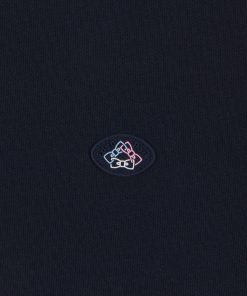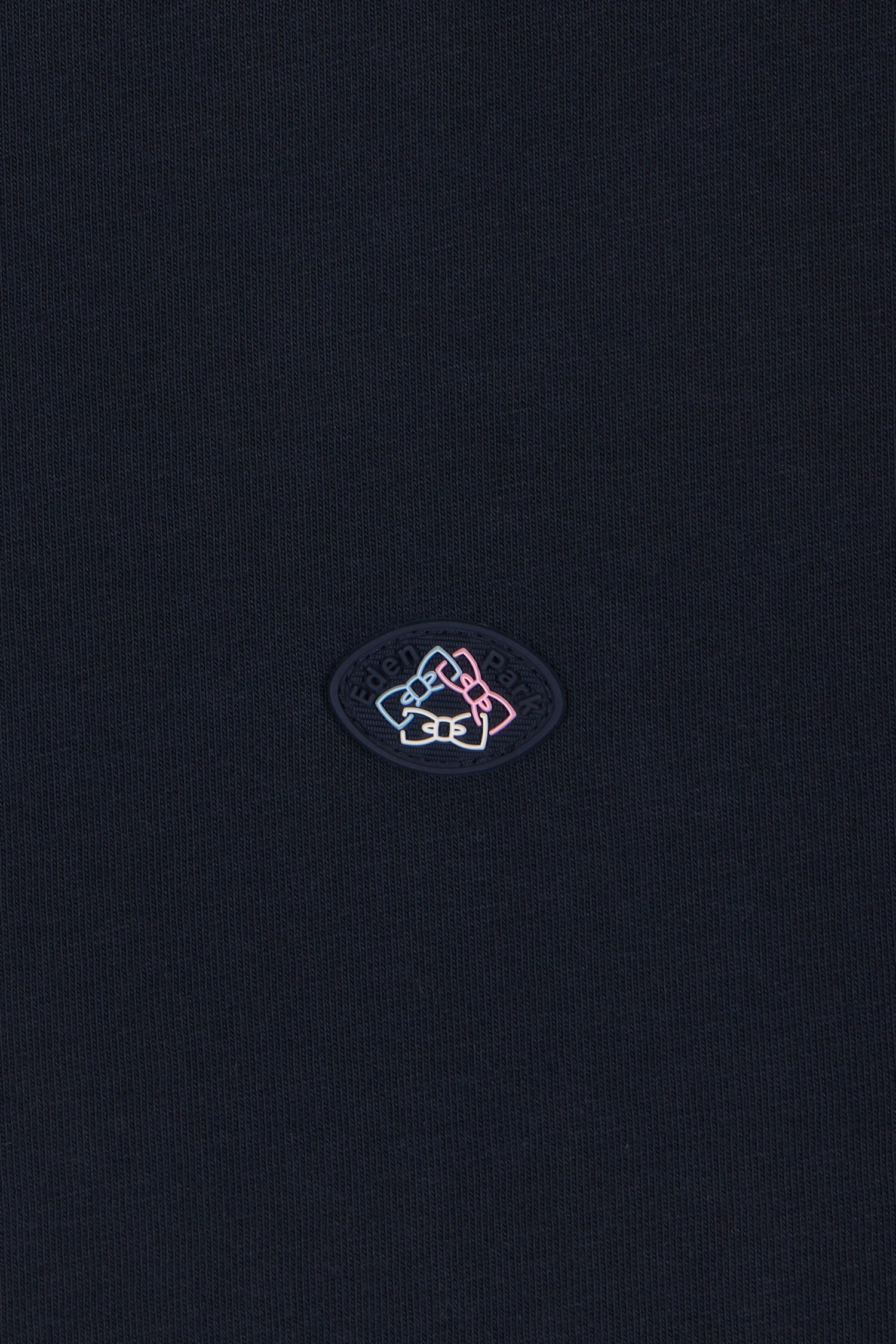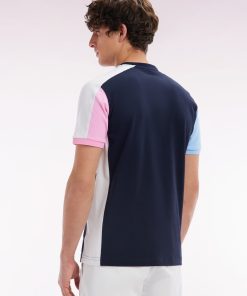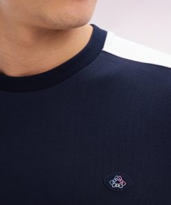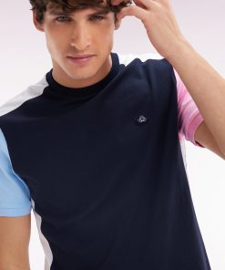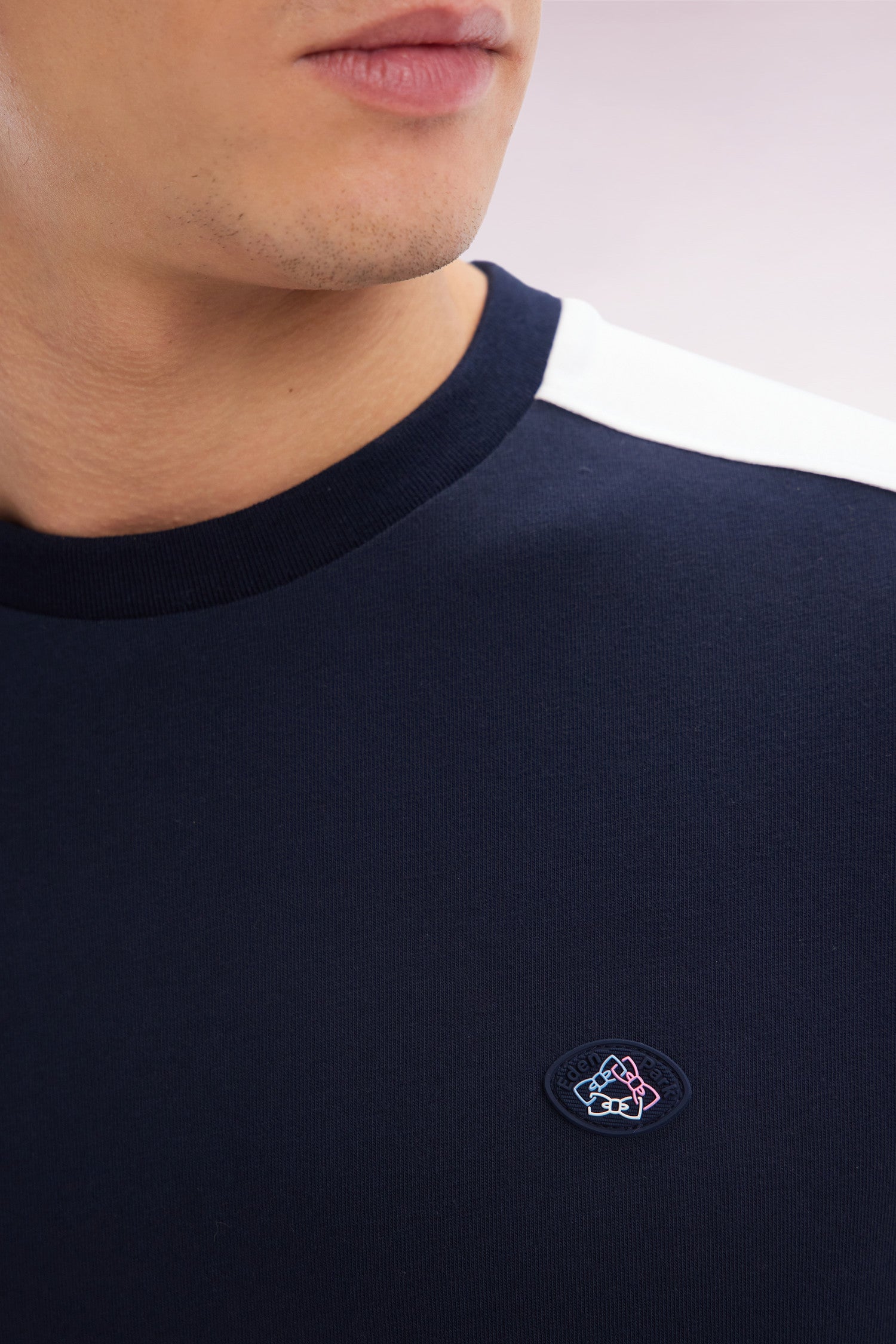 Ce T-shirt colorblock, emblématique des collections de la Maison, se décline sur une base marine ou blanche, agrémentée de détails bleu, blanc et rose. Son badge en silicône, en forme de ballon de rugby orné de notre nœud papillon, et ses découpes graphiques apportent une touche lumineuse et dynamique à la silhouette masculine.