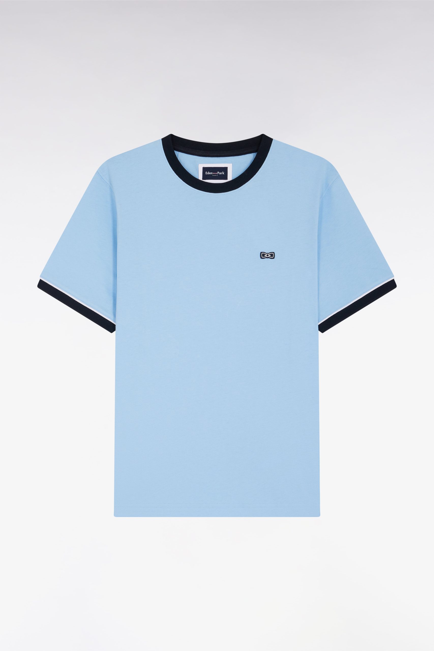 Eden Park Homme Men’s T-shirt En Coton Ciel Broderie Et Badge Nœud Papillon Coupe Droite