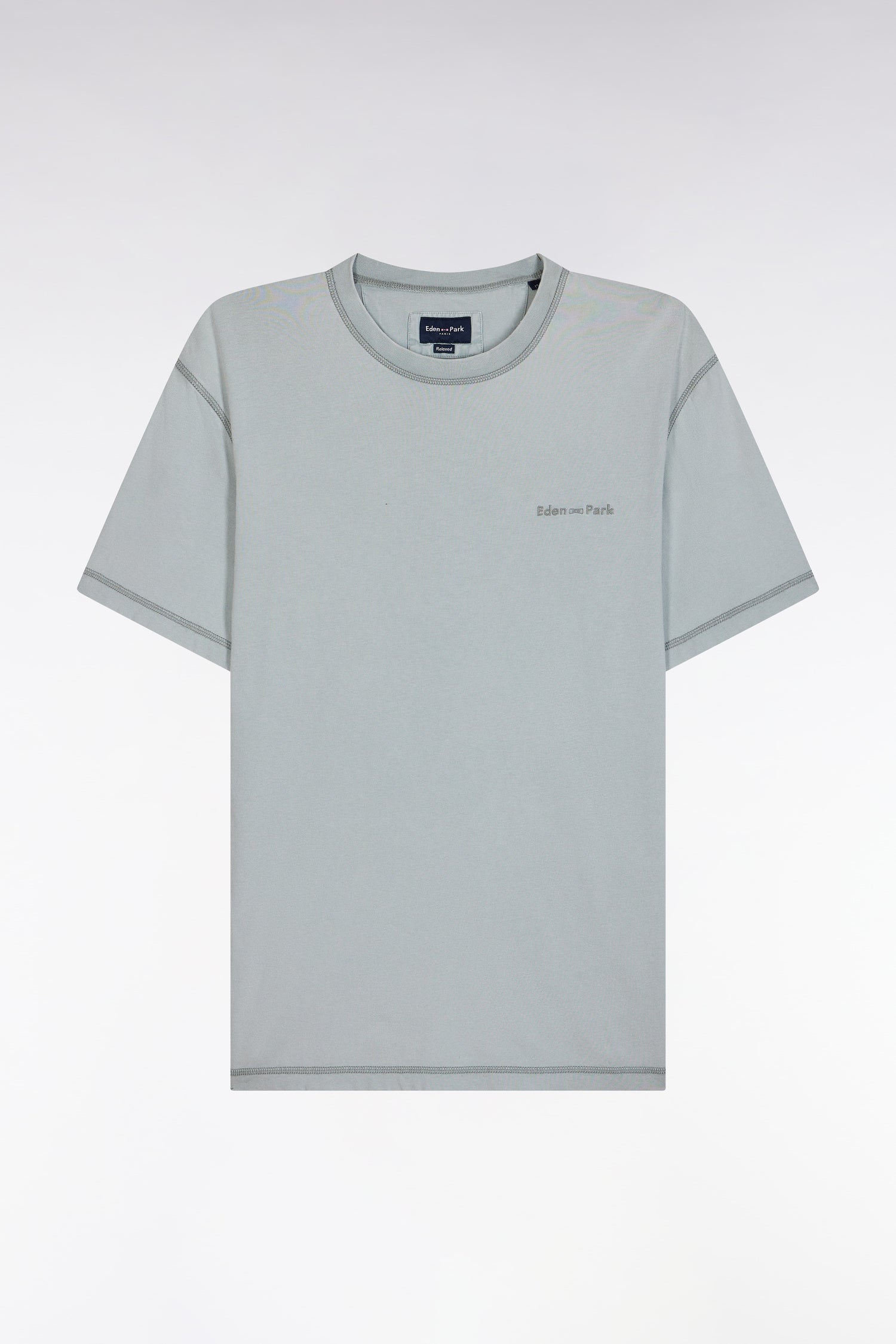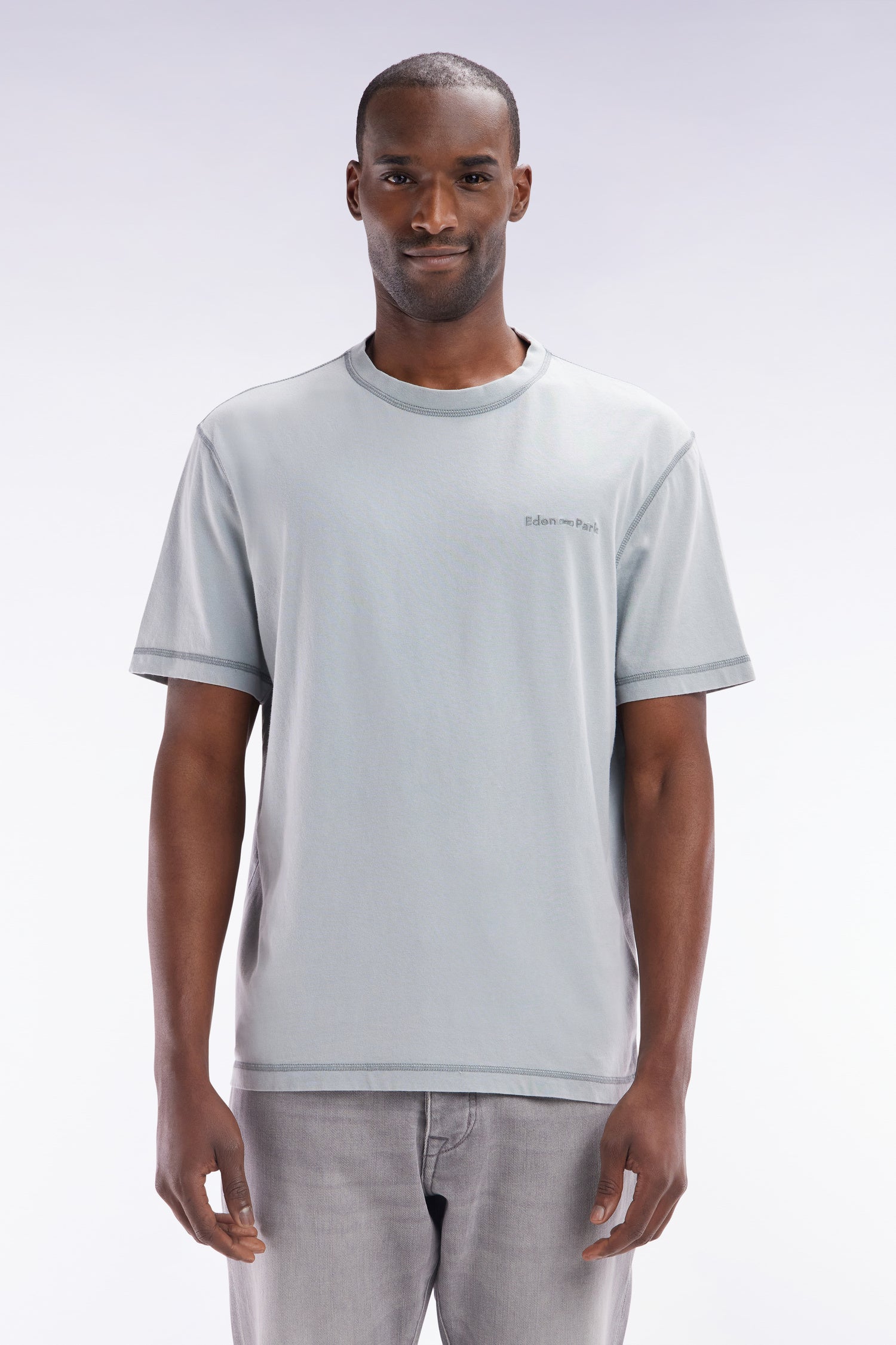Eden Park Homme Men’s T-shirt En Coton Gris Moyen Surteint Coupe Décontractée