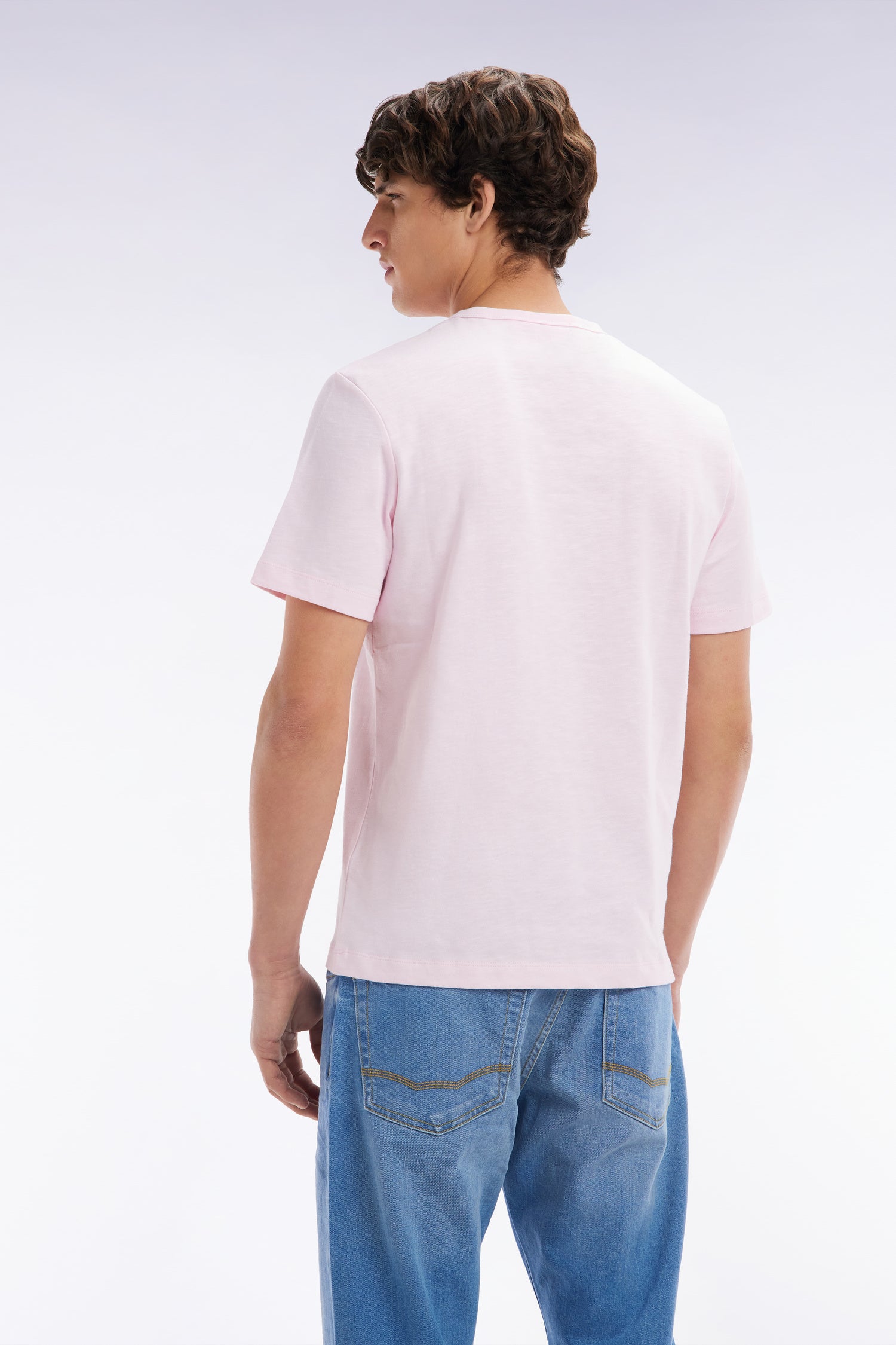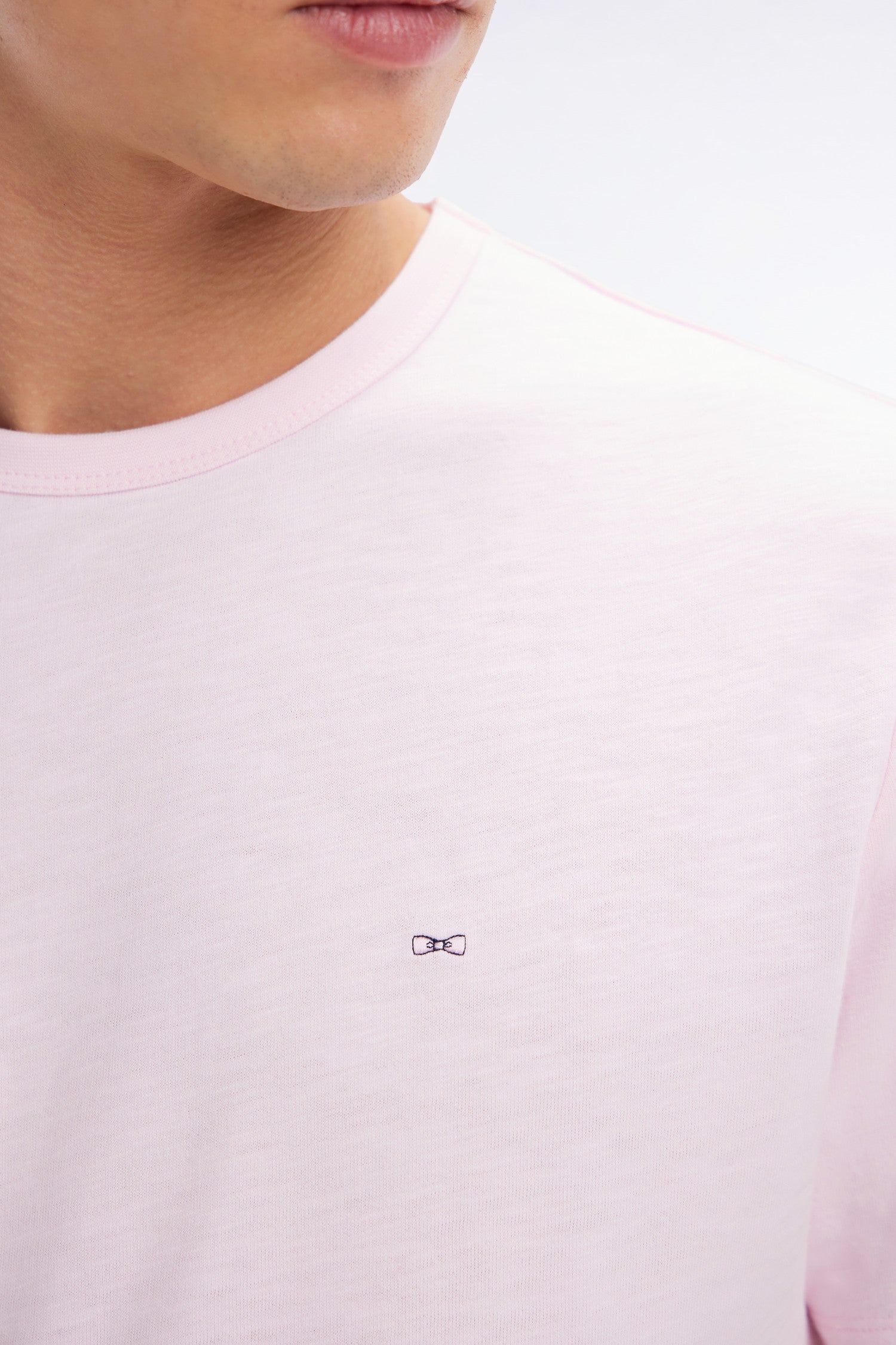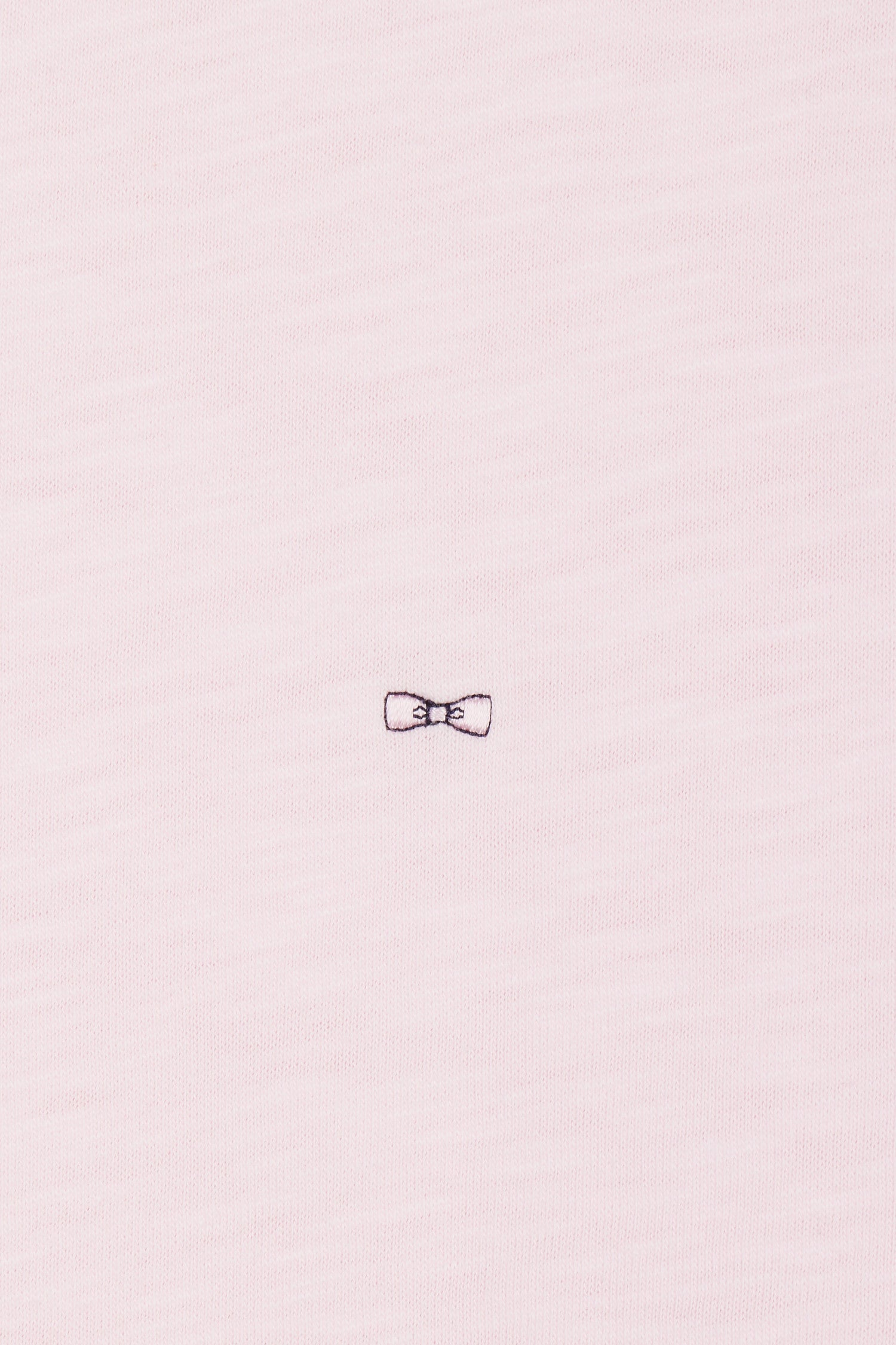 Ce T-shirt en jersey de coton slub allie simplicité, légèreté et confort. Sa finition col en bords-côtes et son nœud papillon brodé lui apportent une touche élégante. Disponible dans une palette de 7 coloris, il s’adapte à toutes les envies pour un vestiaire estival polyvalent.