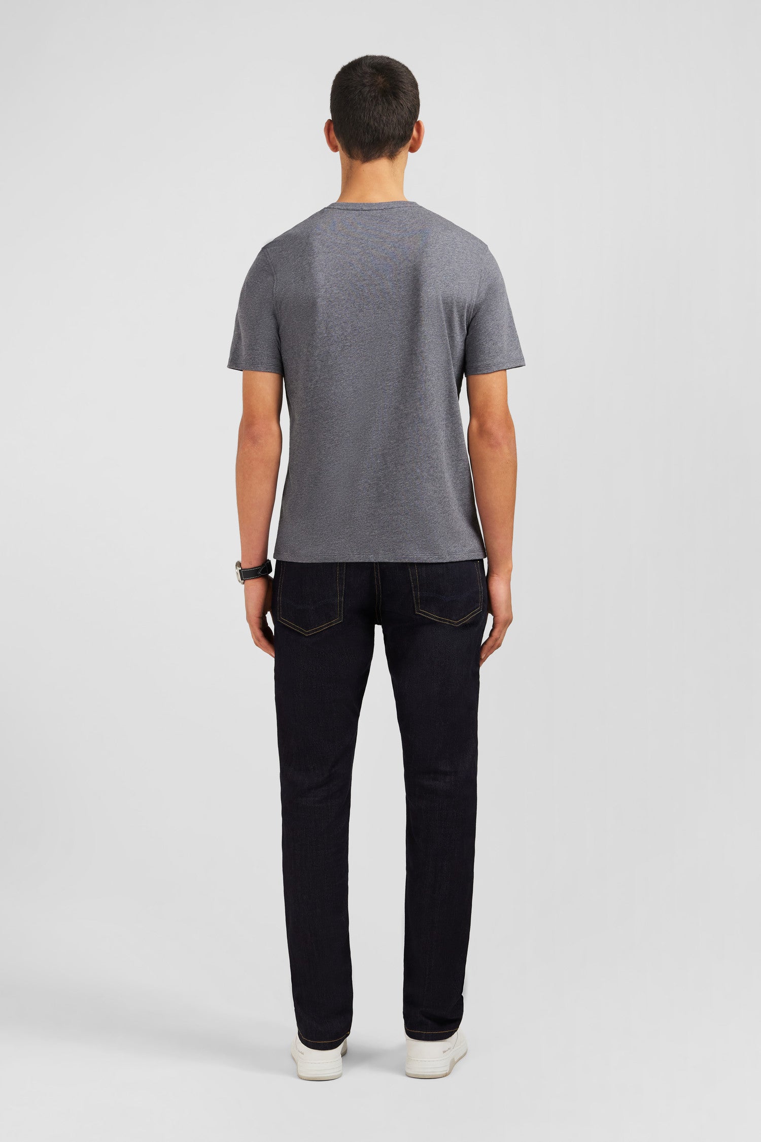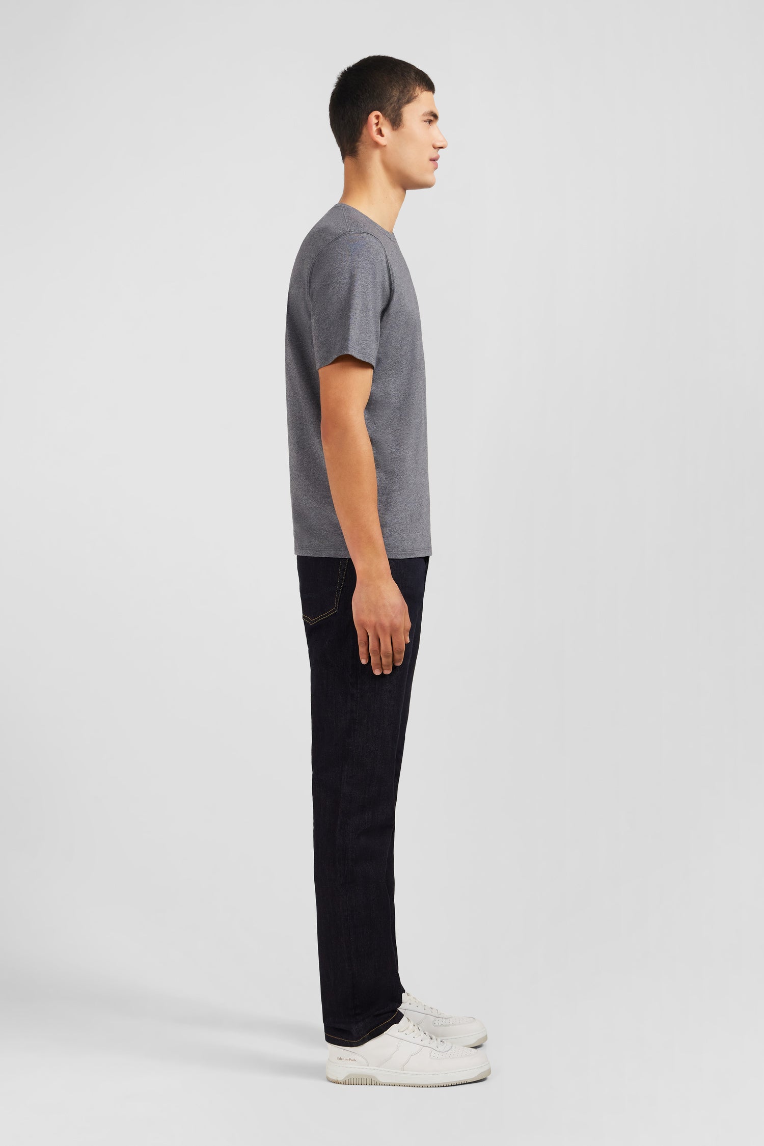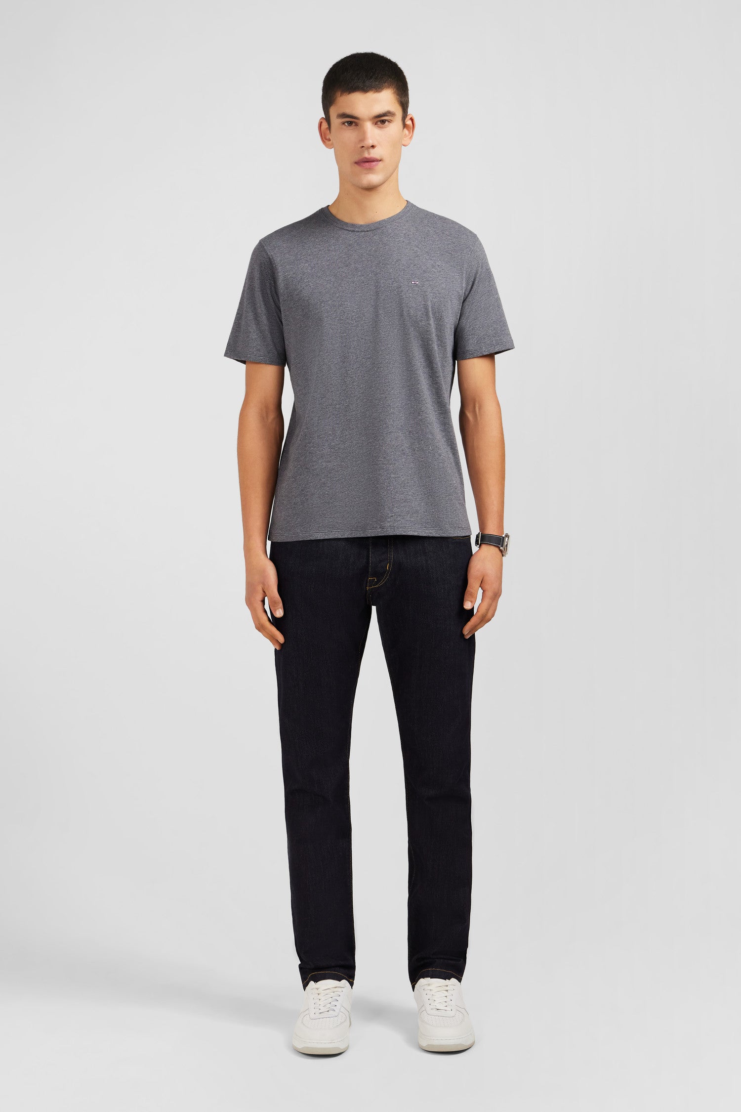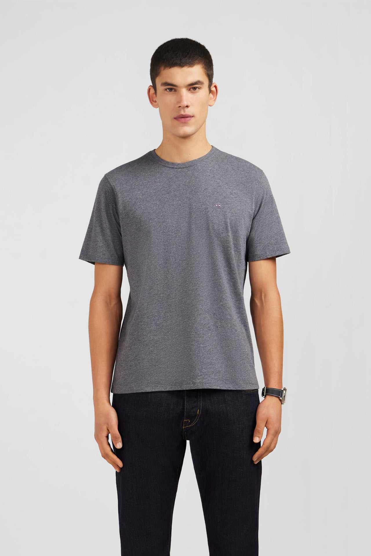 Eden Park Homme Men’s T-shirt Gris Col Rond À Manches Courtes