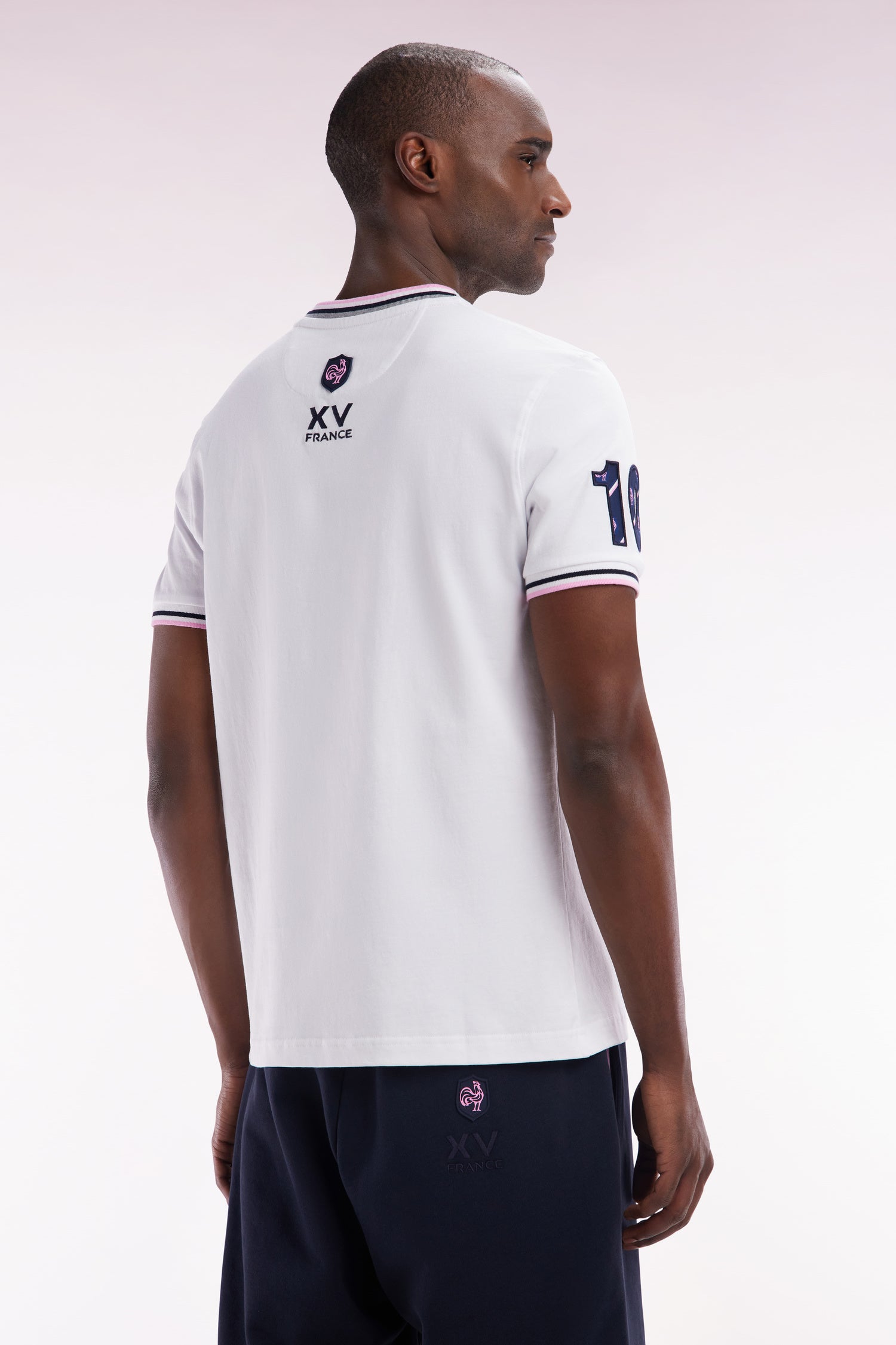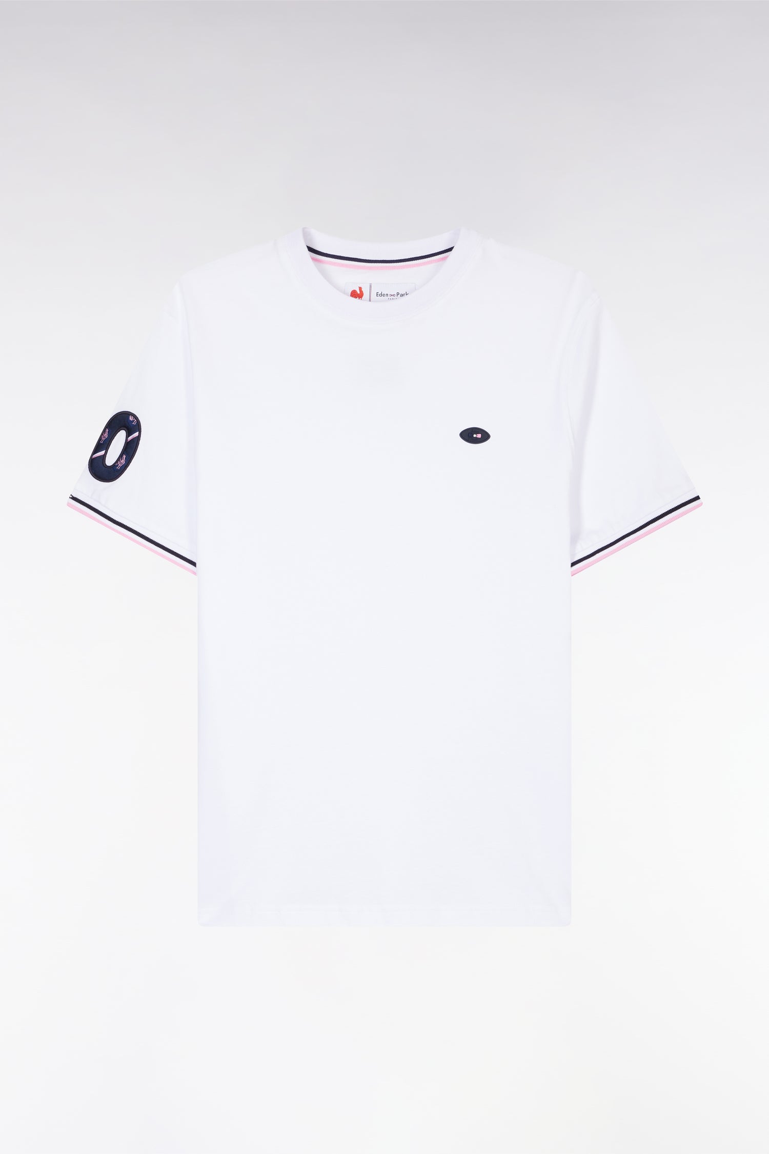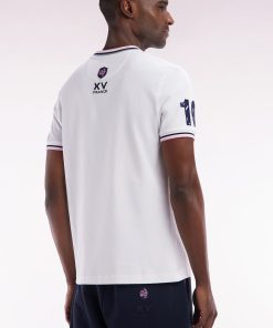 Eden Park Homme Men’s T-shirt Xv De France En Coton Blanc Broderie 10 Coupe Droite
