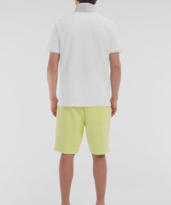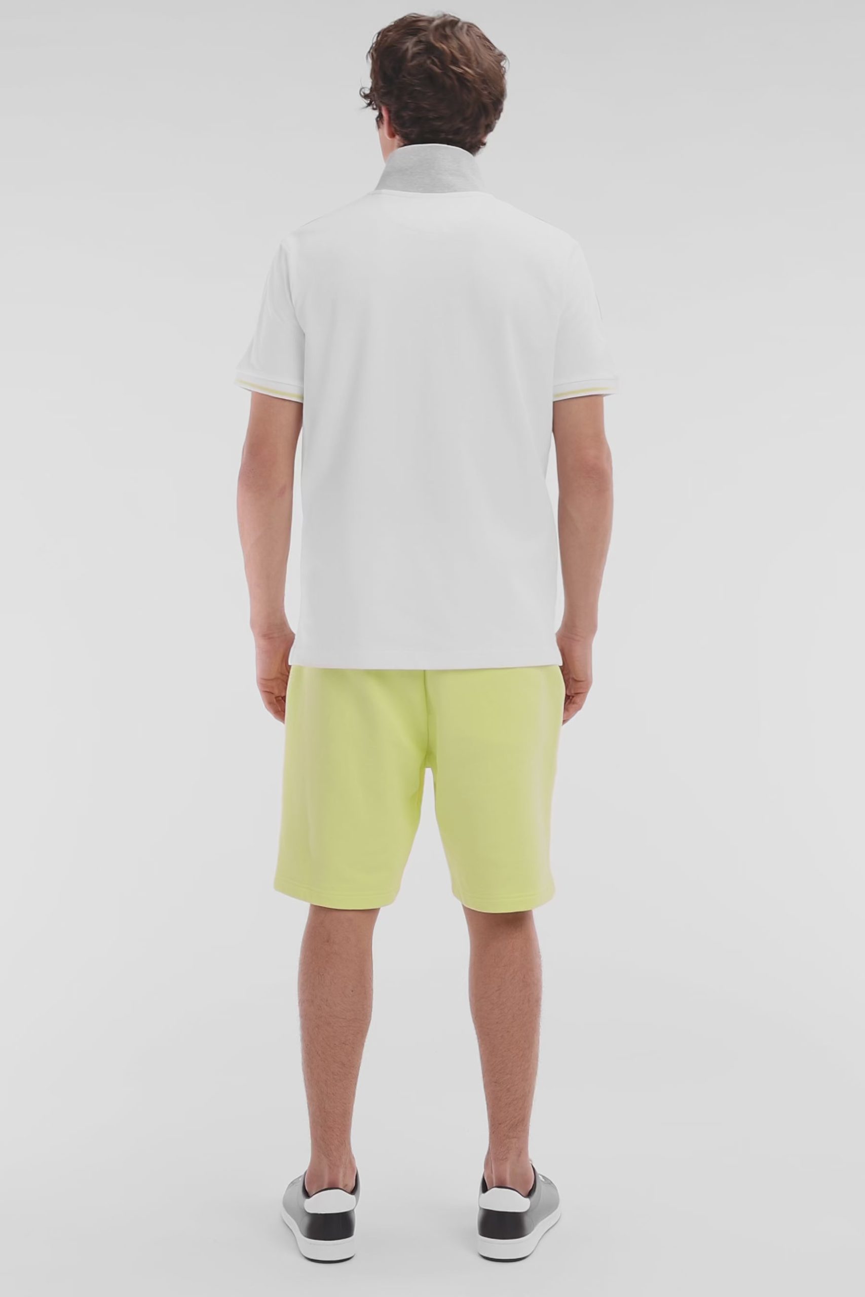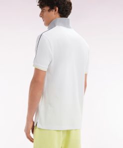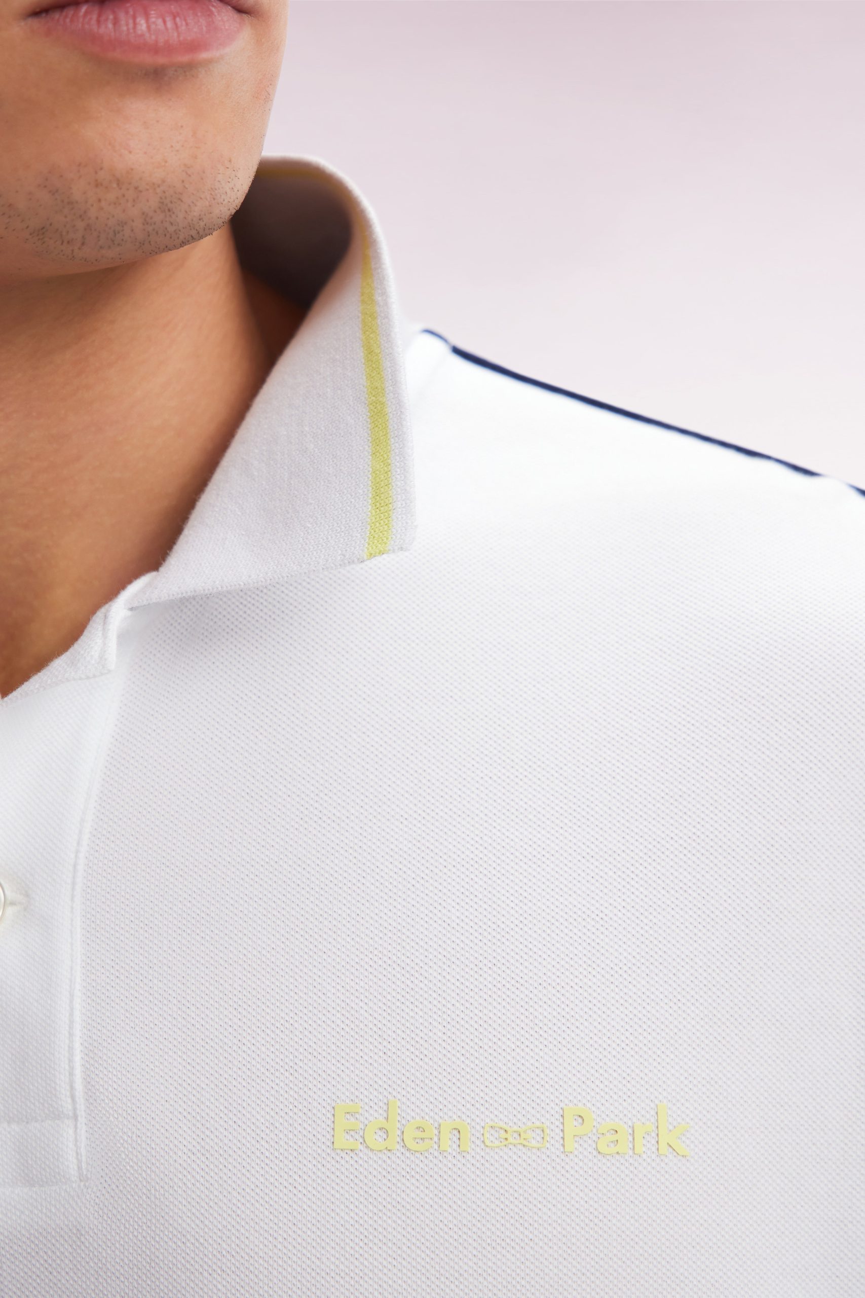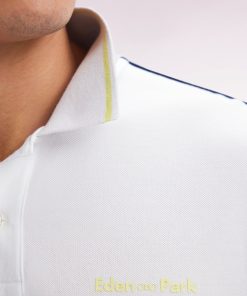 Ce polo masculin uni, décliné en blanc, ciel, gris et rose, adopte une coupe décontractée, confortable et tendance. Il se distingue avant tout par son inscription blanche Eden Park en 3D, remplaçant la broderie nœud papillon, tout en conservant les codes iconiques et le savoir-faire devenu emblématique de la Maison.