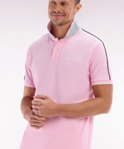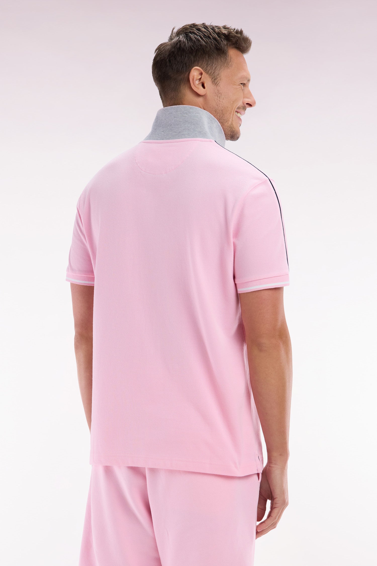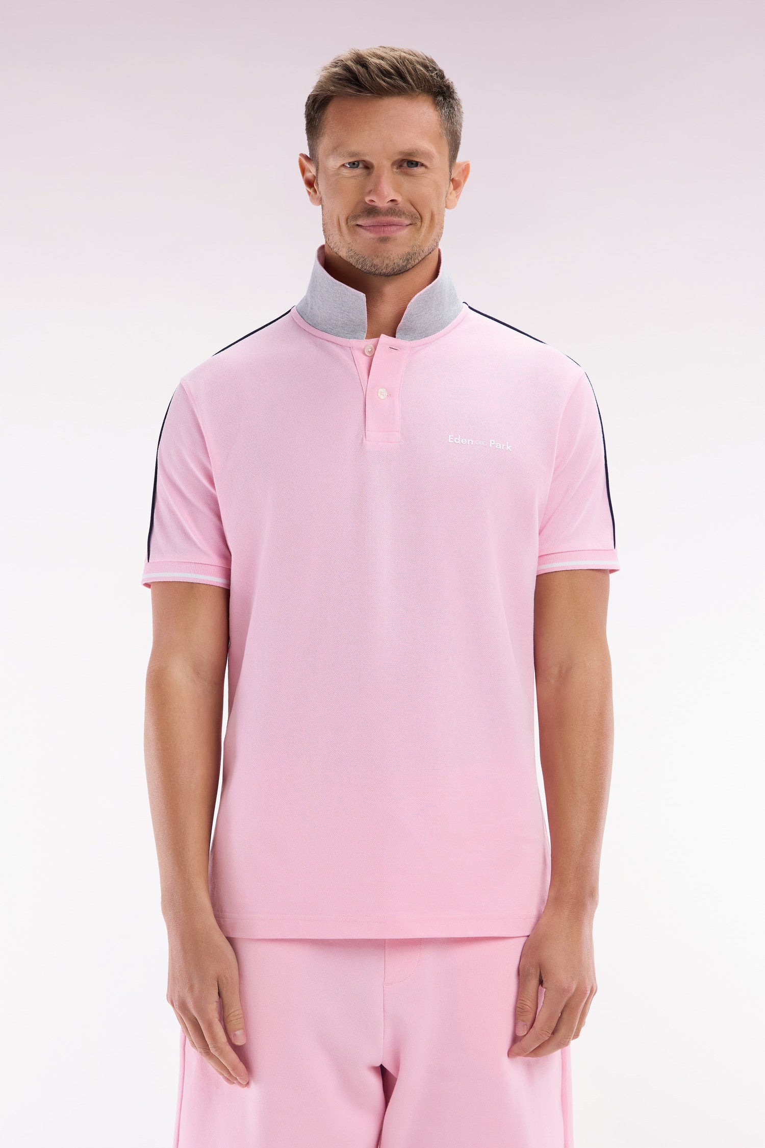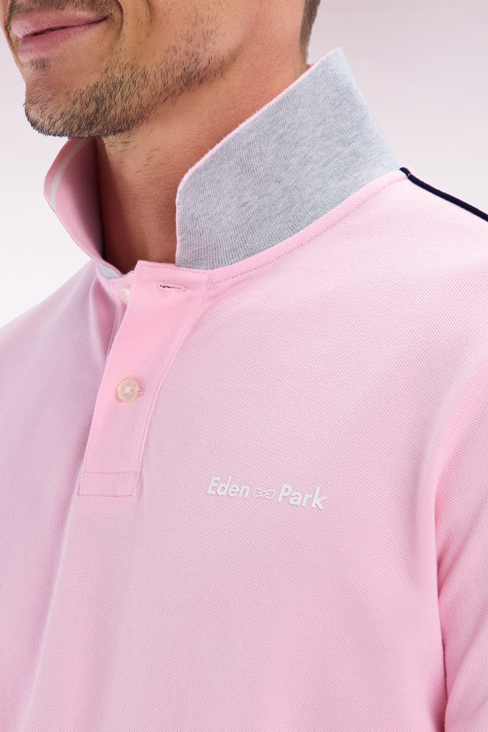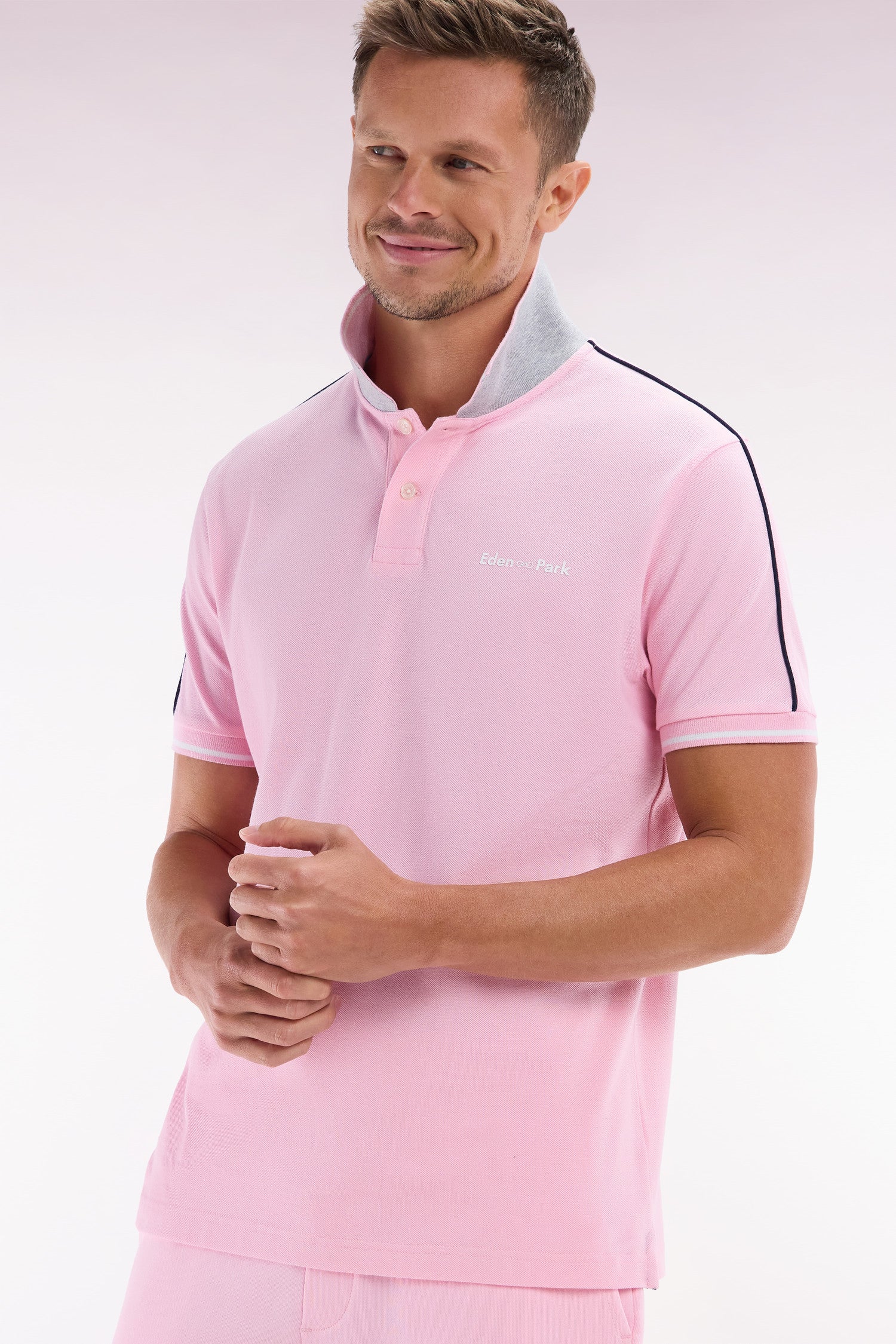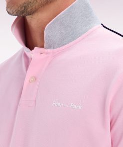 Ce polo masculin uni, décliné en blanc, ciel, gris et rose, adopte une coupe décontractée, confortable et tendance. Il se distingue avant tout par son inscription blanche Eden Park en 3D, remplaçant la broderie nœud papillon, tout en conservant les codes iconiques et le savoir-faire devenu emblématique de la Maison.