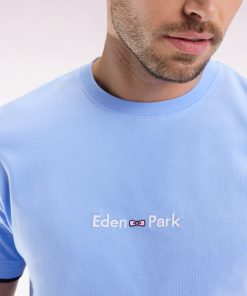 Ce T-shirt en jersey de coton à manches courtes se distingue par sa broderie Eden Park placée sur le devant et ses finitions tendances. L’ourlet double aux manches et à la base structure la silhouette, tandis que l’encolure en bords-côtes renforce son allure décontractée mais soignée