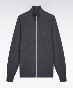 Eden Park Homme Men’s Cardigan Zippé En Coton Marine À Rayures De Manches Roses Coupe Droite