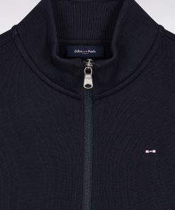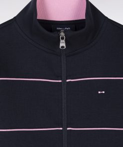 Eden Park Enfant Men’s Sweatshirt En Coton Stretch Zippé Marine Passepoils Roses Coupe Droite